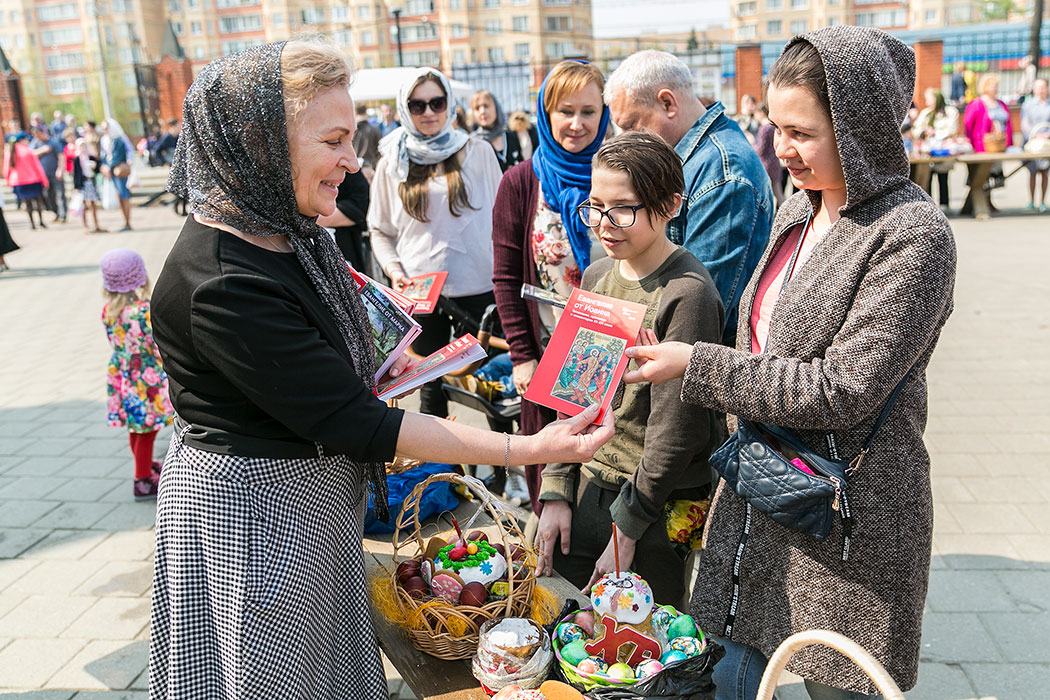 В Великую субботу целый день гимназисты с учителями и родителями активно предлагали горожанам, пришедшим освящать пасхальные яства, посетить ярмарку творчества, приобрести полезные и красивые для дома вещи и таким образом принять участие в благом деле.
