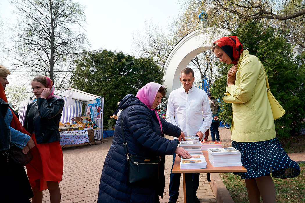 Учащиеся Библейско-Богословских курсов отделения этого храма встречали приходящих в этот день в храм людей словами о грядущем Празднике Пасхи и о Евангелии – книге, в которой описано событие Воскресения Христа. Всем заинтересовавшимся этой темой были подарены книги – Евангелие с толкованием текста и книга о молитве. Всего в этот день волонтерами было подарено около 120 Евангелий и 60 книг о молитве.
