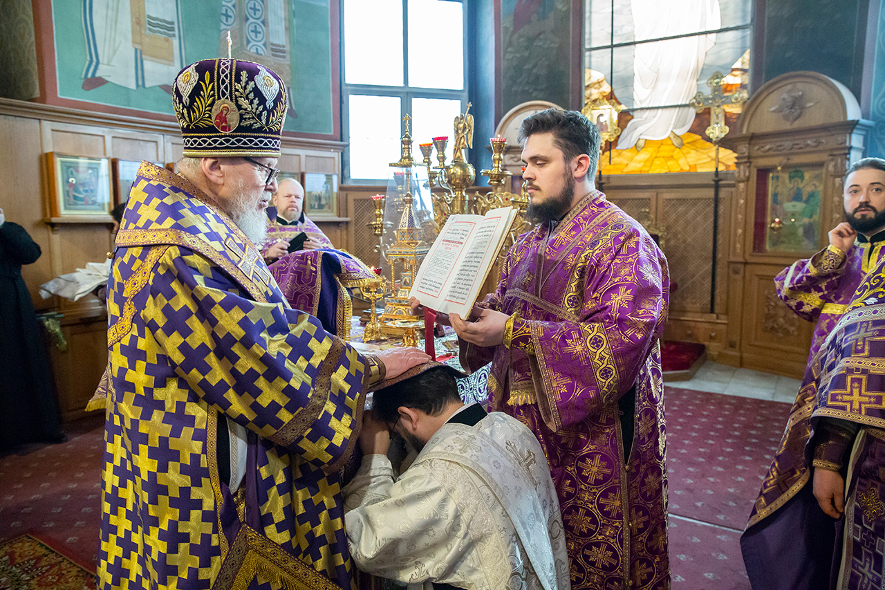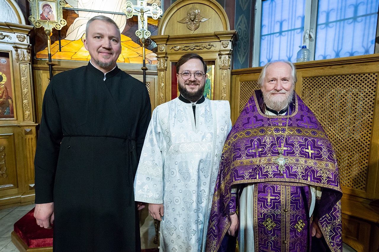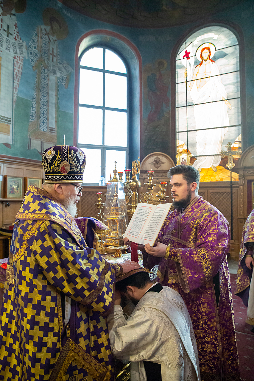 За богослужением была совершена священническая хиротония клирика Троицкого собора города Щёлково диакона Романа Галиева и диаконская хиротония алтарника Троицкого собора города Щёлково Димитрия Задорожного.