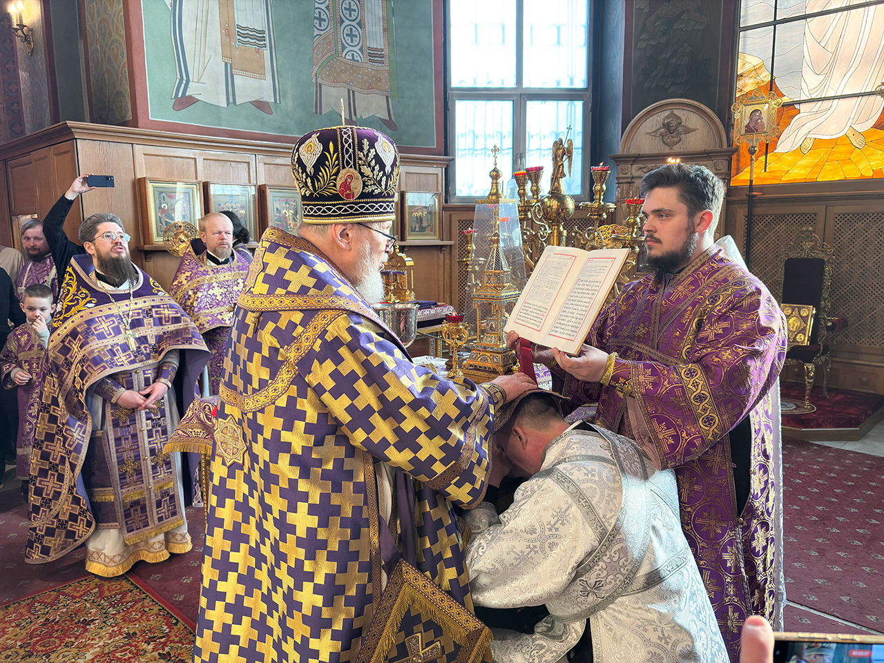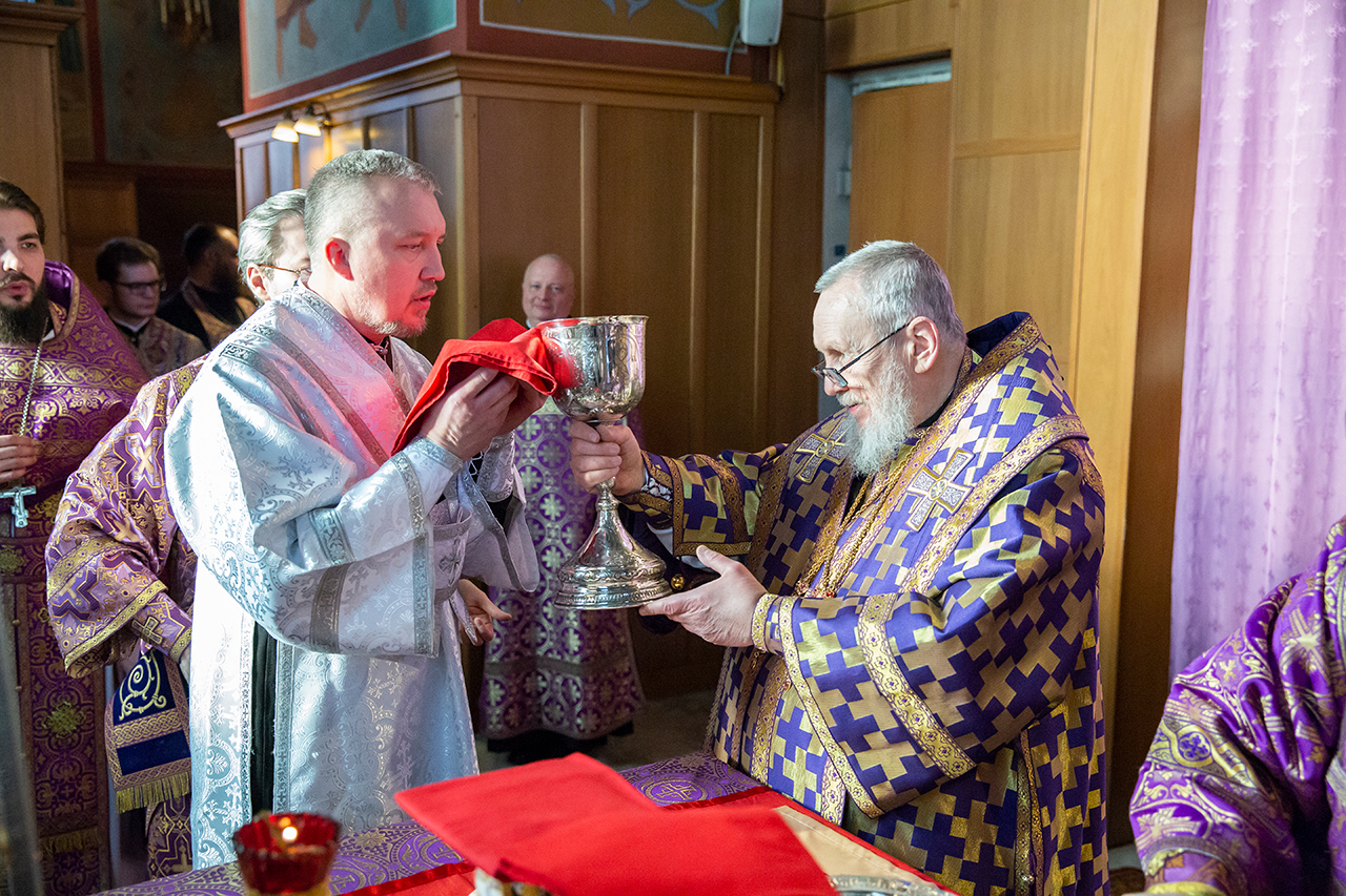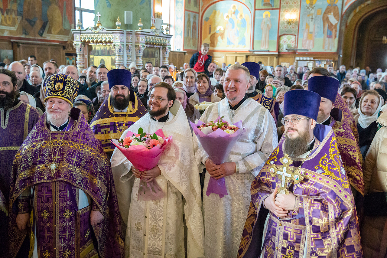 За богослужением была совершена священническая хиротония клирика Троицкого собора города Щёлково диакона Романа Галиева и диаконская хиротония алтарника Троицкого собора города Щёлково Димитрия Задорожного.