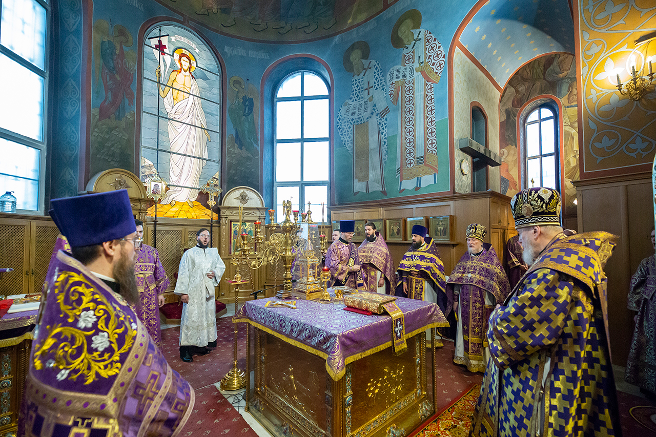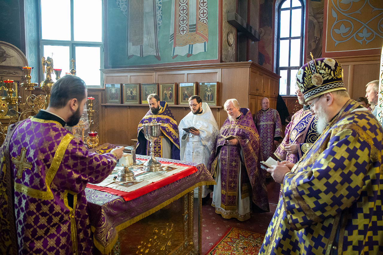 Его Преосвященству сослужили благочинный Щёлковского церковного округа и настоятель Троицкого собора протоиерей Андрей Ковальчук и клирики благочиния.