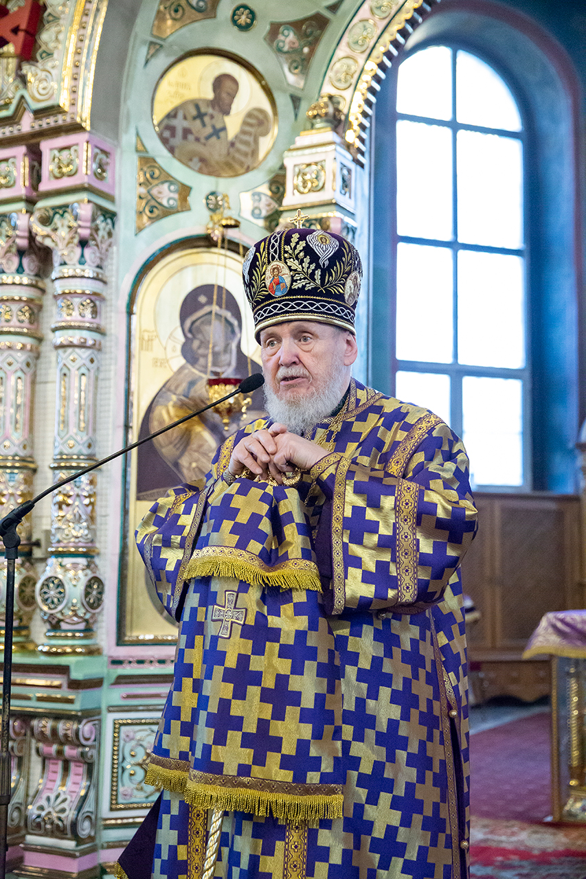 Затем Его Преосвященство обратился к духовенству и молящимся с архипастырским словом.