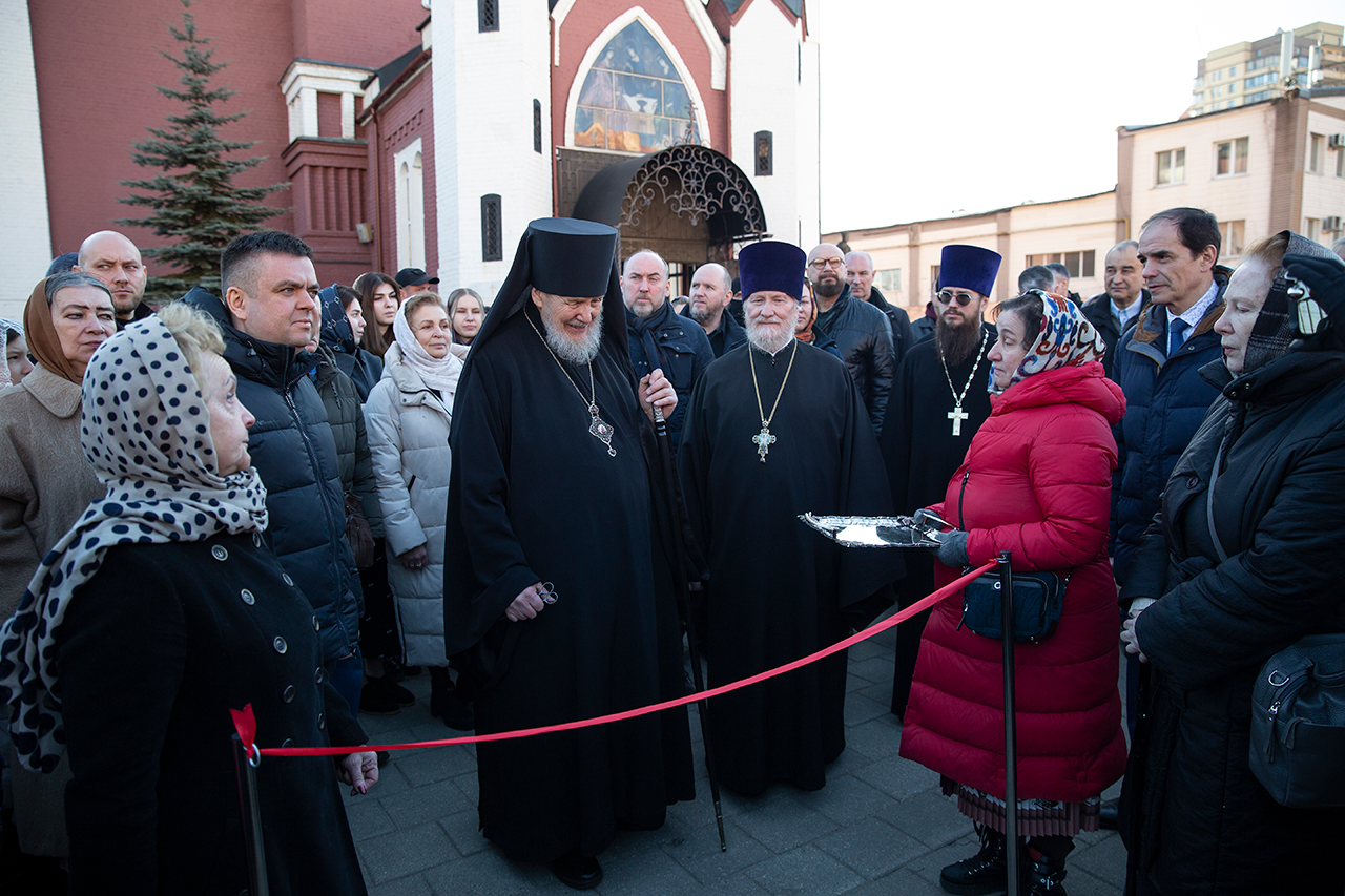 После богослужения на территории собора была открыта фотовыставка «Русская Православная Церковь в годы Великой Отечественной войны».