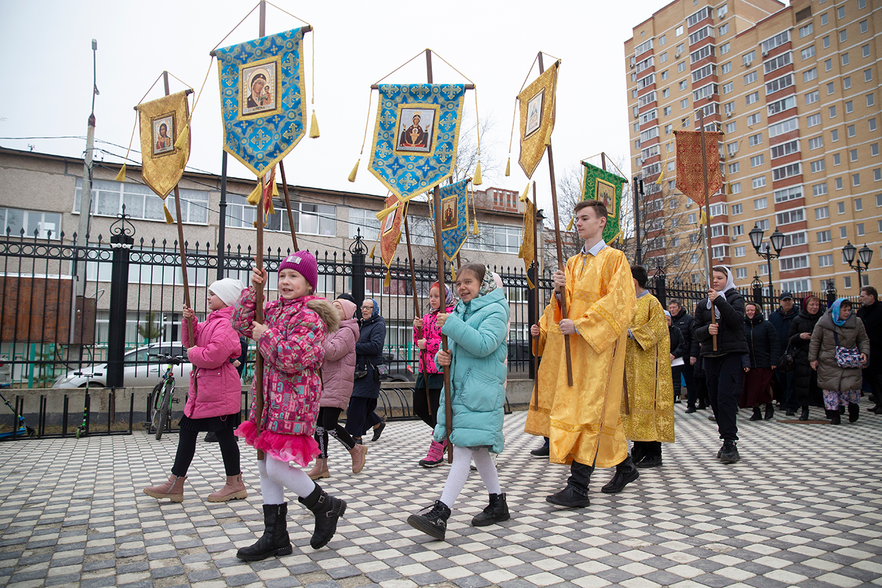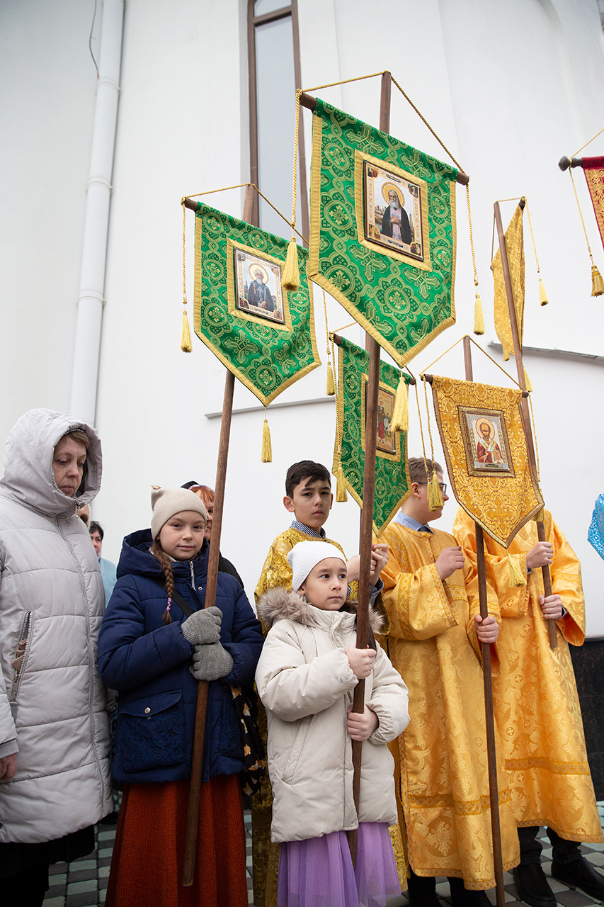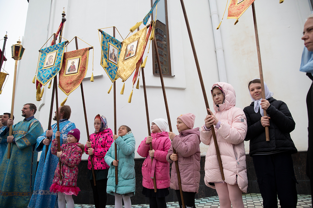 После Божественной Литургии был совершен праздничный крестный ход, после которого благочинный отец Андрей обратился к настоятелю, священнослужителям и прихожанам со словами поздравления с престольным праздником. Настоятель отец Димитрий в ответном слове поблагодарил отца Андрея и батюшек и за совместную службу, прихожан за совместную молитву.