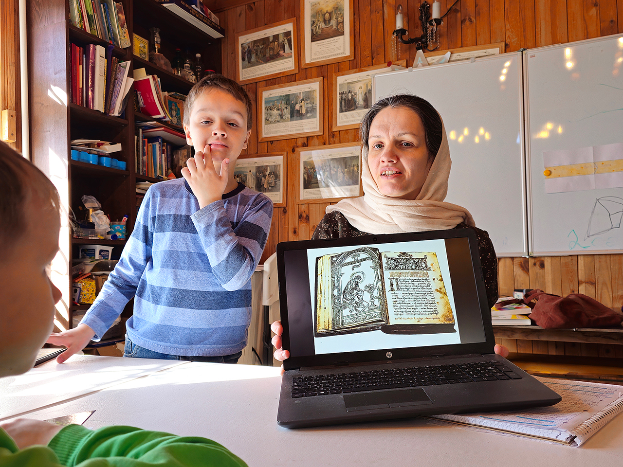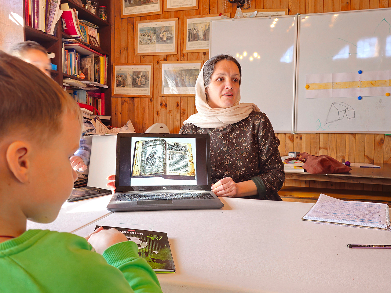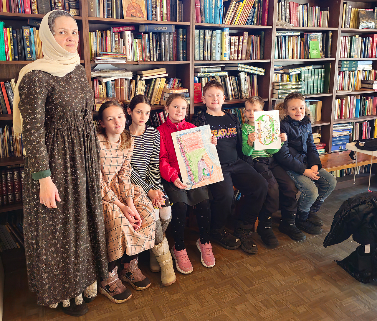Во время занятия учащиеся узнали о появлении письменности и первых книг, а также об истории книгопечатания на Руси, познакомились с красивыми изображениями буквиц. Учитель матушка Анастасия Серышева рассказала ребятам об установлении Дня православной книги в России, а также обсудила с ними, какие книги являются православными.