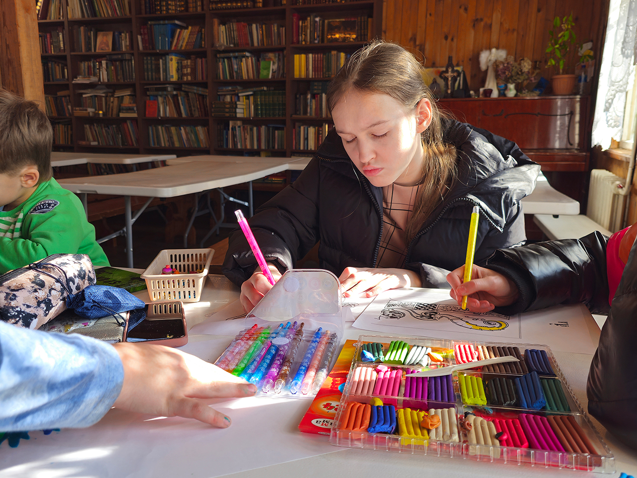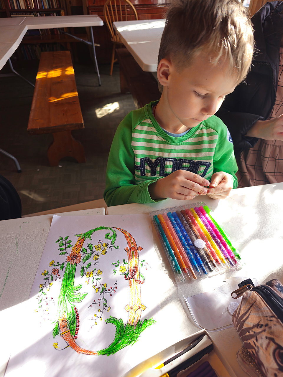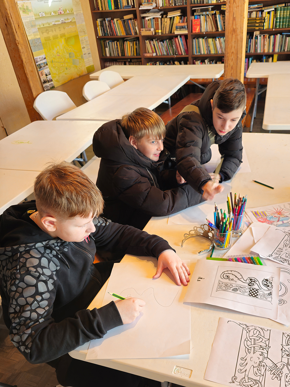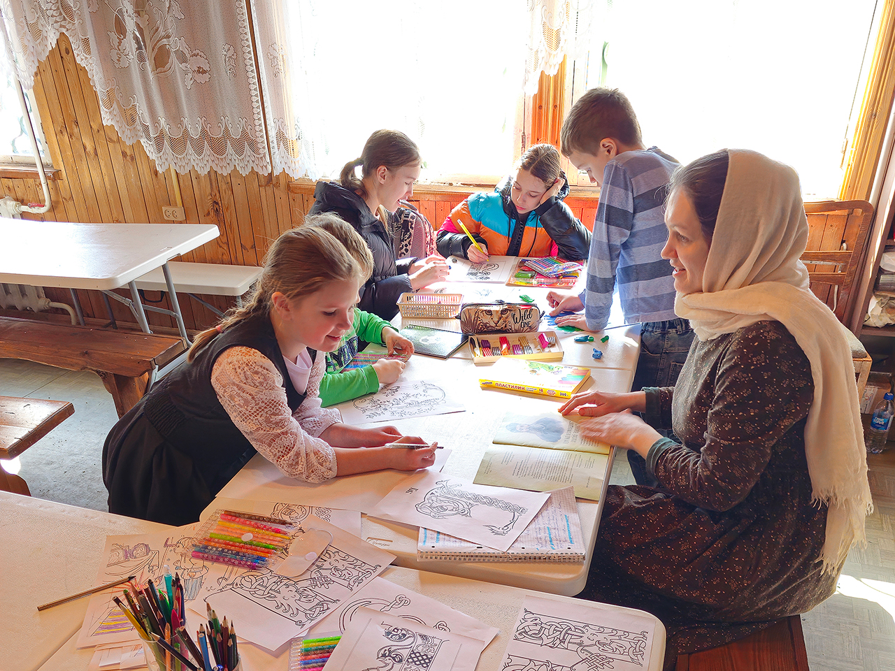 Во время занятия учащиеся узнали о появлении письменности и первых книг, а также об истории книгопечатания на Руси, познакомились с красивыми изображениями буквиц. Учитель матушка Анастасия Серышева рассказала ребятам об установлении Дня православной книги в России, а также обсудила с ними, какие книги являются православными.