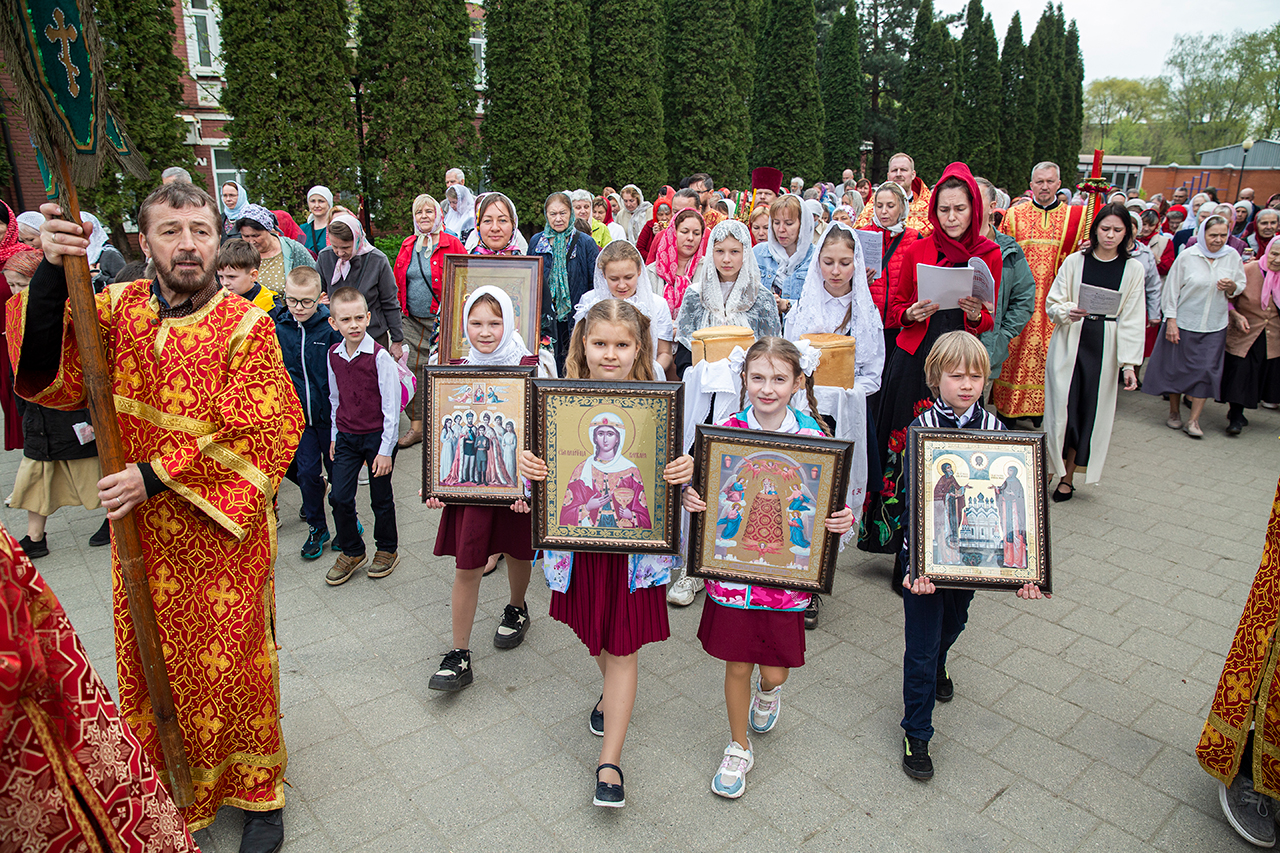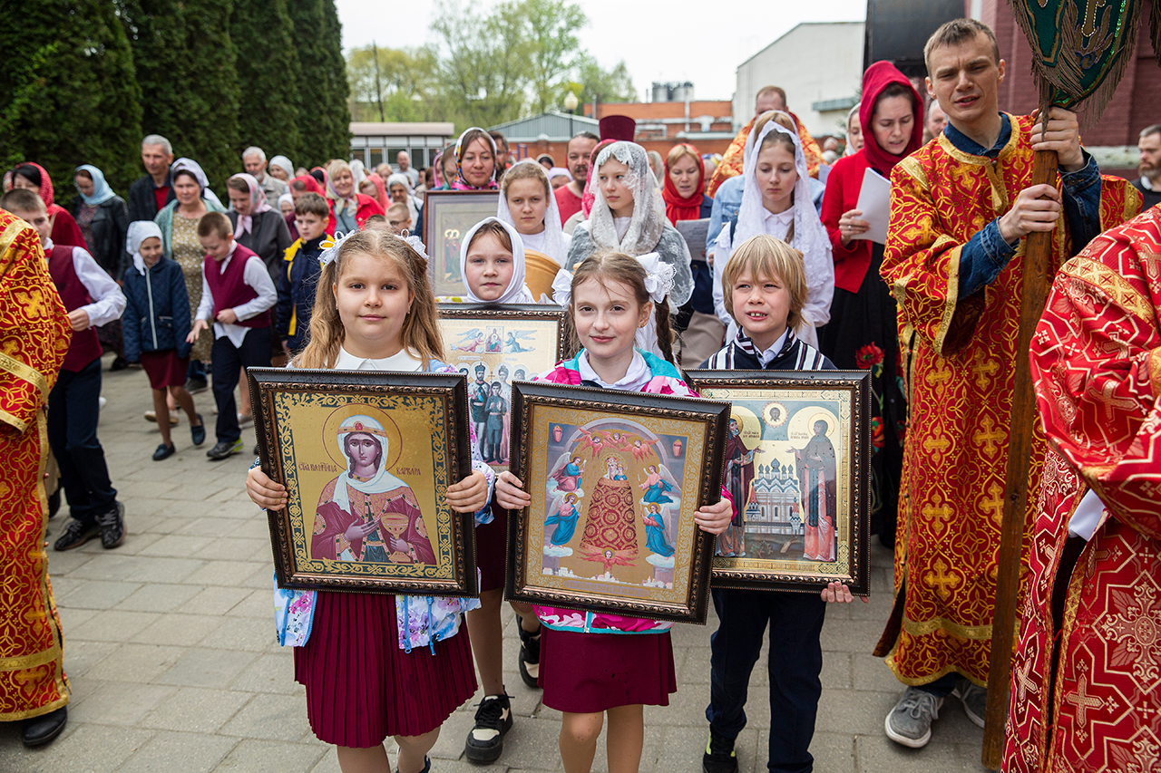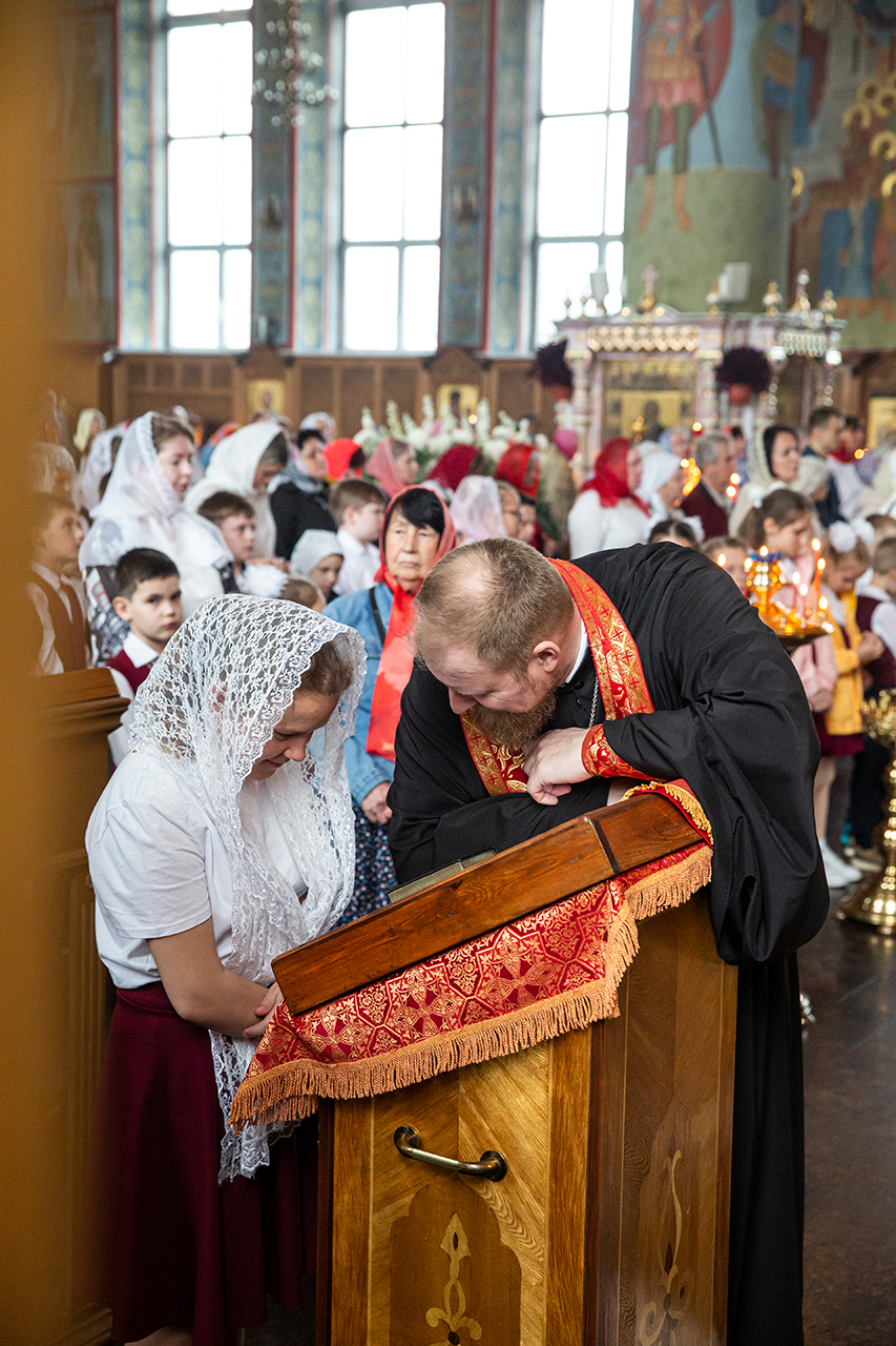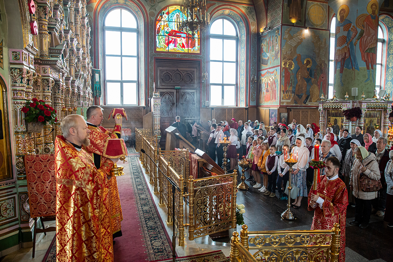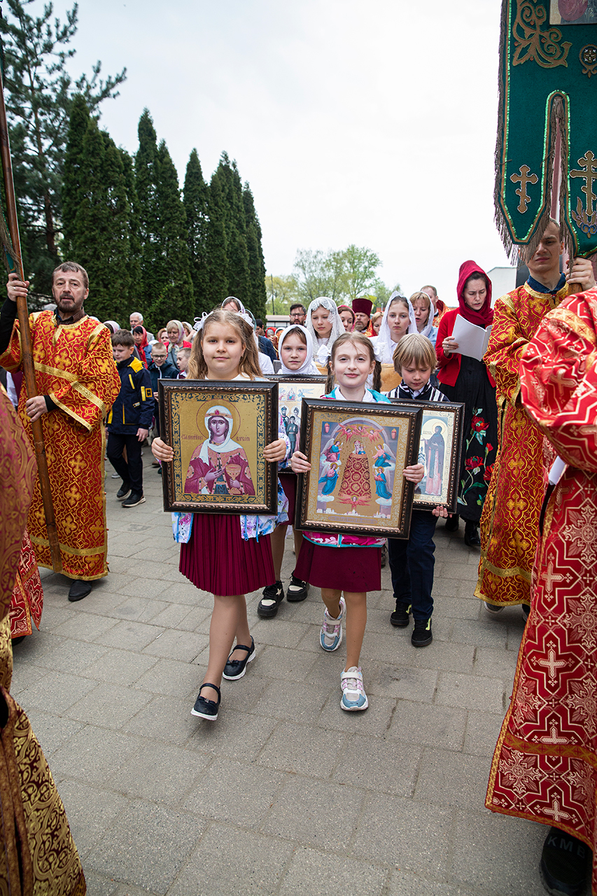 Ребята с учителями посетили Божественную литургию, где приобщились Святых Христовых Таин. После службы все гимназисты приняли участие в пасхальном крестном ходе. Некоторые из учеников и учителей были привлечены к ношению икон и артосов.