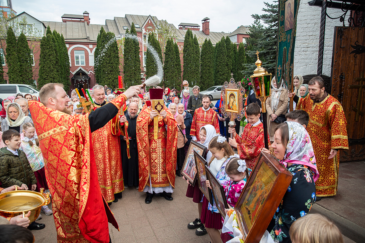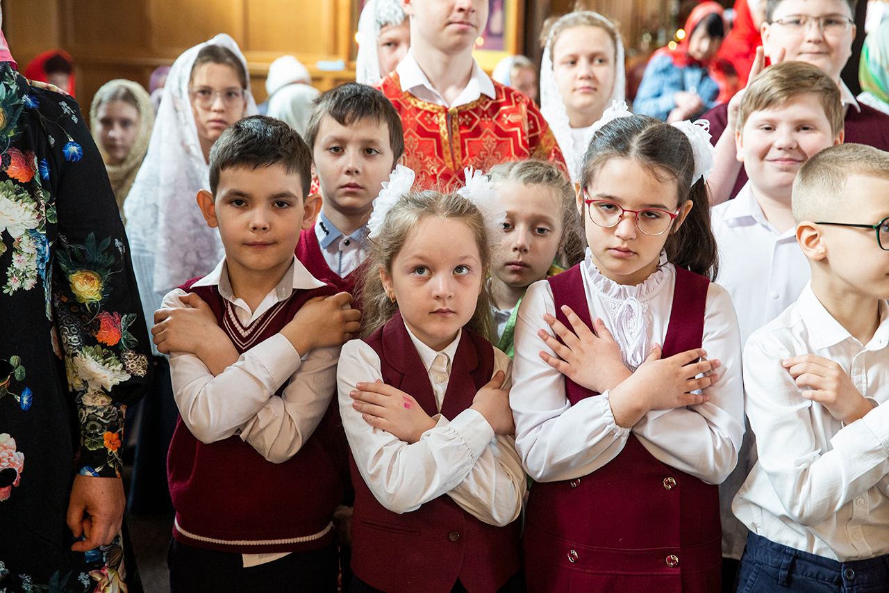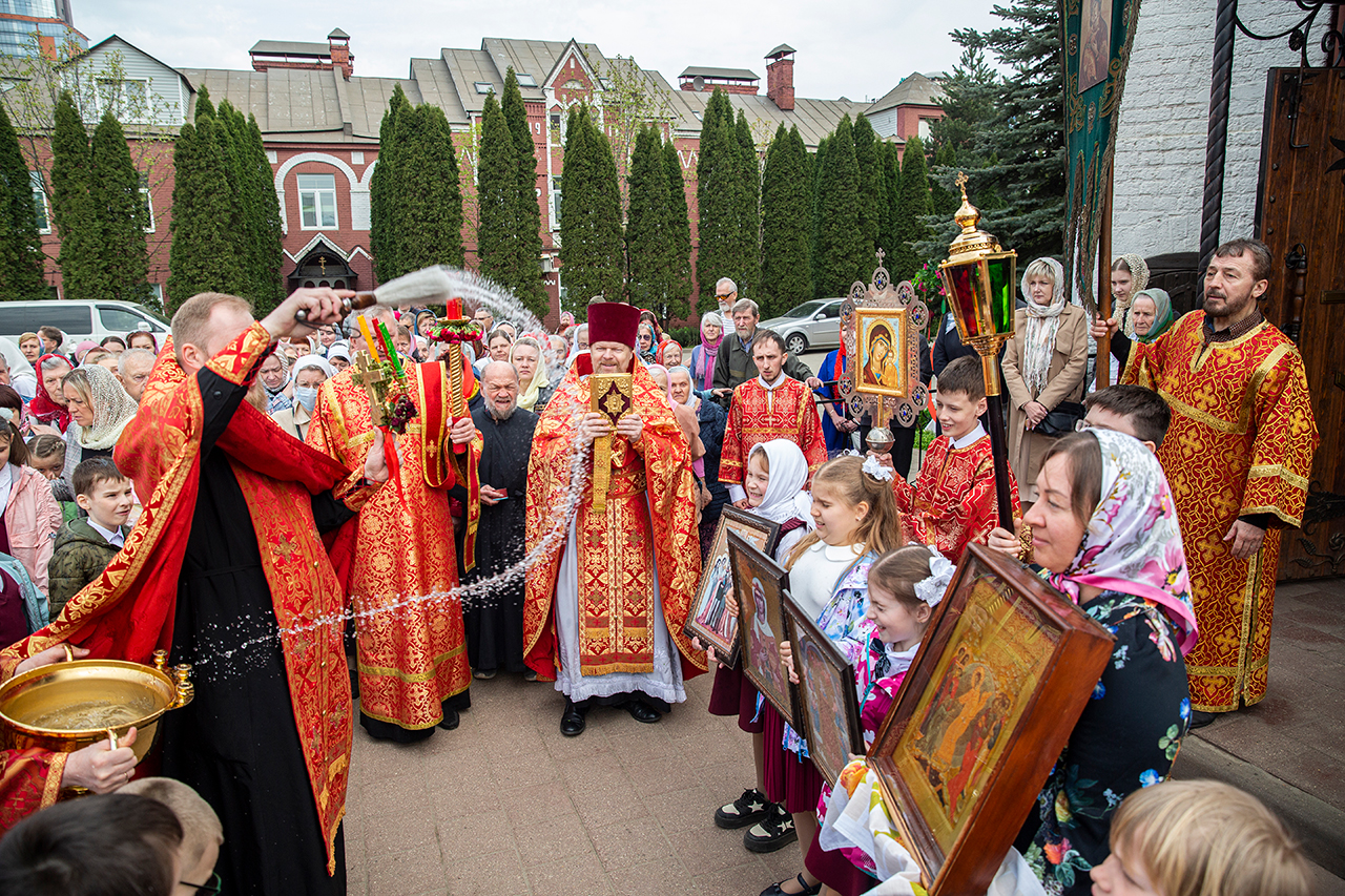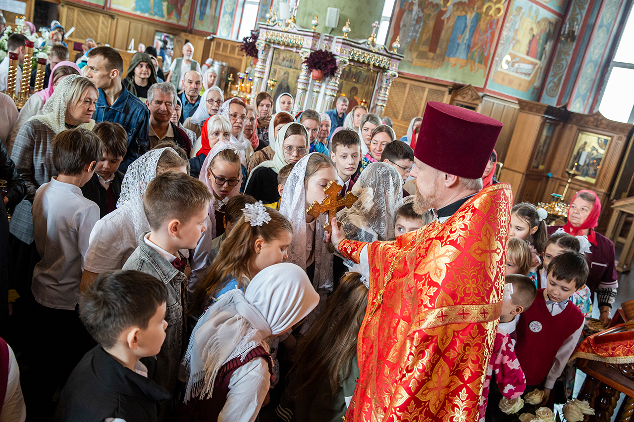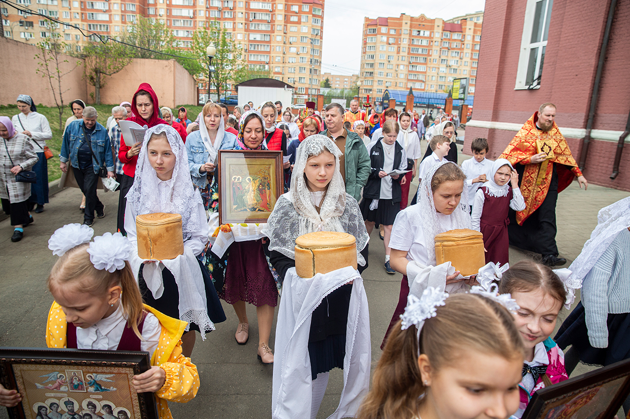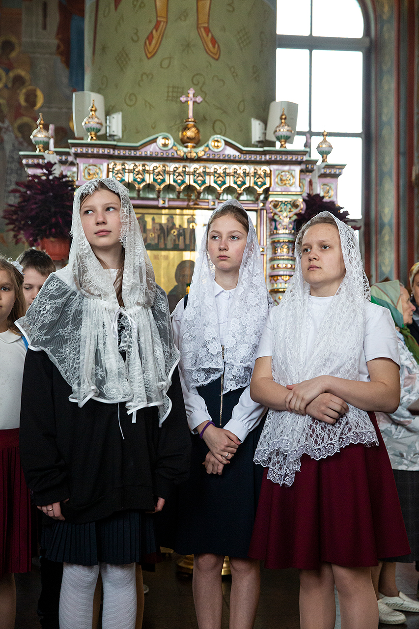 Ребята с учителями посетили Божественную литургию, где приобщились Святых Христовых Таин. После службы все гимназисты приняли участие в пасхальном крестном ходе. Некоторые из учеников и учителей были привлечены к ношению икон и артосов.