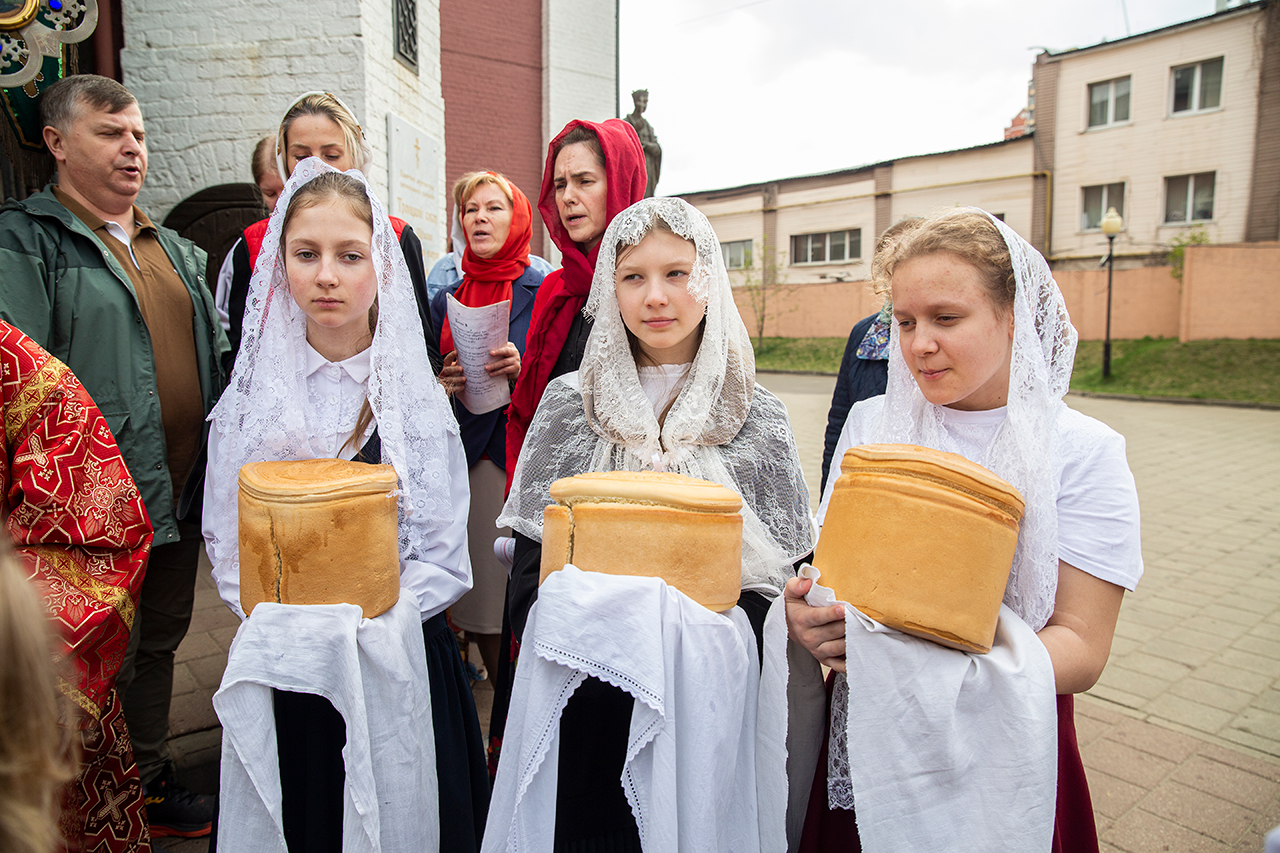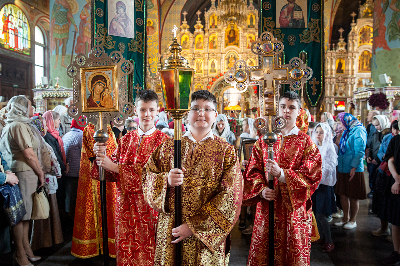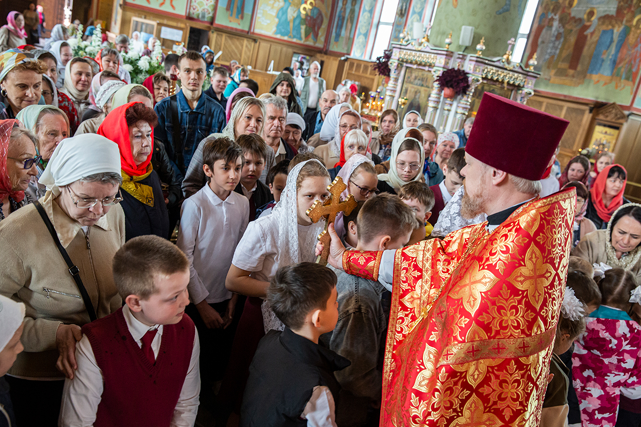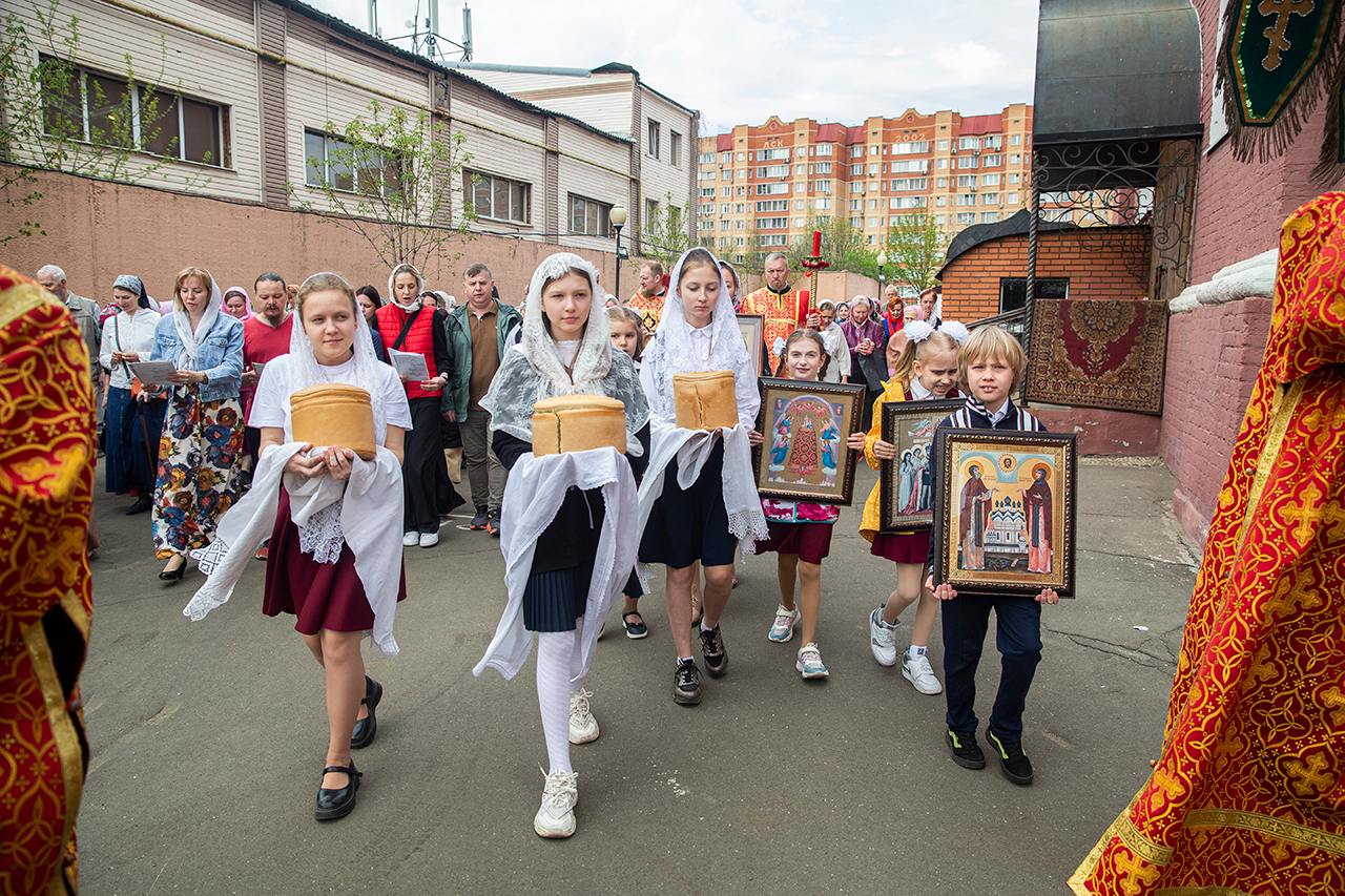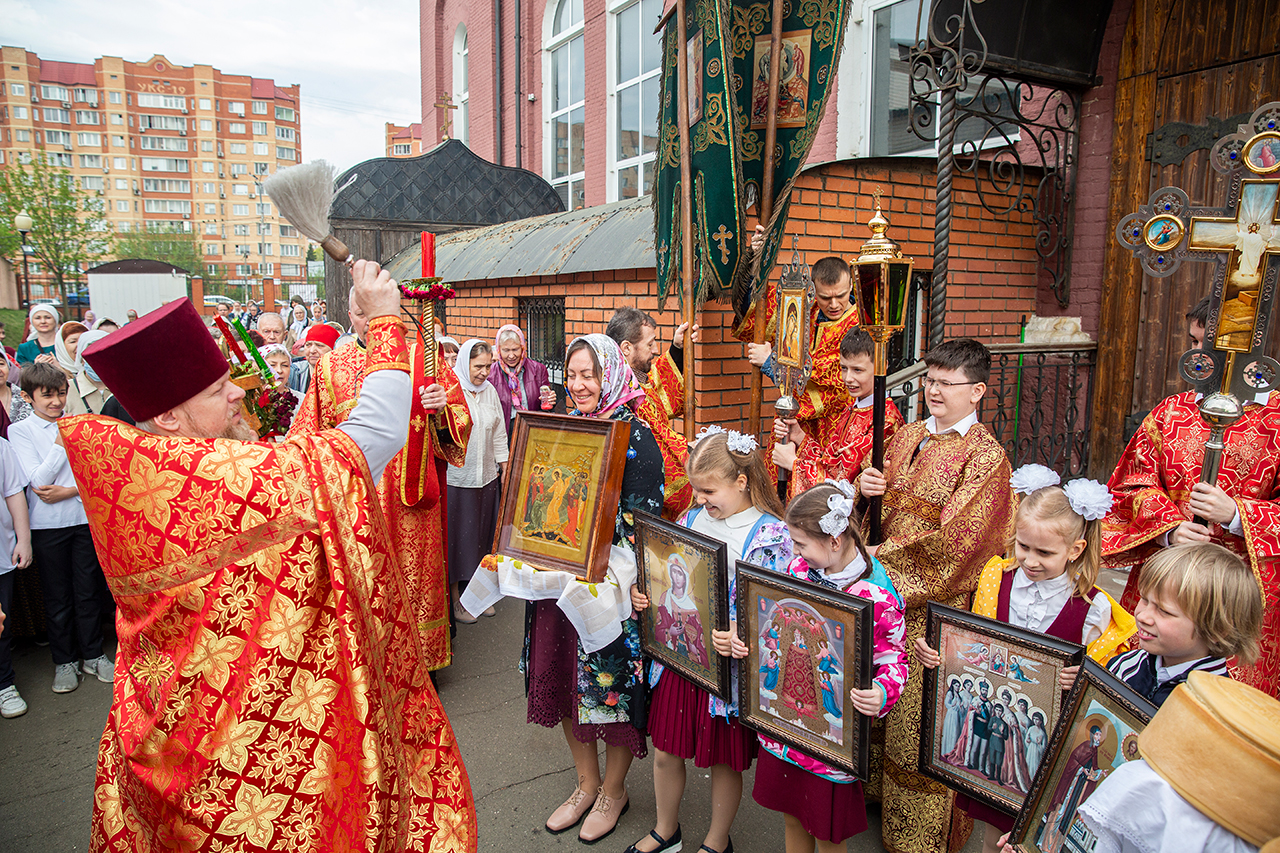 Ребята с учителями посетили Божественную литургию, где приобщились Святых Христовых Таин. После службы все гимназисты приняли участие в пасхальном крестном ходе. Некоторые из учеников и учителей были привлечены к ношению икон и артосов.
