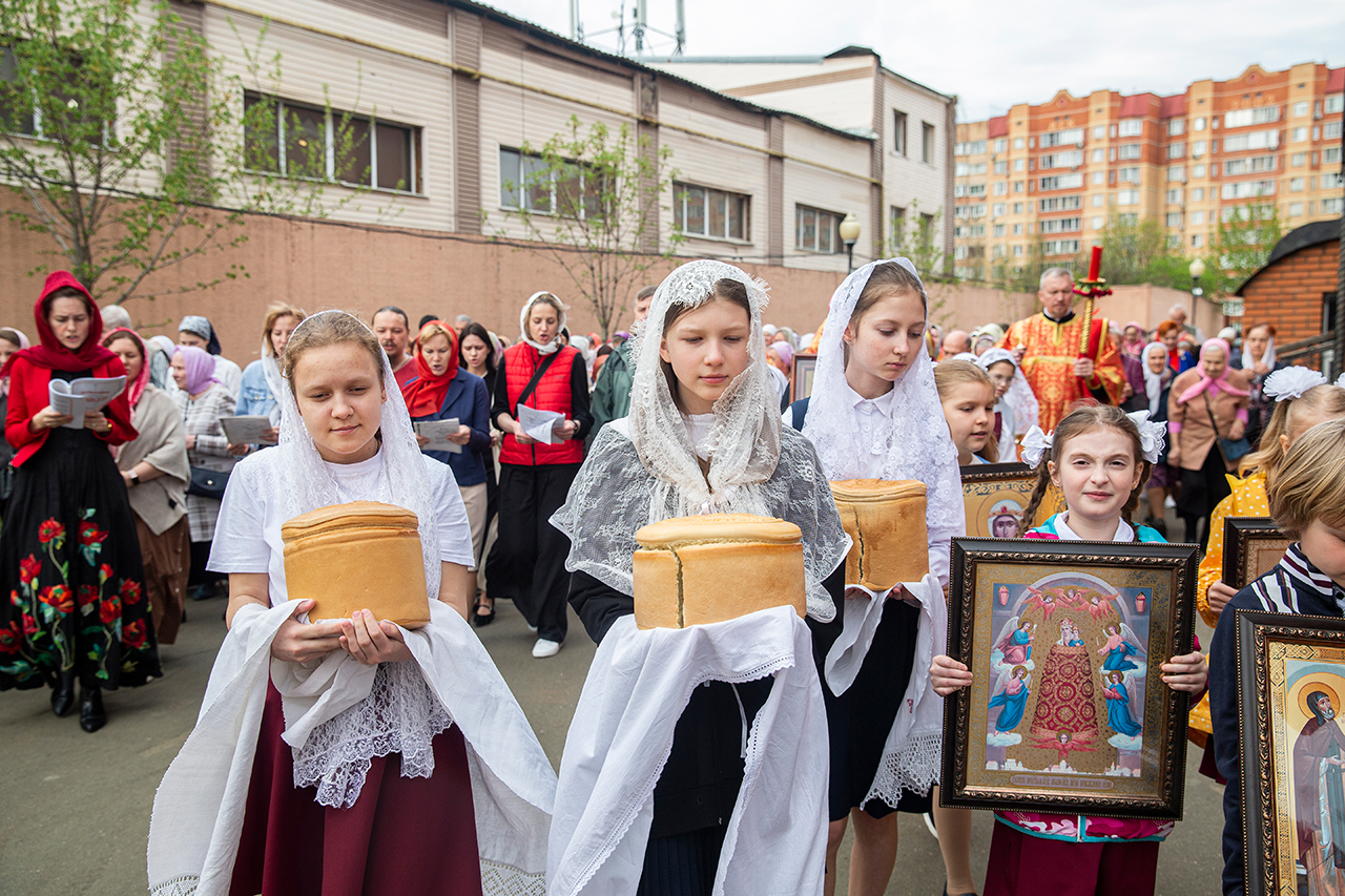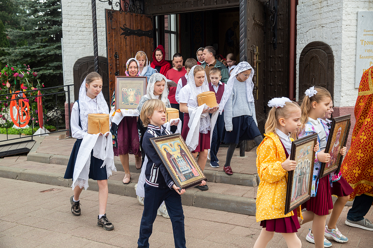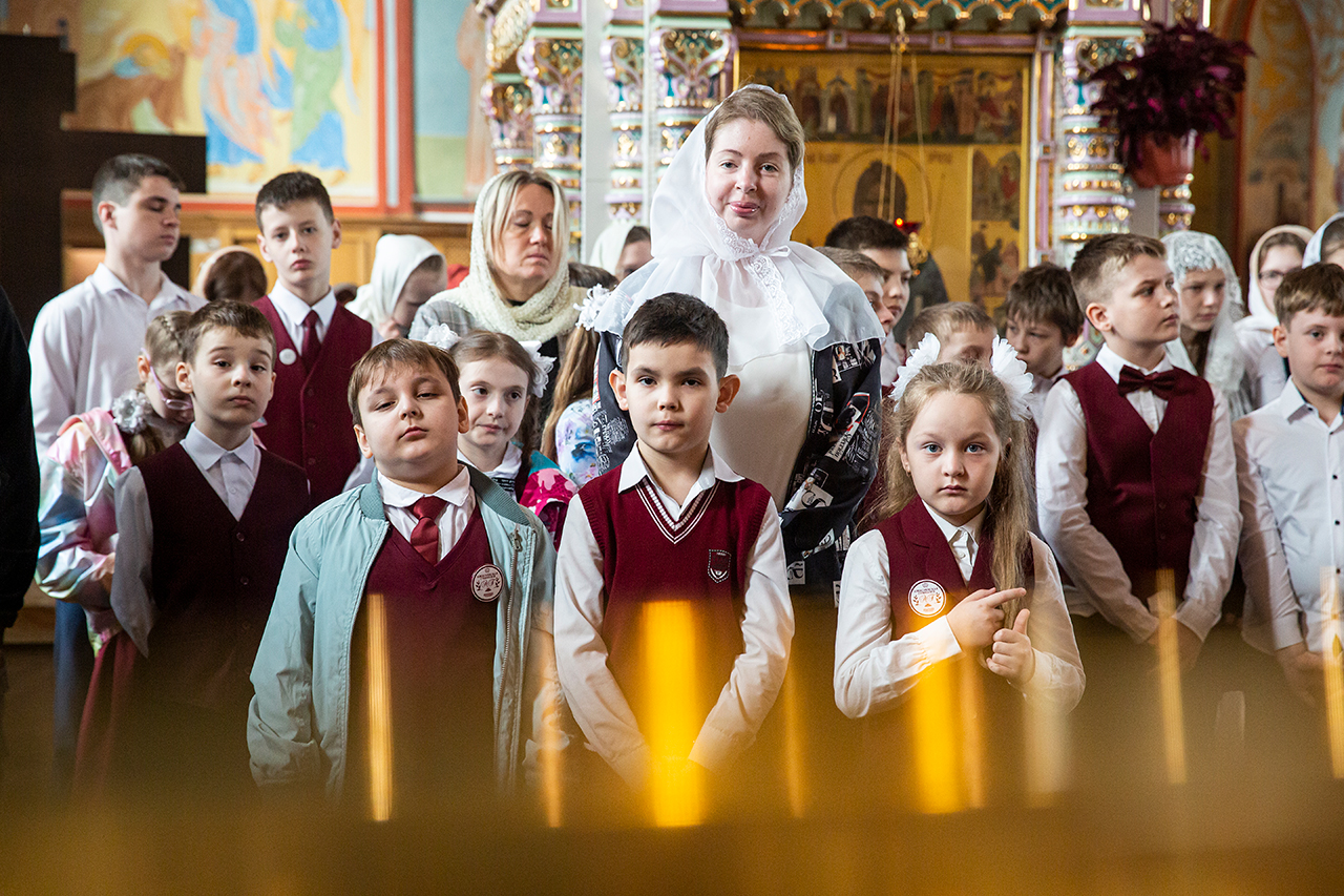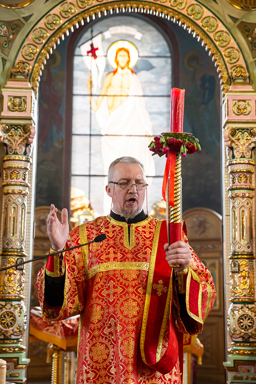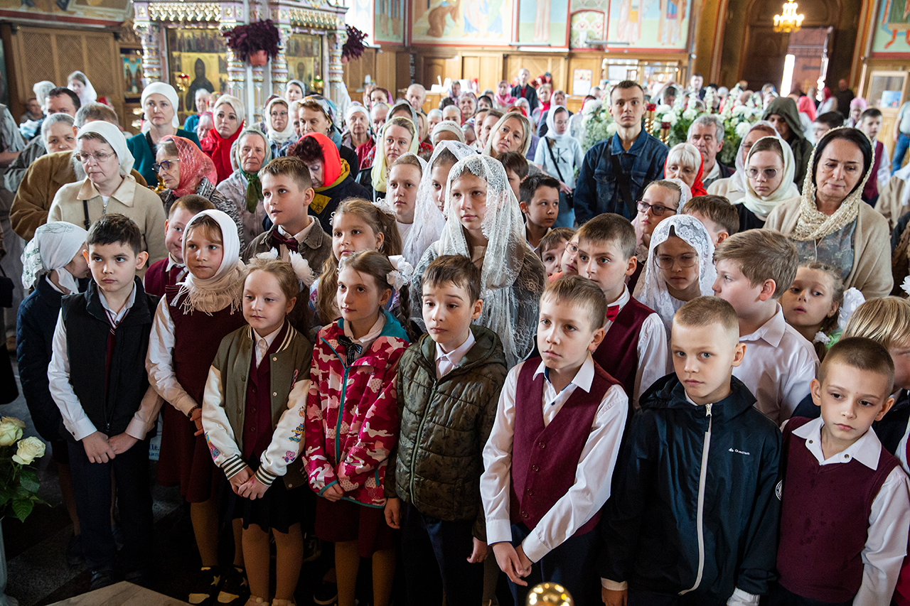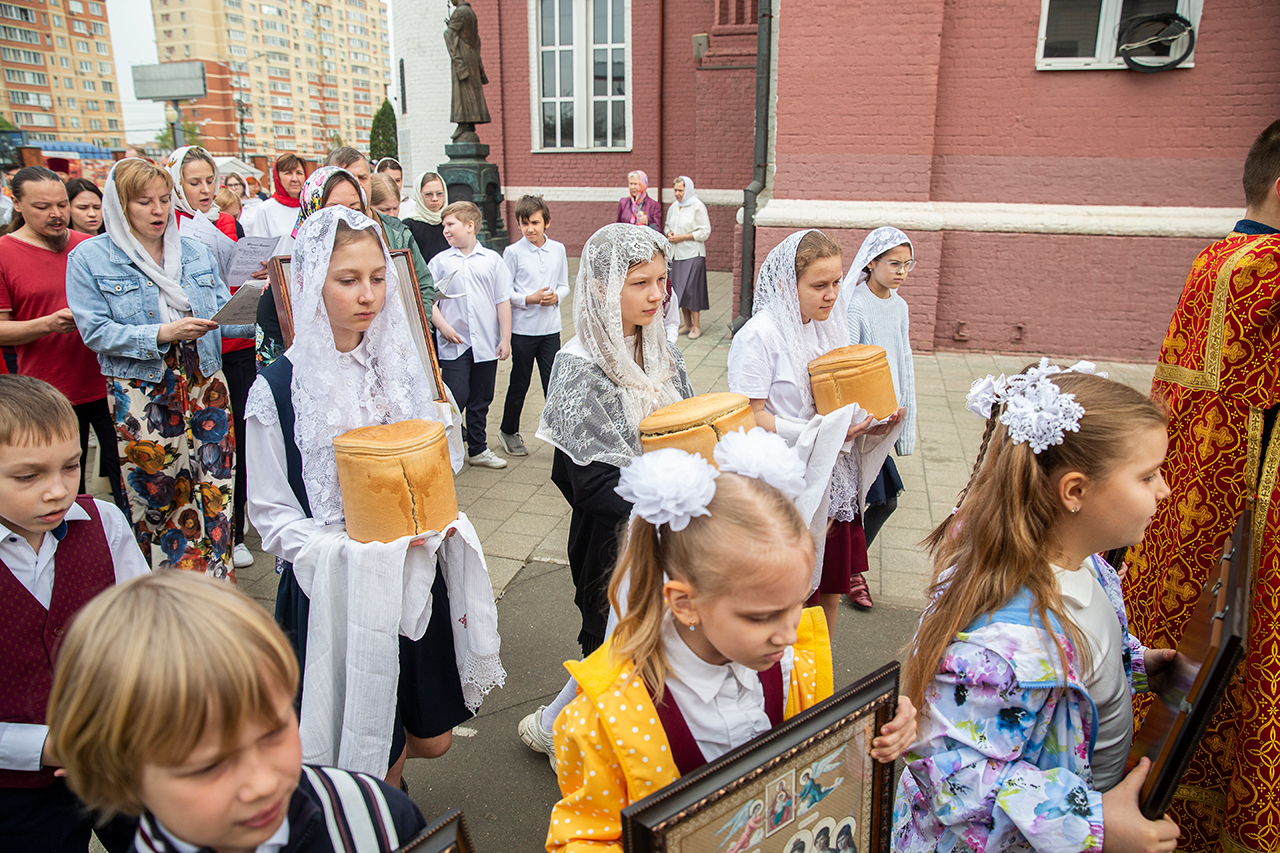 Ребята с учителями посетили Божественную литургию, где приобщились Святых Христовых Таин. После службы все гимназисты приняли участие в пасхальном крестном ходе. Некоторые из учеников и учителей были привлечены к ношению икон и артосов.
