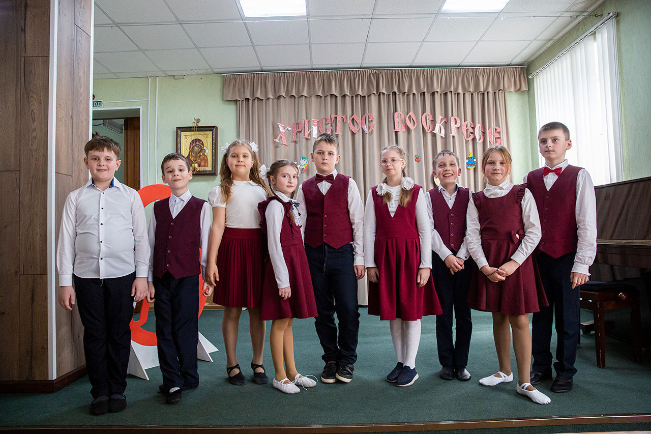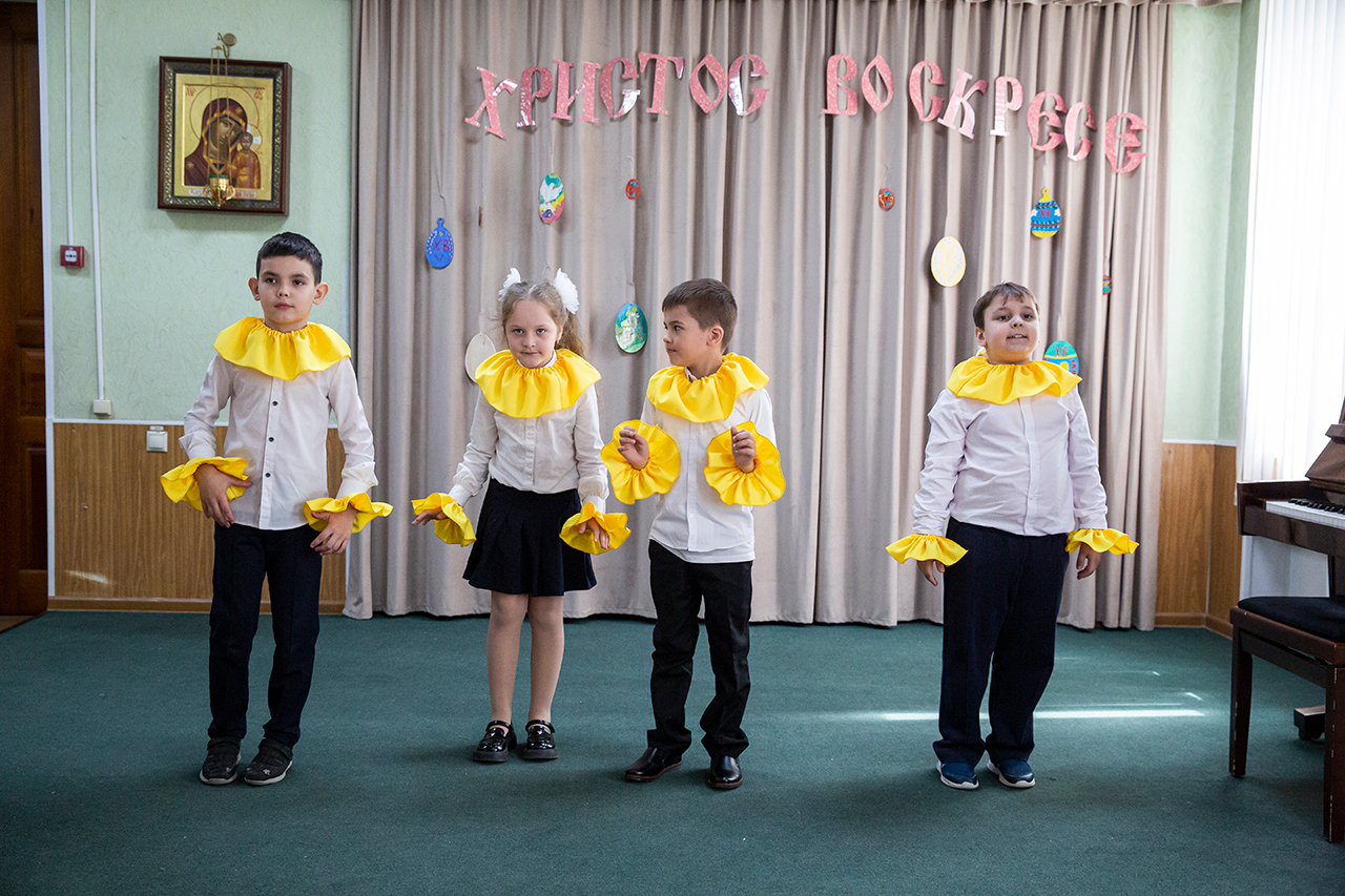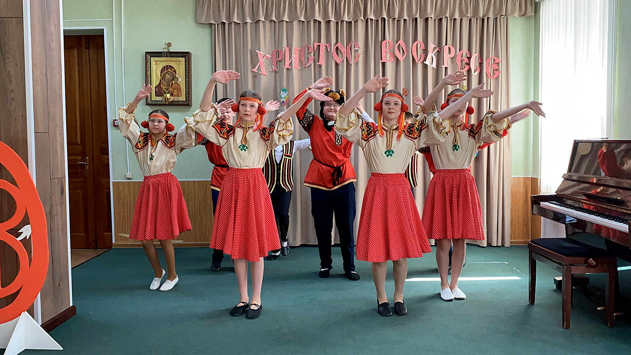 По окончании Крестного хода и небольшой подготовки началась торжественная часть праздника в актовом зале. Со сцены прозвучали трогательные стихи и песни, раскрывающие смысл и содержание праздника Пасхи. Были показаны чудесные танцевальный номера, как в классическом, так и в народном стилях.
