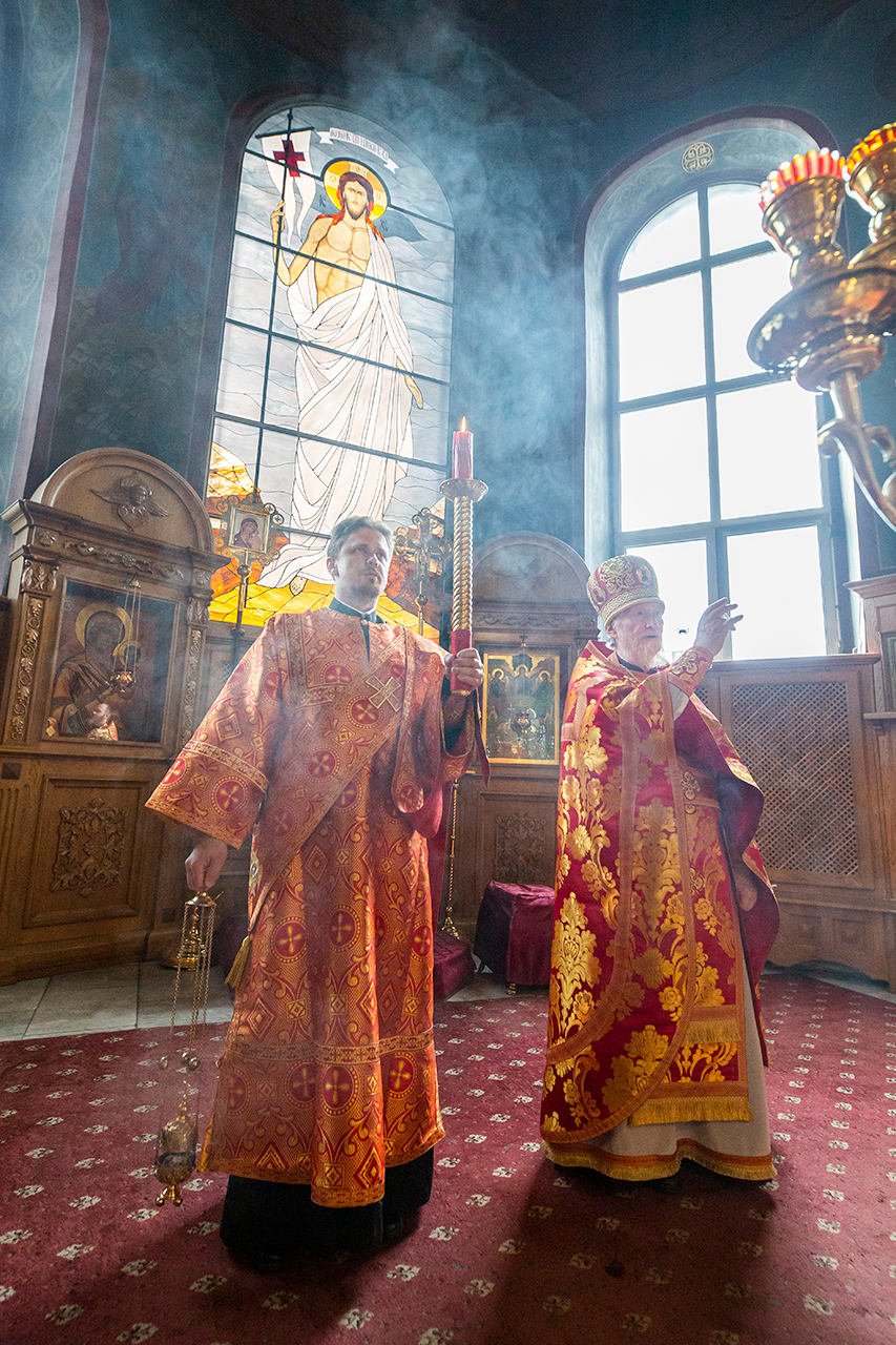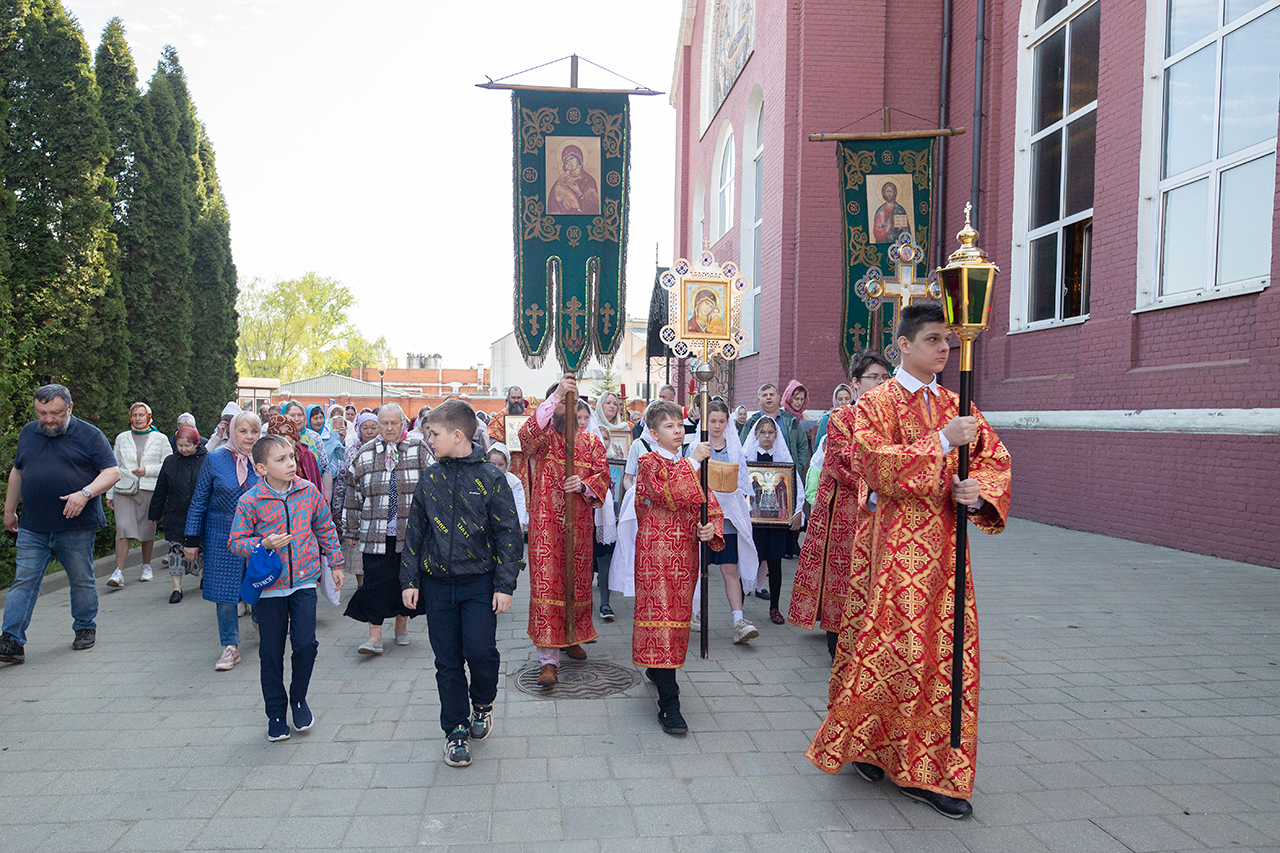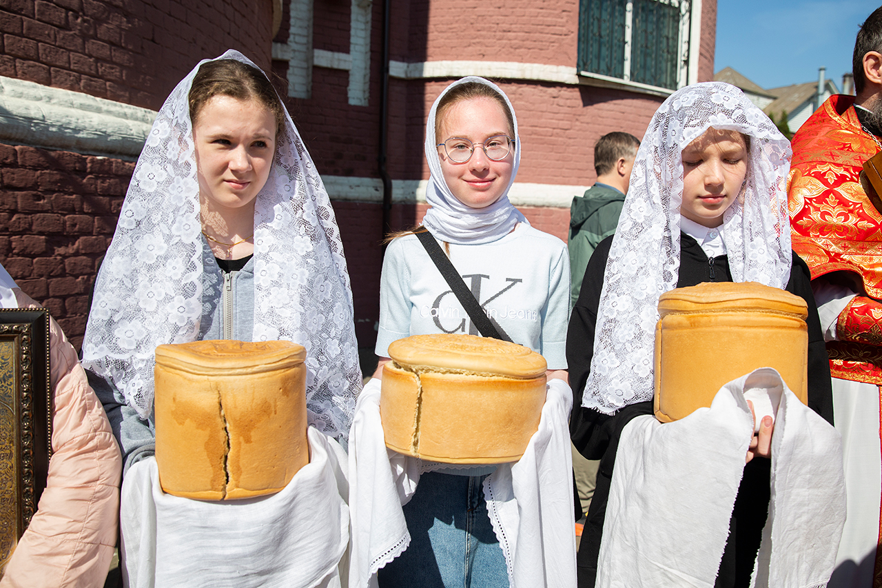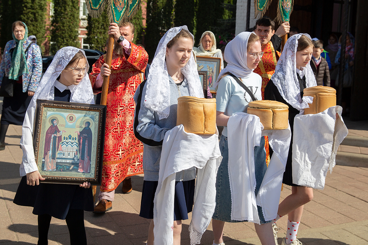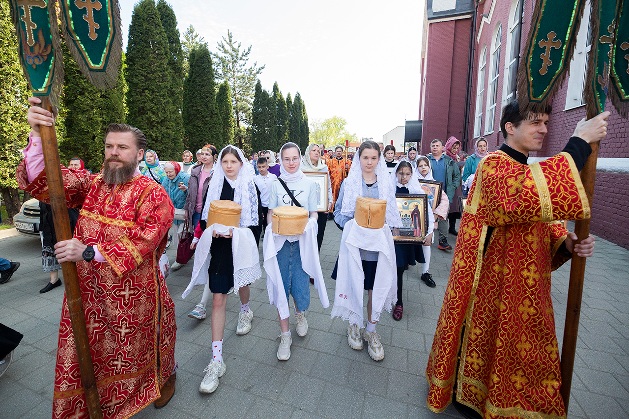 По окончании Литургии отец Андрей совершил водосвятный молебен, после чего возглавили крестный ход вокруг собора.