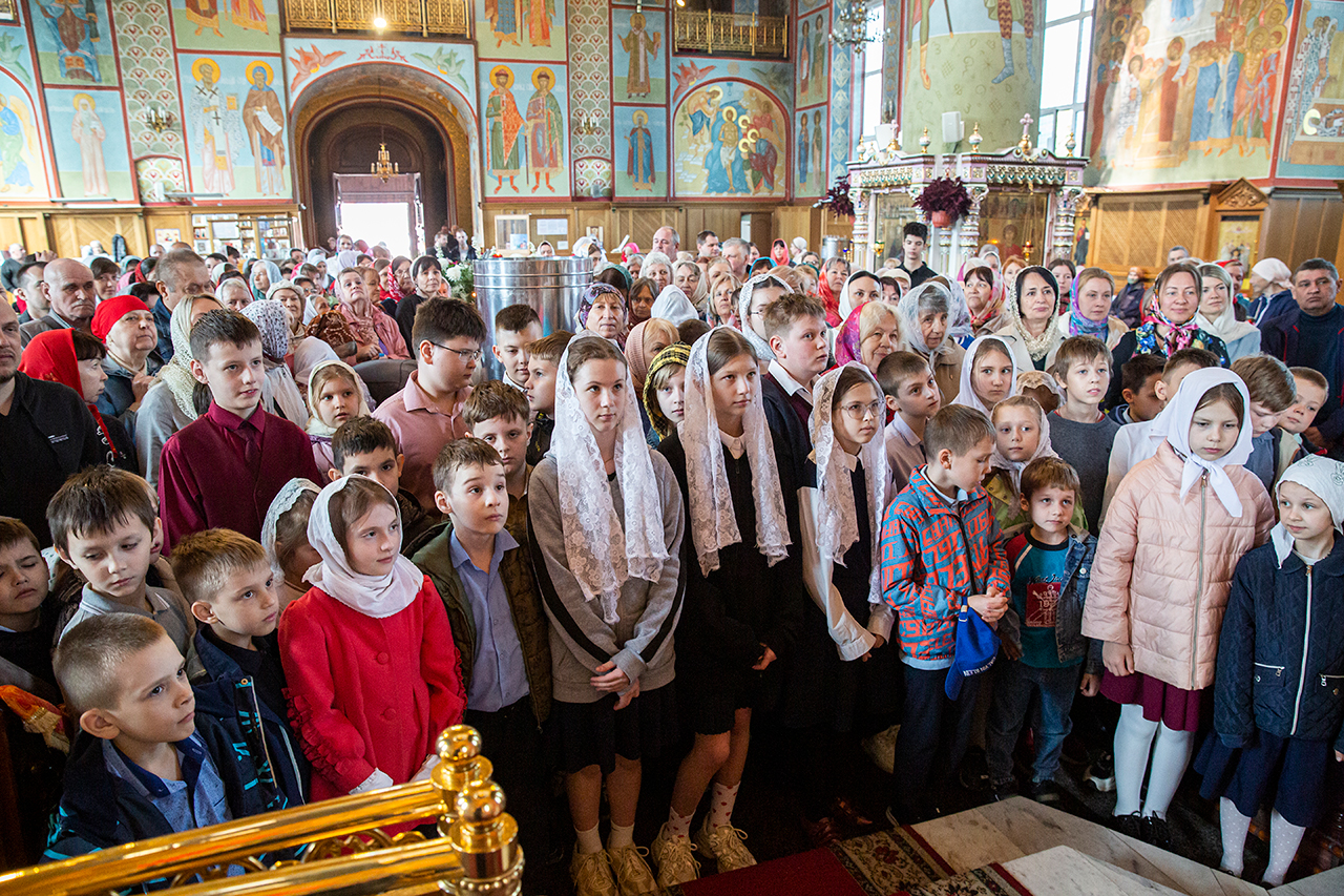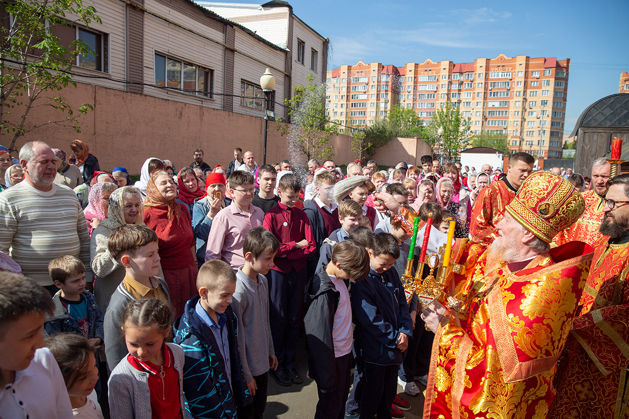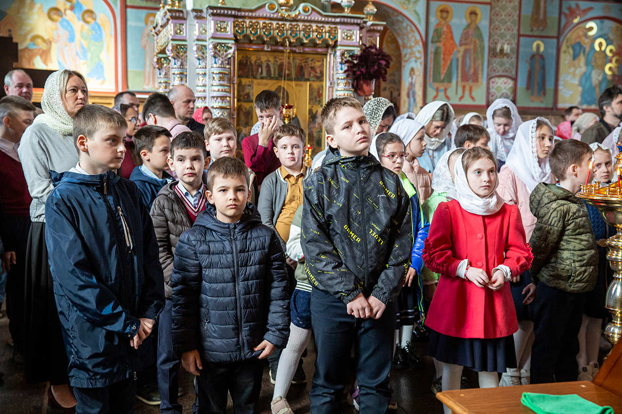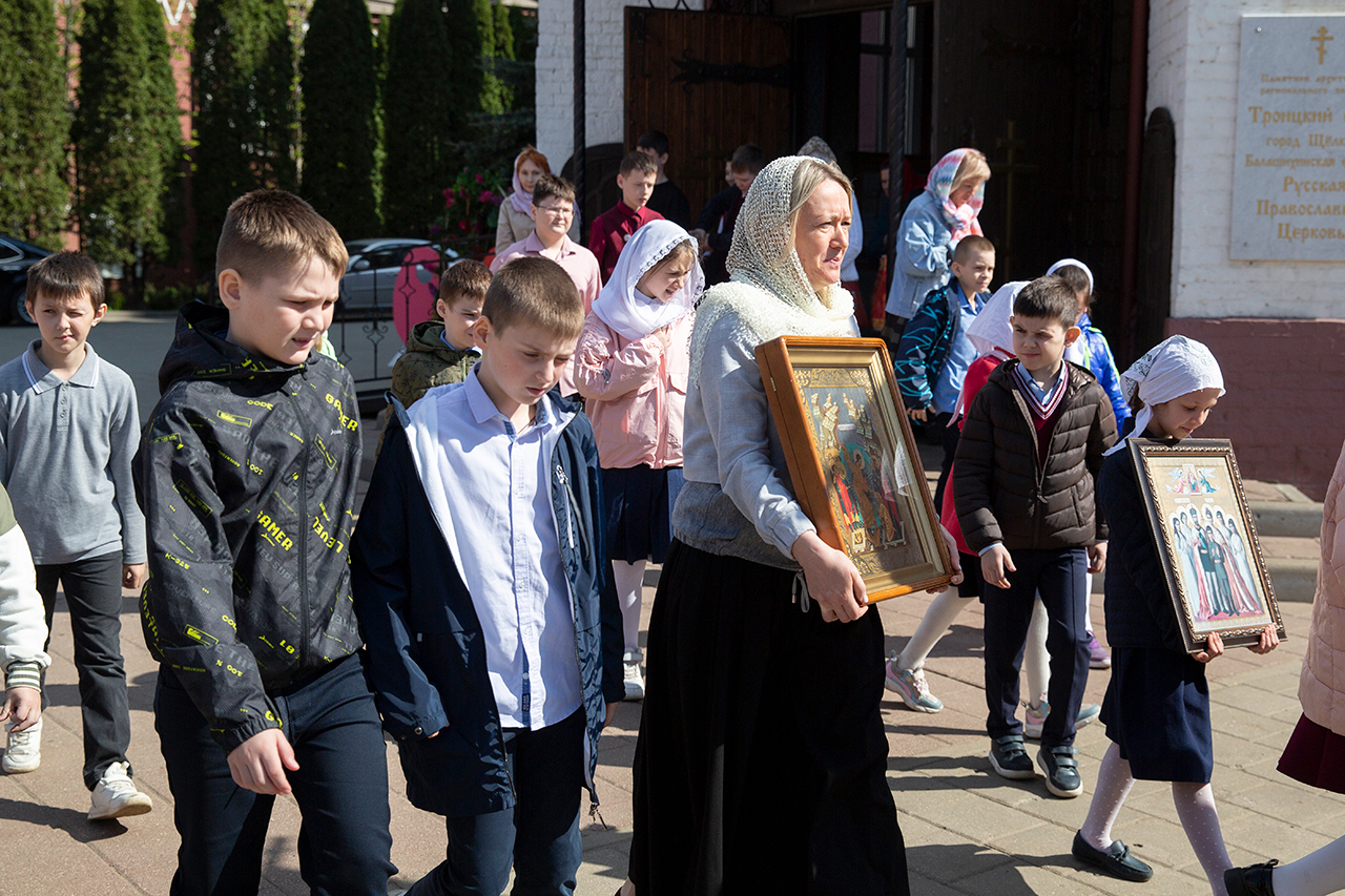 На богослужении помимо прихожан храма молились преподаватели и учащиеся Православной Алексиевской гимназии при Троицком соборе города Щёлково.