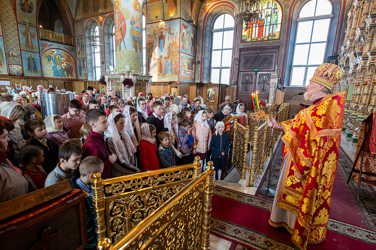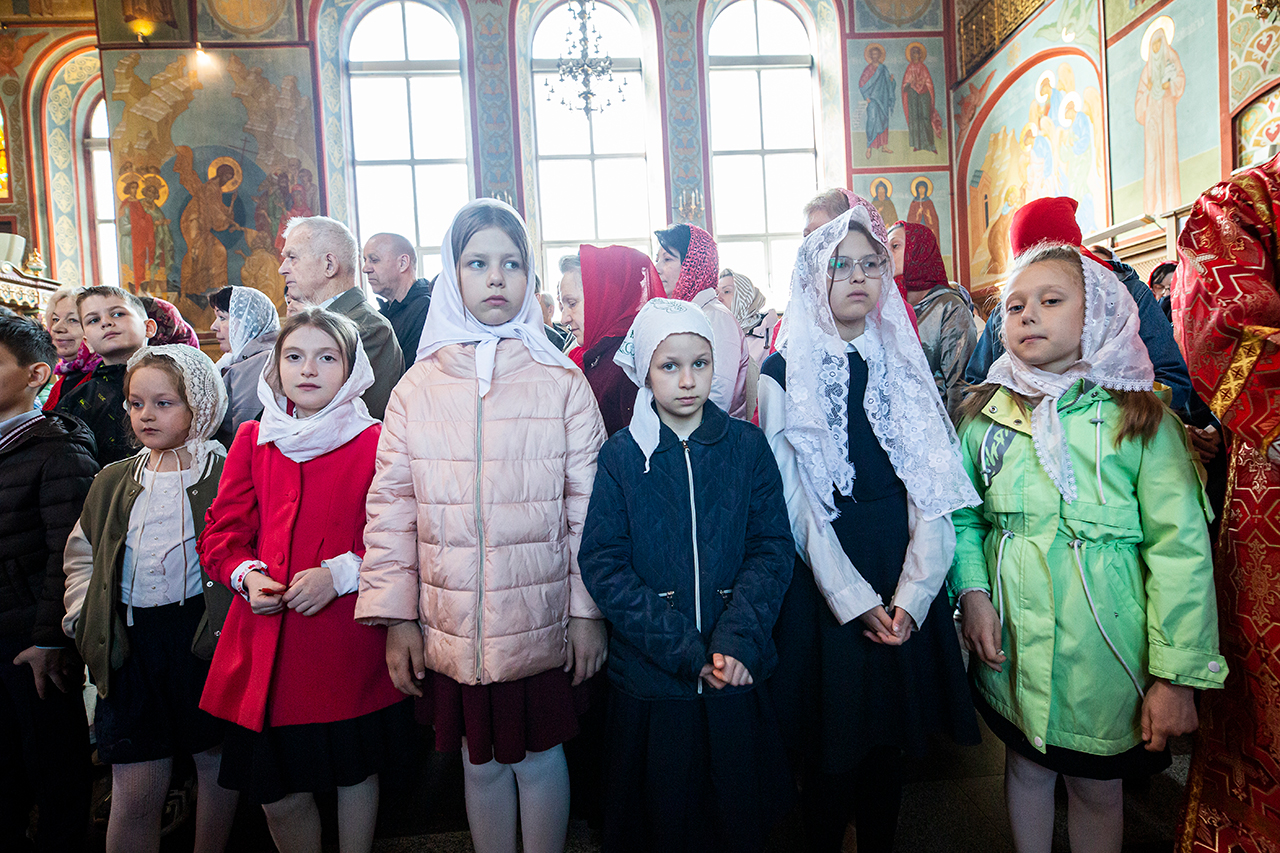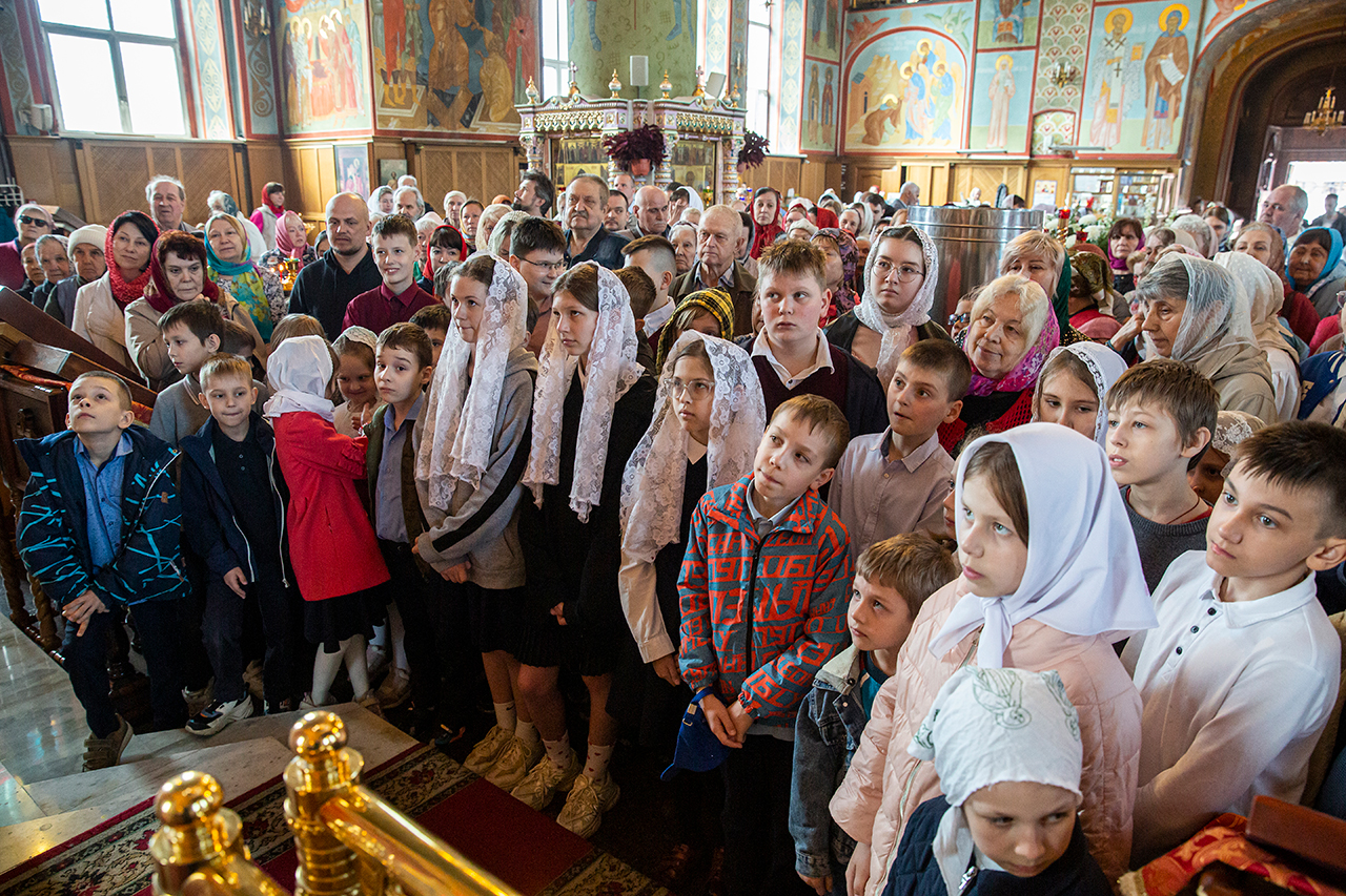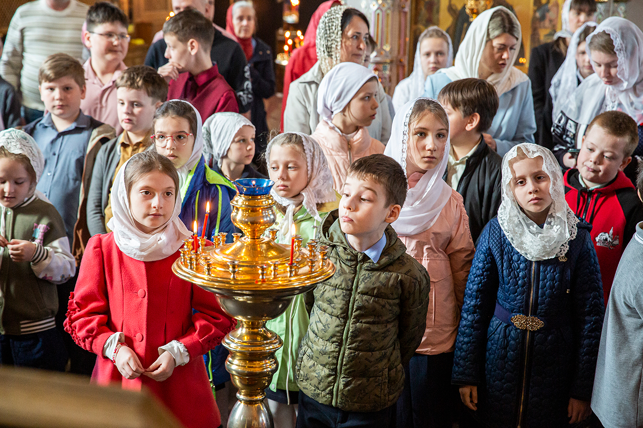 На богослужении помимо прихожан храма молились преподаватели и учащиеся Православной Алексиевской гимназии при Троицком соборе города Щёлково.