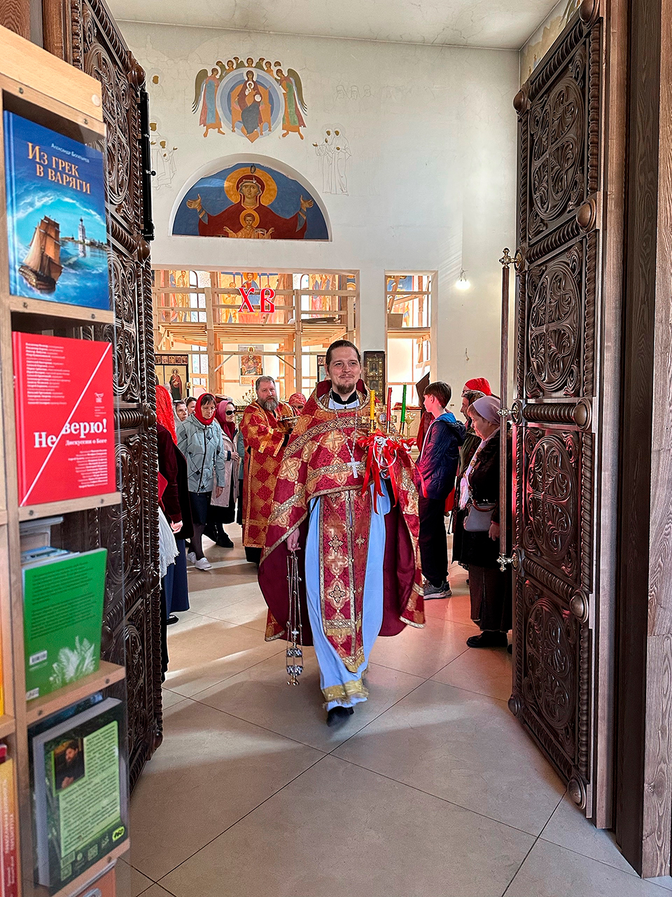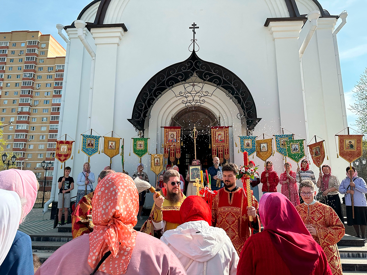 С 21 по 26 апреля, во все дни Светлой седмицы, в Державном храме города Фрязино проходили торжественные праздничные пасхальные богослужения, которые совершали настоятель храма священник Димитрий Третьяков и клирики прихода.