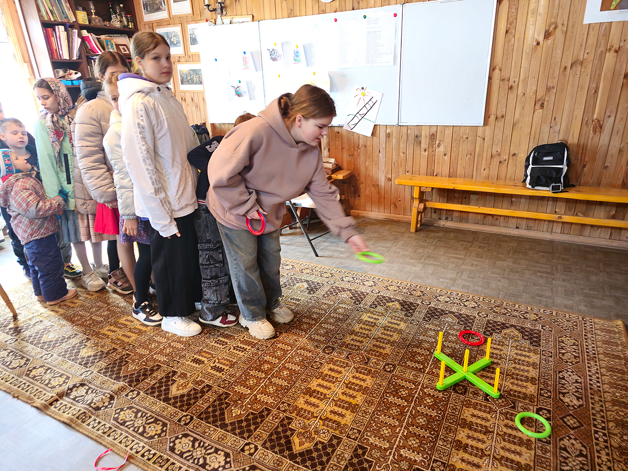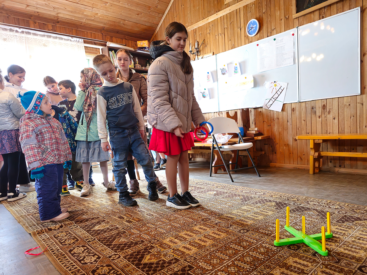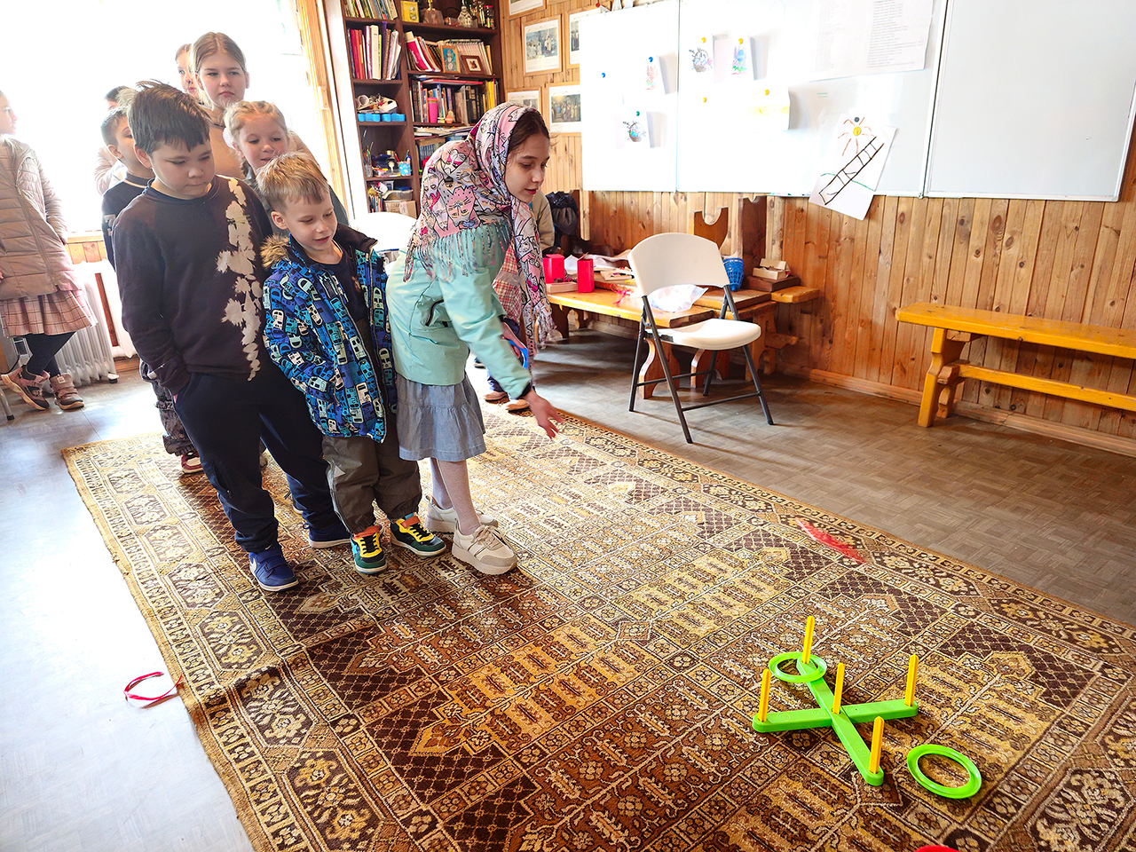 Ребята отгадывали загадки, катали яйца с горки, выигрывали призы, а также упражнялись в ловкости, играя в кольцеброс. А после все собрались за чаем с настоятелем храма священником Илией Плешаковым. Праздник принес много положительных эмоций участникам!