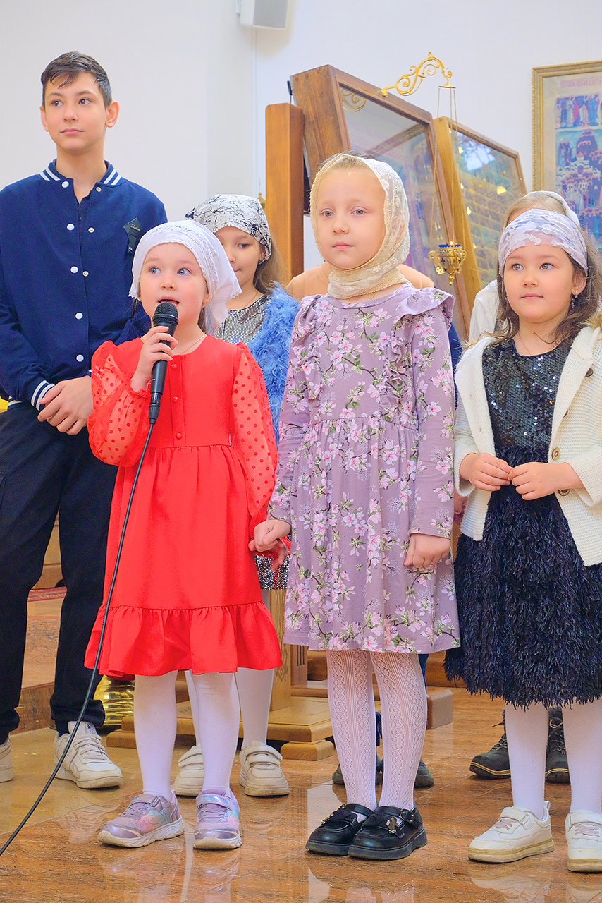 Дети выступили перед прихожанами и своими родителями с праздничными поздравлениями и песнопениями. В честь праздника Пасхи, после окончания концерта, детям был накрыт сладкий стол.