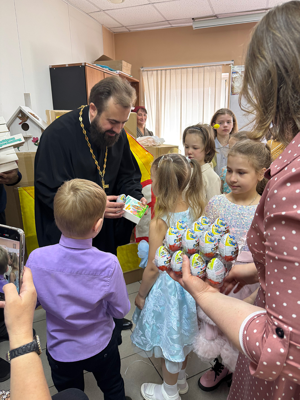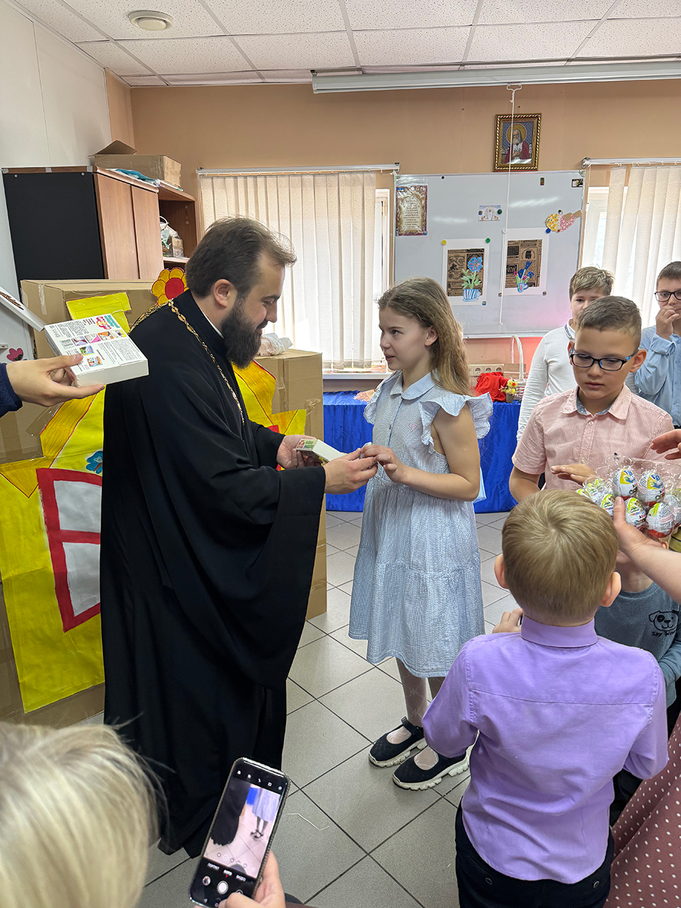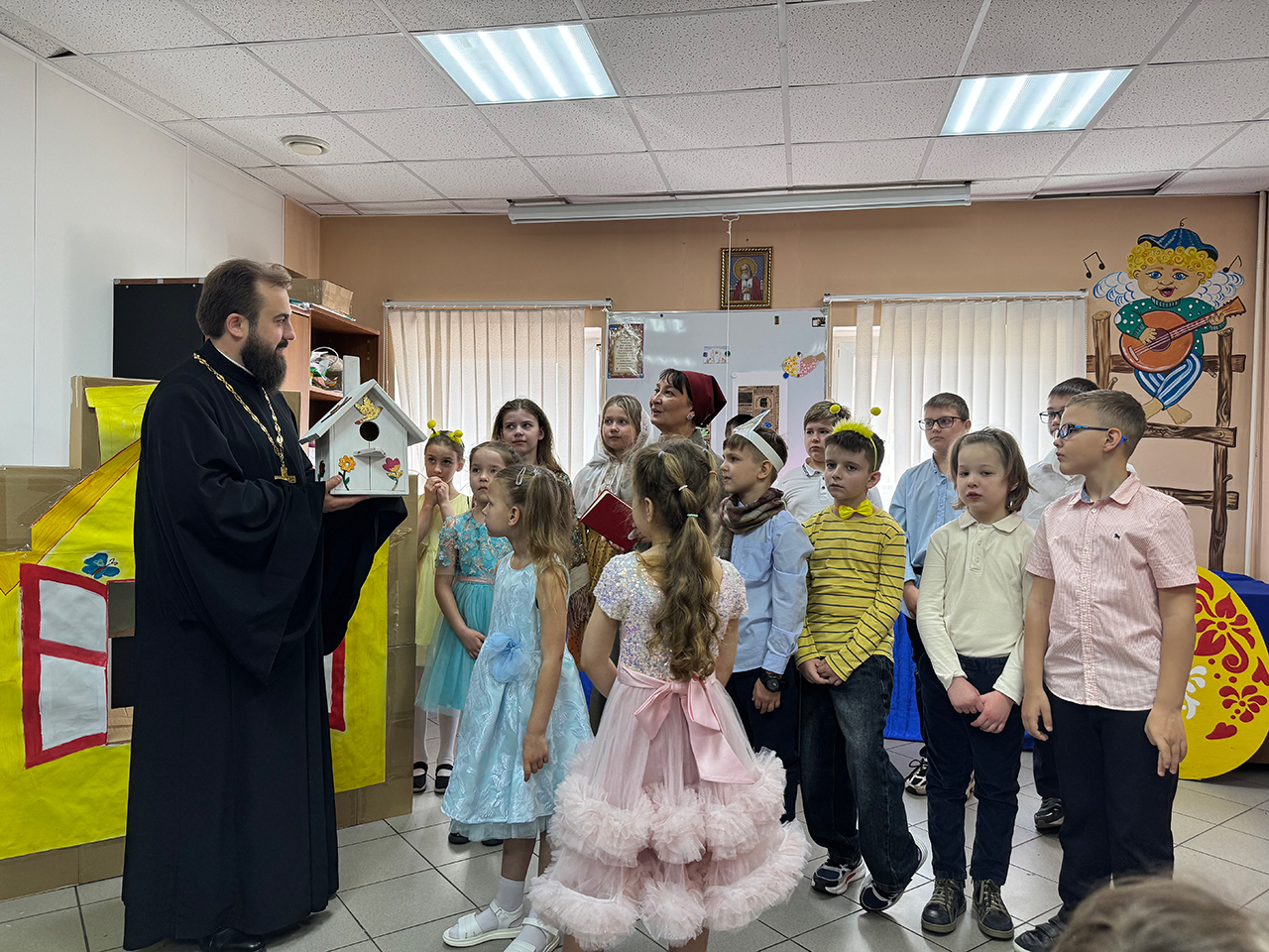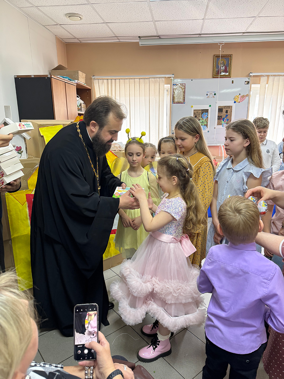 После выступления настоятель храма священник Виталий Крикота подарил ребятам сладкие подарки.