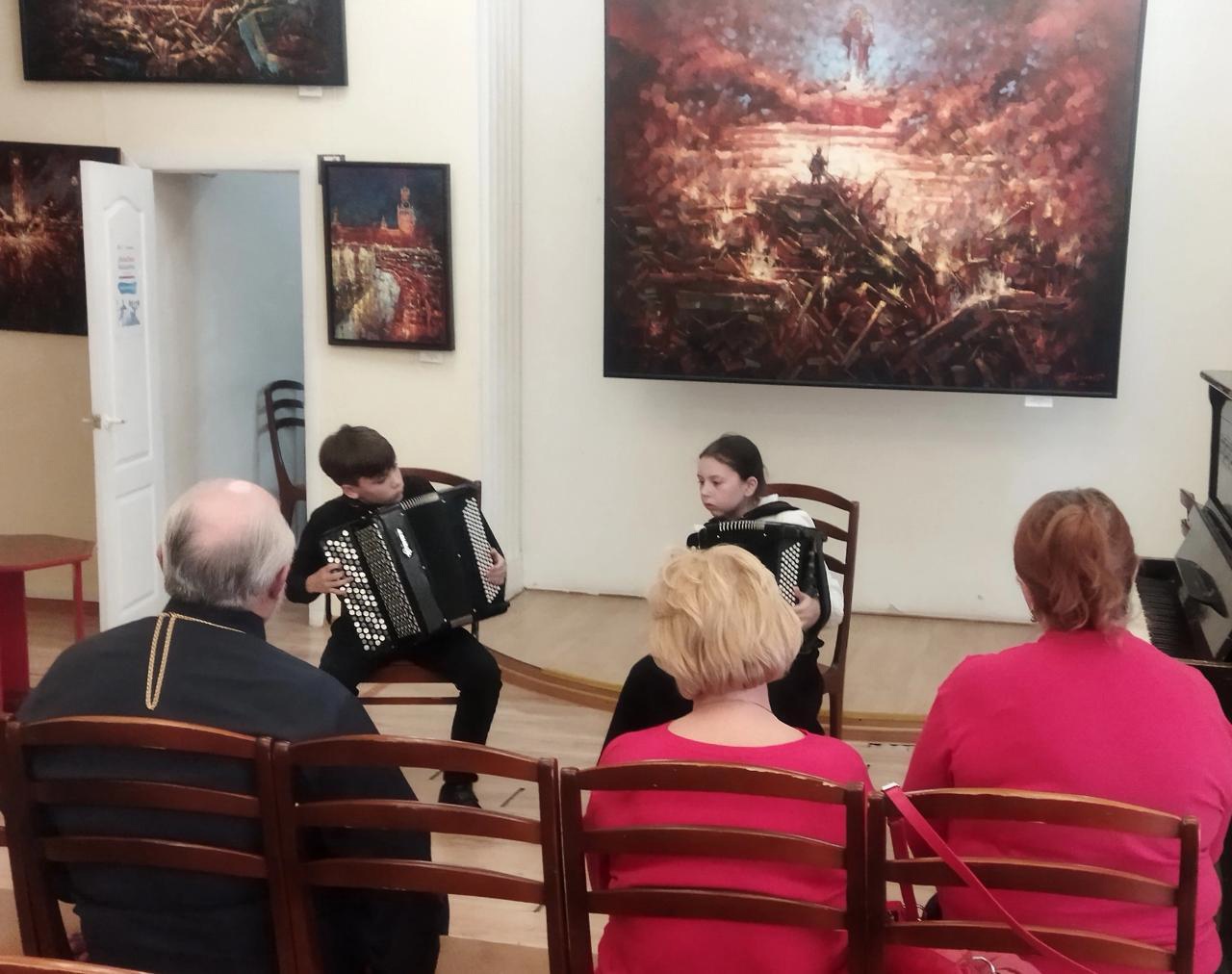 Повествование автора книги дополнил музыкальный дивертисмент учащихся Фрязинской детской школы искусств по классу фортепиано (преподаватель В.Ю. Бабаева) и отдела народных инструментов (преподаватель О.В. Солдатова). Юные исполнители показали высочайший класс мастерства. В музыкальной программе было много произведений, связанных с юбилеем Великой Победы, 80-летие которой мы уже начали славно и светло отмечать в эти праздничные пасхальные дни.