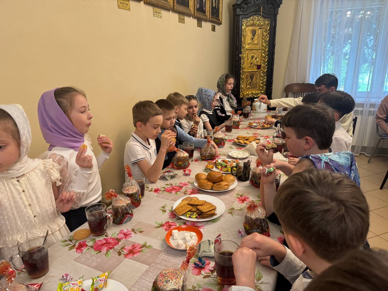 Настоятель храма священник Димитрий Выдумкин познакомил экскурсантов с историей и убранством храма. После экскурсии ученики с родителями поднялись на колокольню и попробовали себя в качестве звонарей. В завершение мероприятия для учащихся было организовано чаепитие.