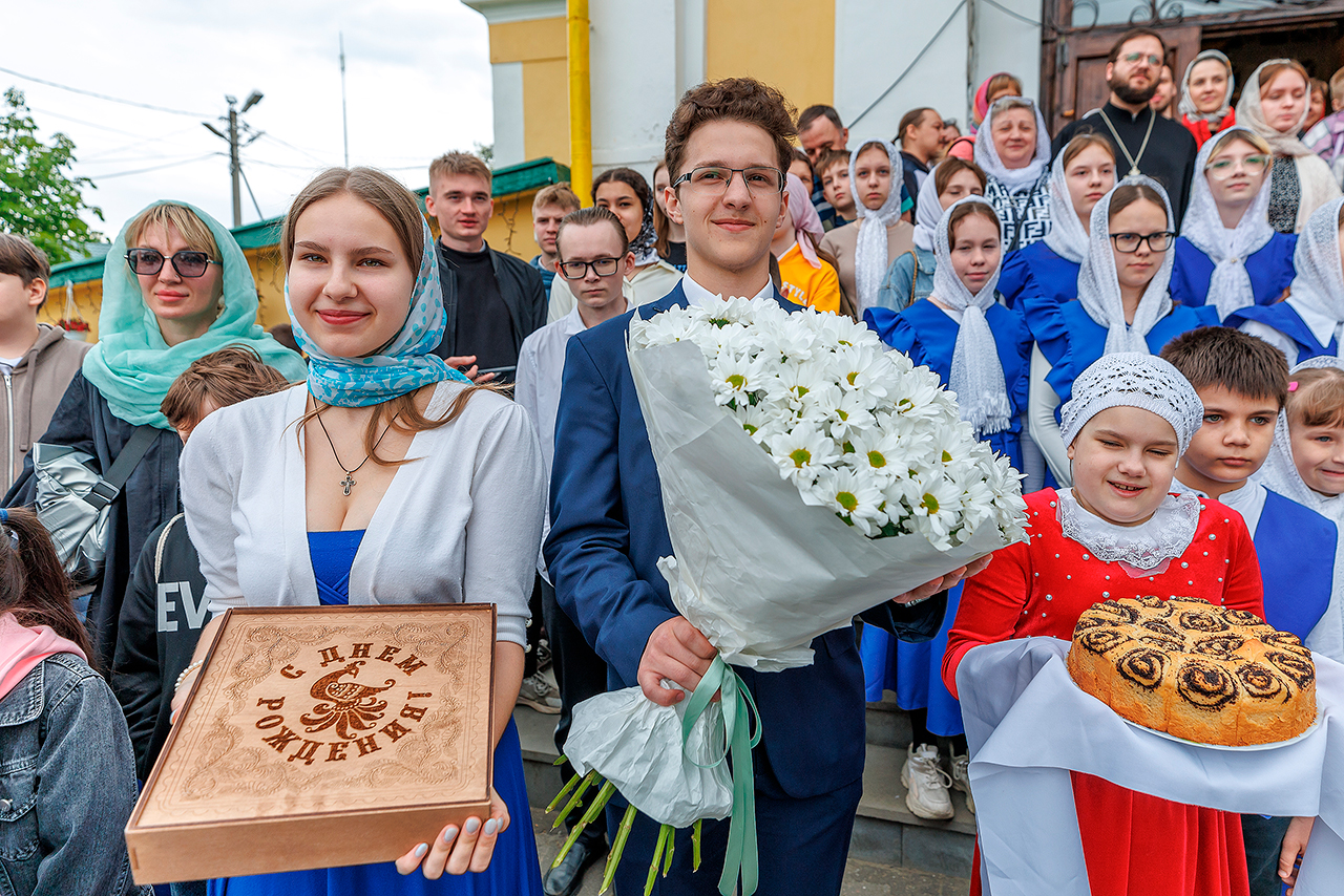 Его Преосвященство обратился к молодёжи с архипастырским словом, отметив значимость семейных ценностей и призвав следовать примеру святых благоверных князей Петра и Февронии Муромских.