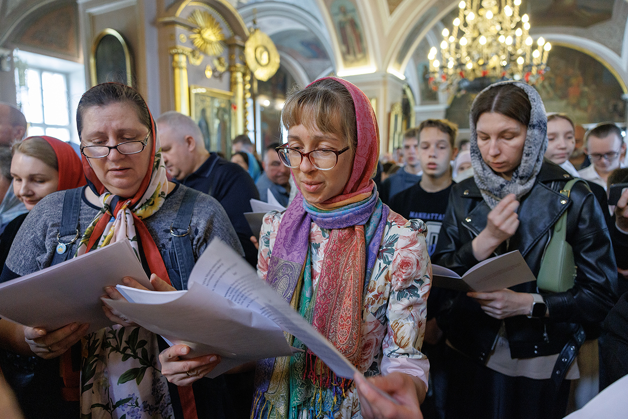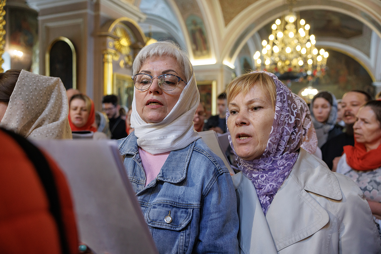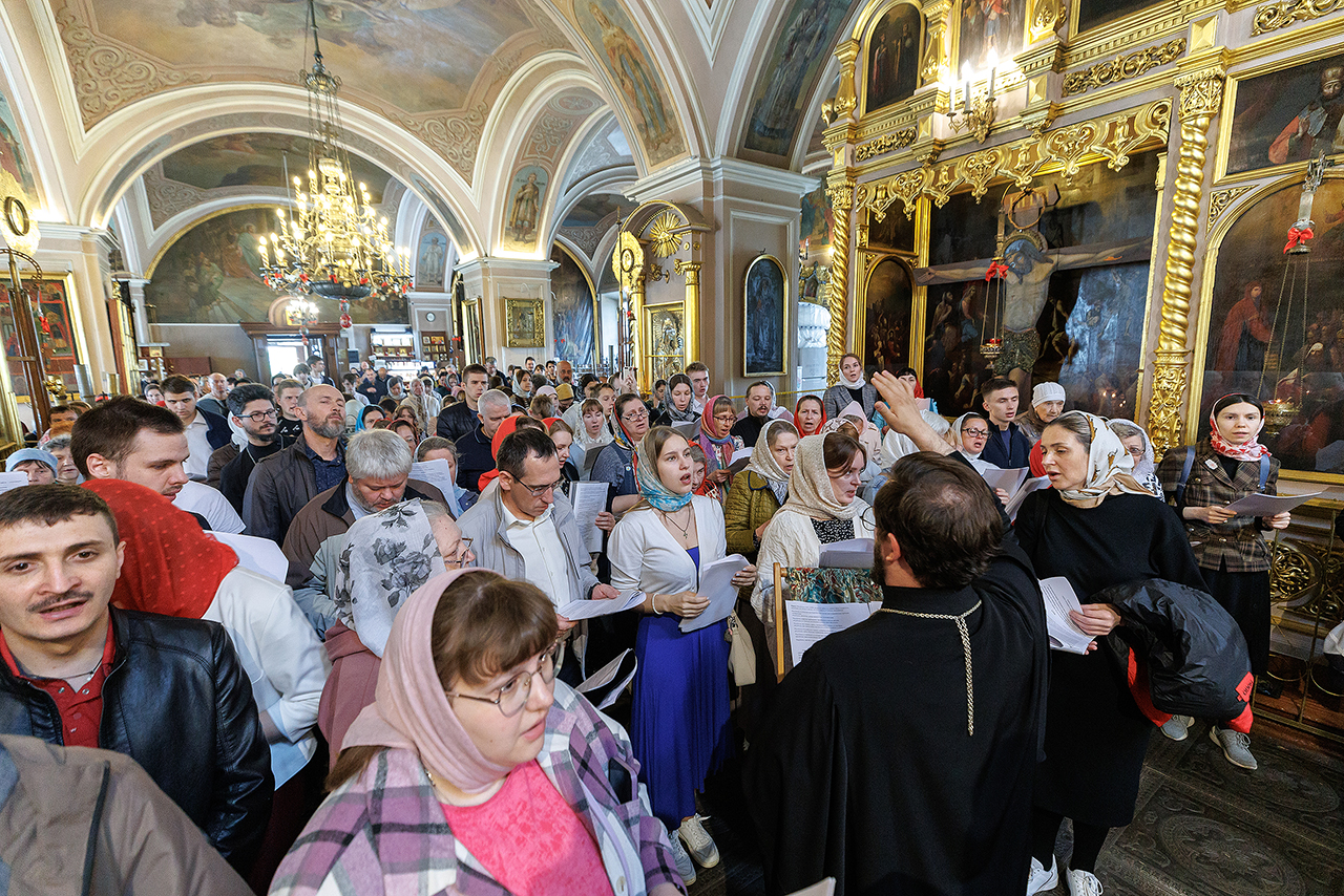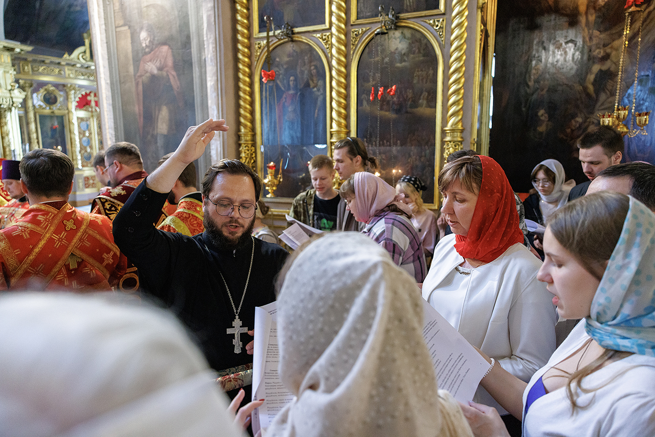 В акафистном пении участвовали молодежь Щёлковского благочиния под управлением регента клирика Троицкого собора города Щёлково священника Романа Галиева.