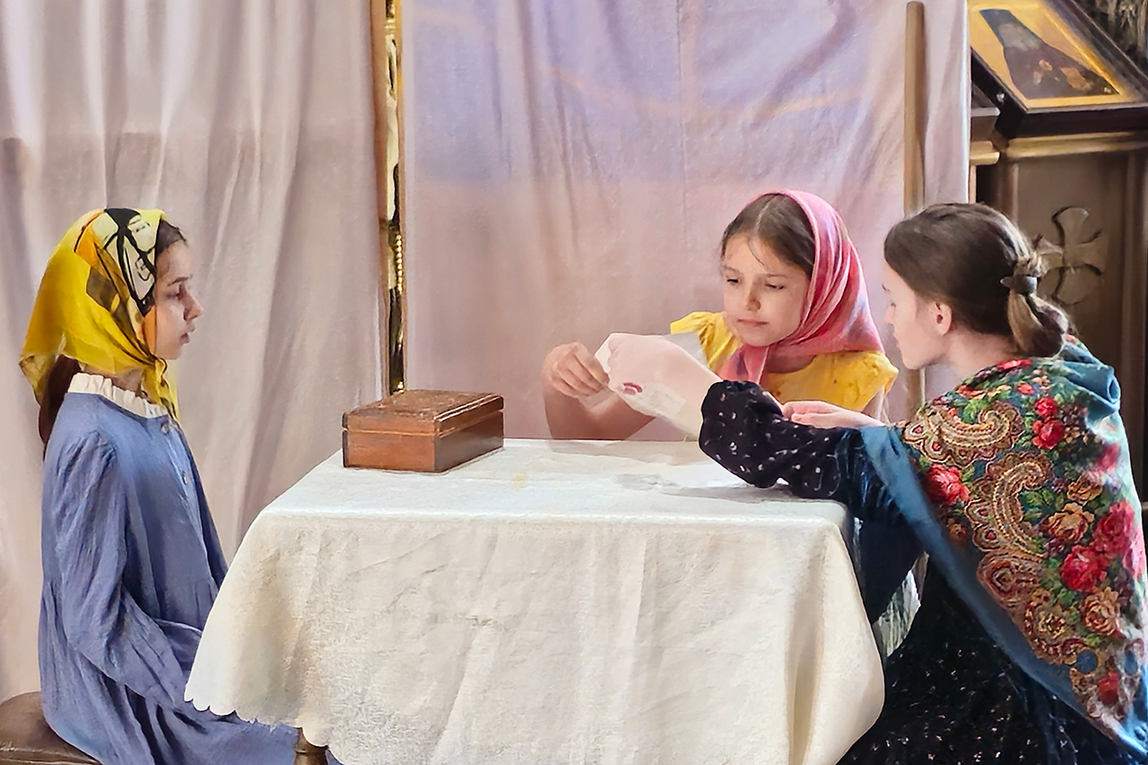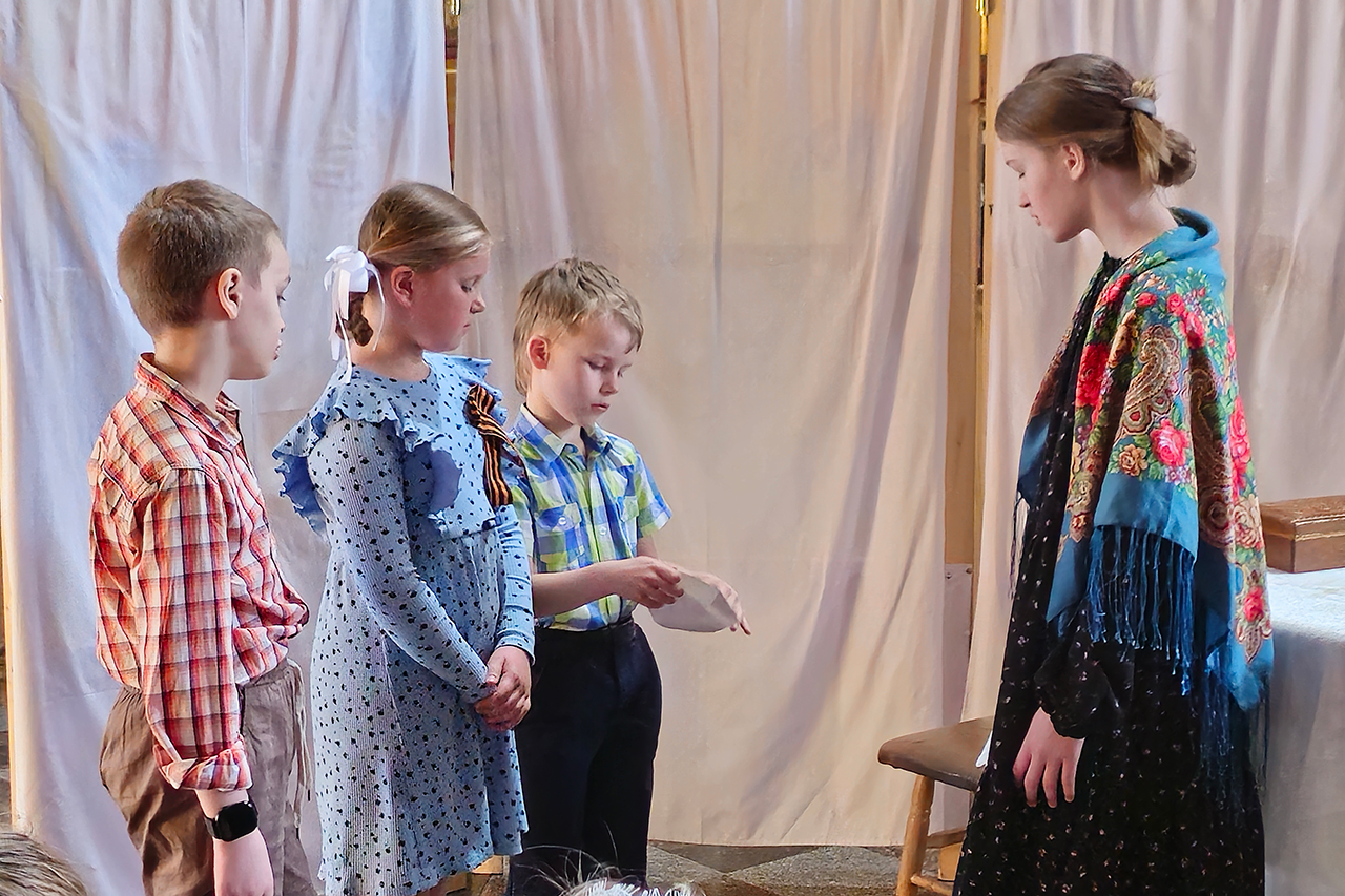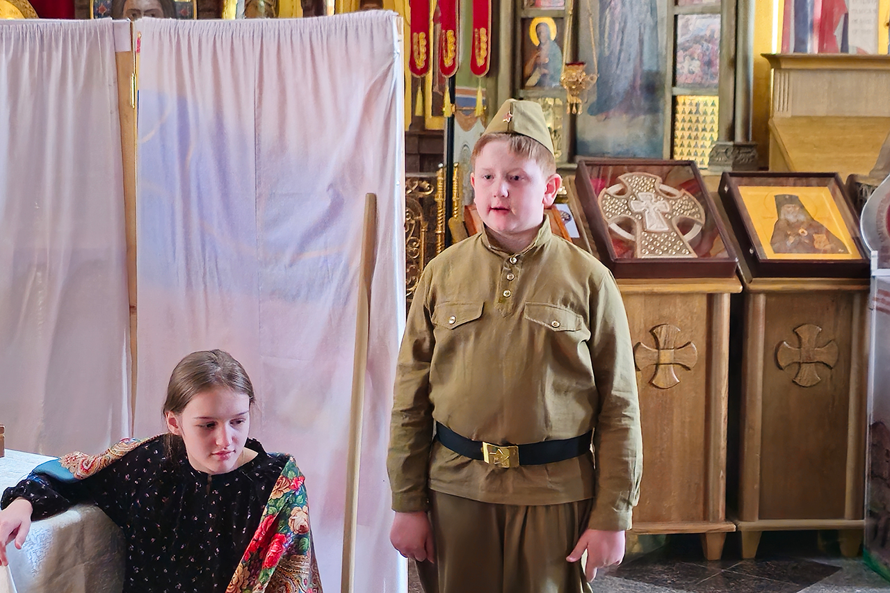 После Божественной литургии воспитанники приходской воскресной школы представили спектакль по рассказу Юрия Яковлева «Реликвия», повествующей о подвиге русского солдата, посвященный также 80-летию Победы в Великой Отечественной войне.