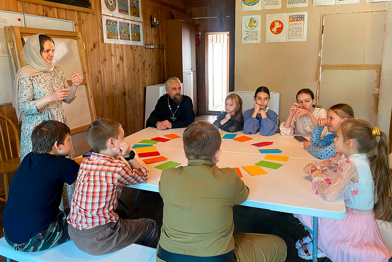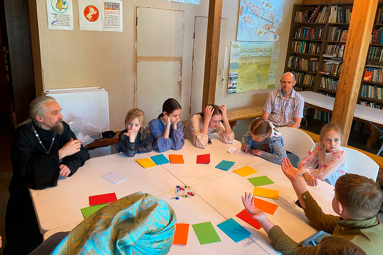 После спектакля состоялась традиционная игра для учащихся воскресной школы. Родители подготовили для ребят интересные лингвистические загадки, а также вопросы, связанные с историей славянской письменности и русского языка. Маленькие знатоки с увлечением обсуждали их, пытаясь найти верные ответы.