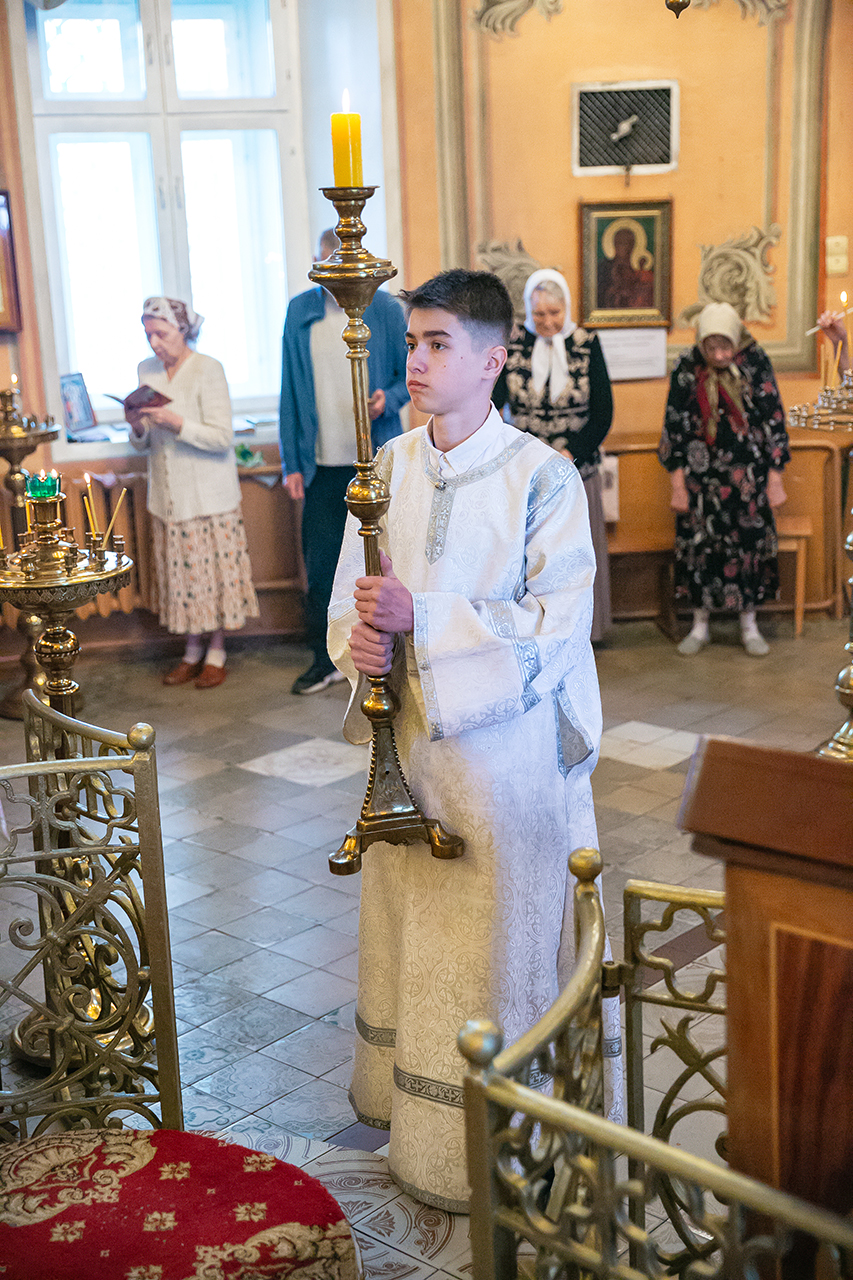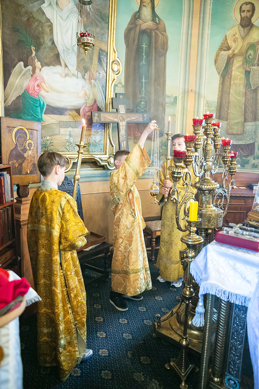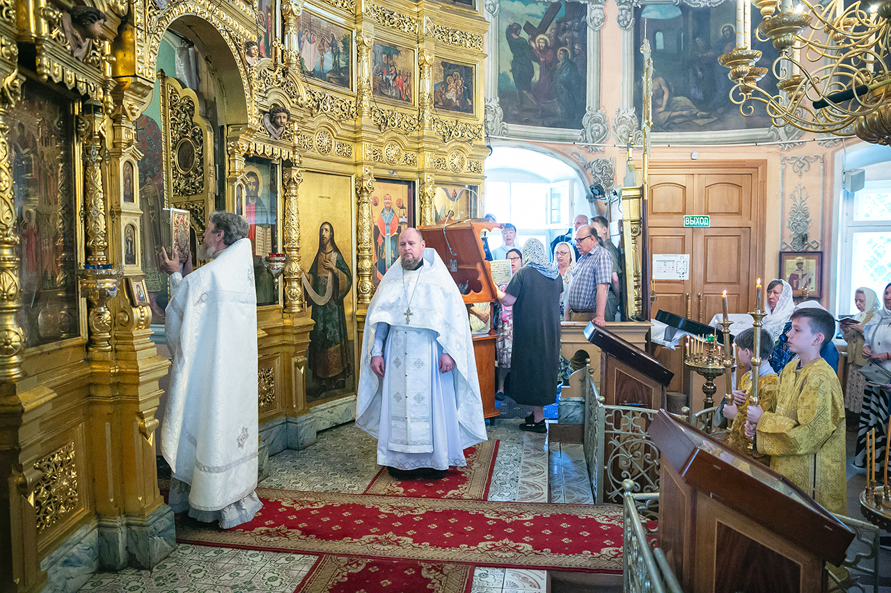 Божественную литургию в этот день совершил настоятель храма протоиерей Алексий Никонов в сослужении клириков храма. А накануне, 28 мая, в храме было совершено Всенощное бдение.