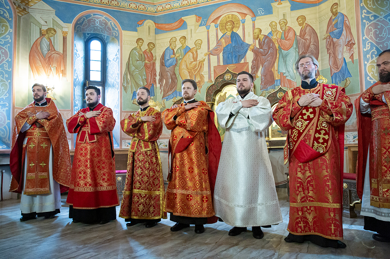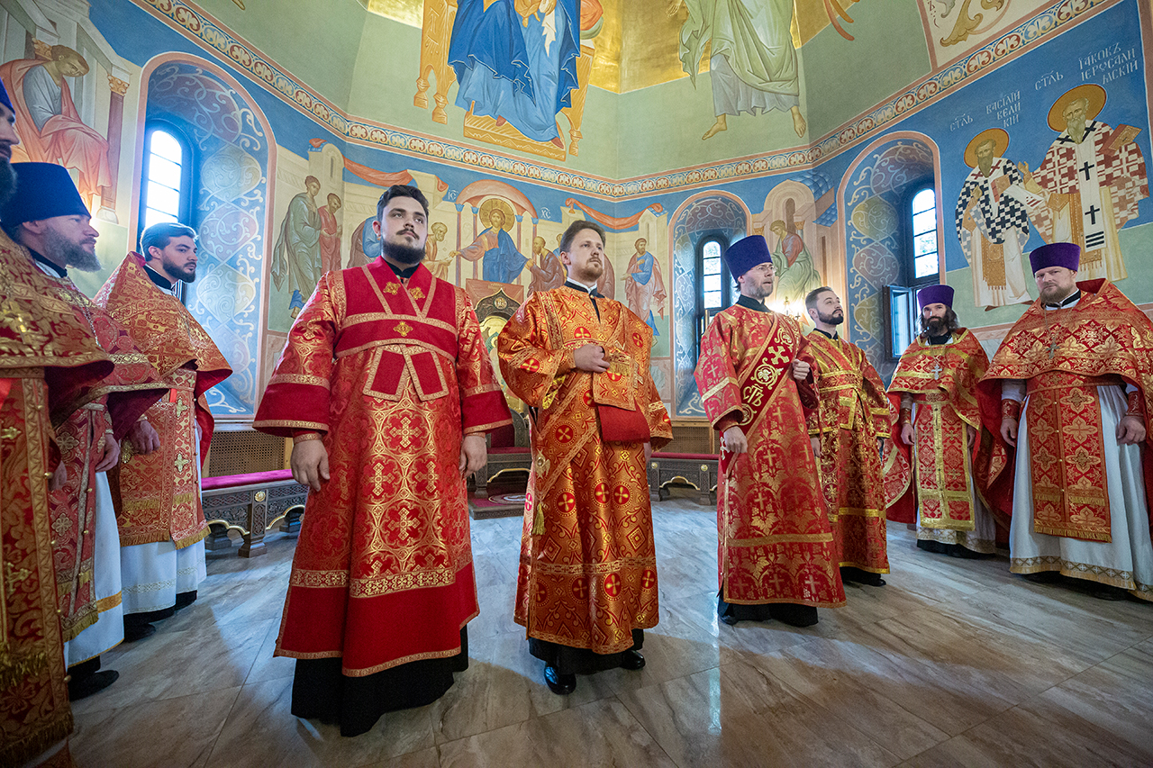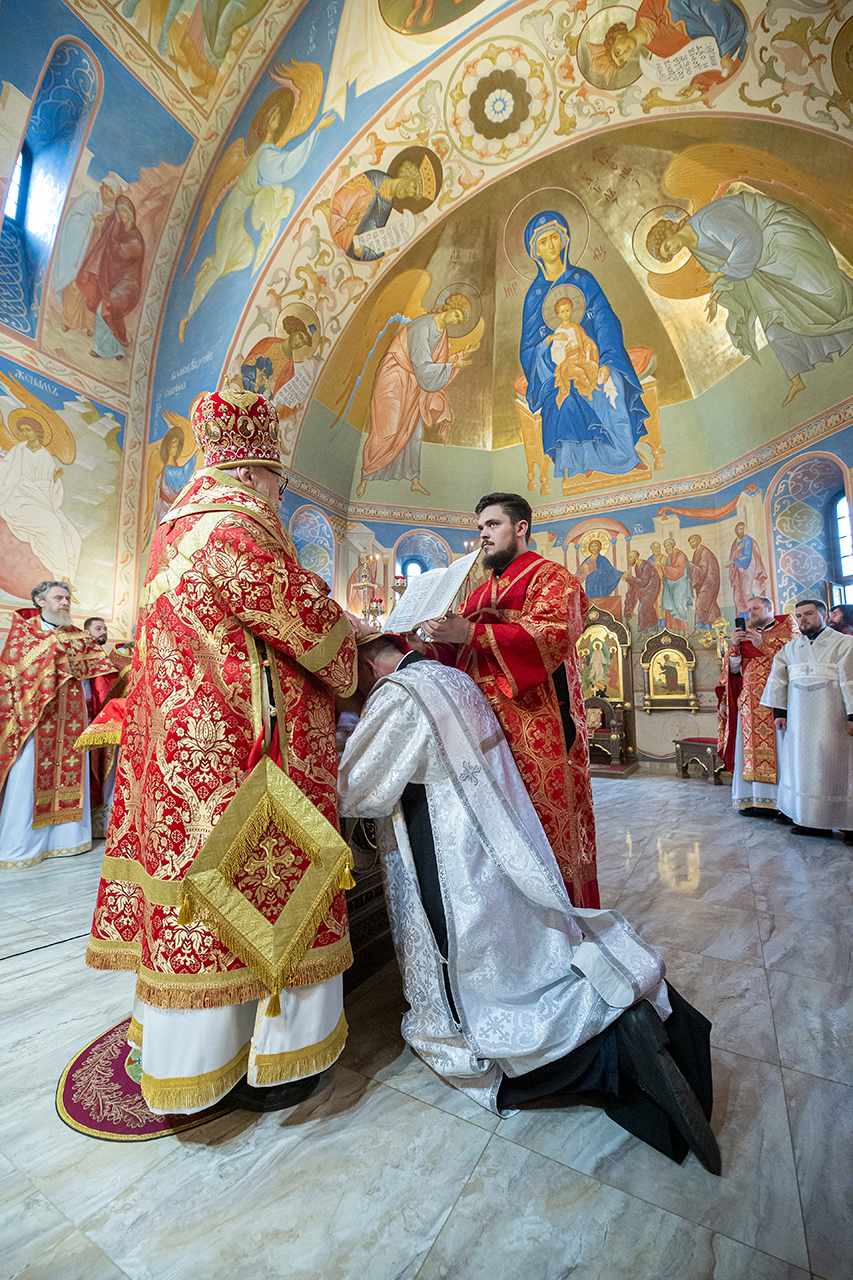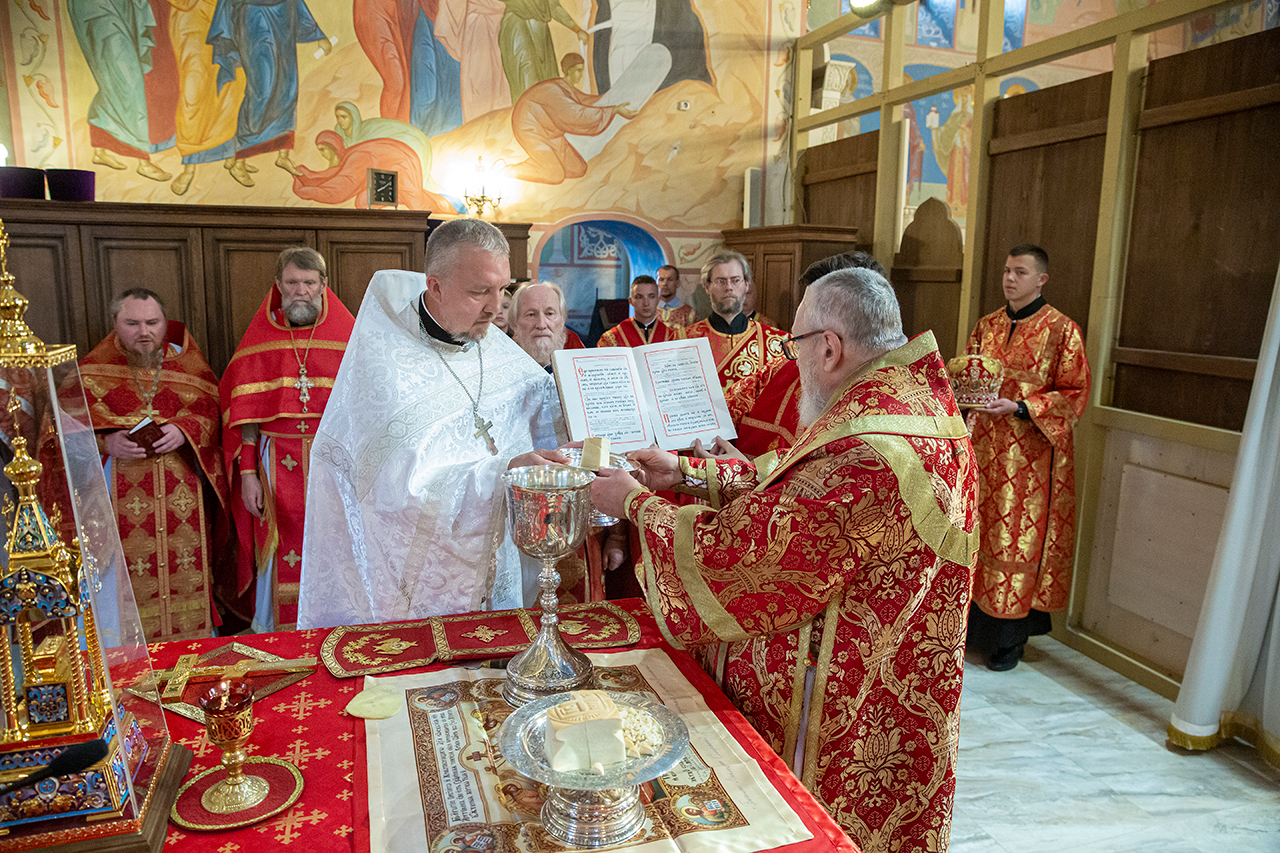 За богослужением была совершена священническая хиротония клирика Троицкого собора города Щёлково диакона Димитрия Задорожного и диаконская хиротония алтарника Троицкого собора города Щёлково Сергия Пейогло.