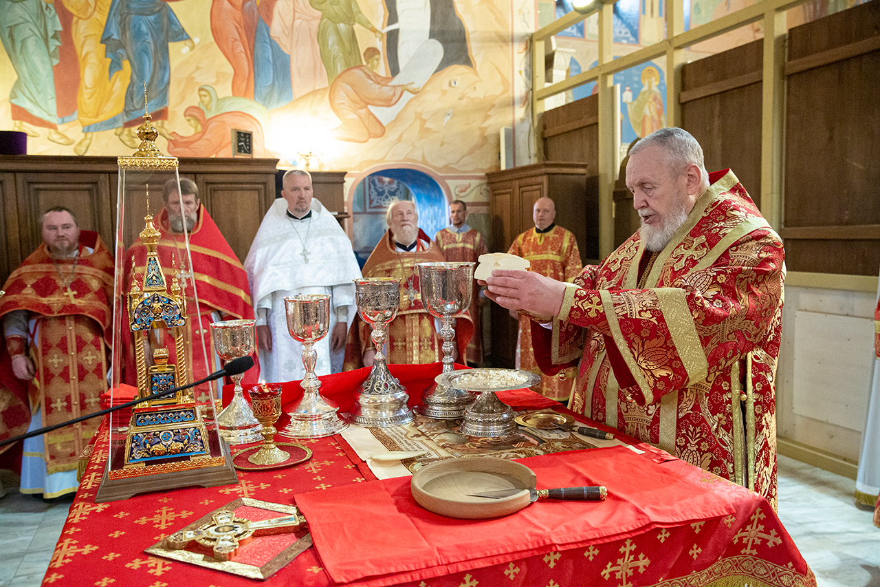 Его Преосвященству сослужили благочинный Щёлковского церковного округа протоиерей Андрей Ковальчук и духовенство благочиния.