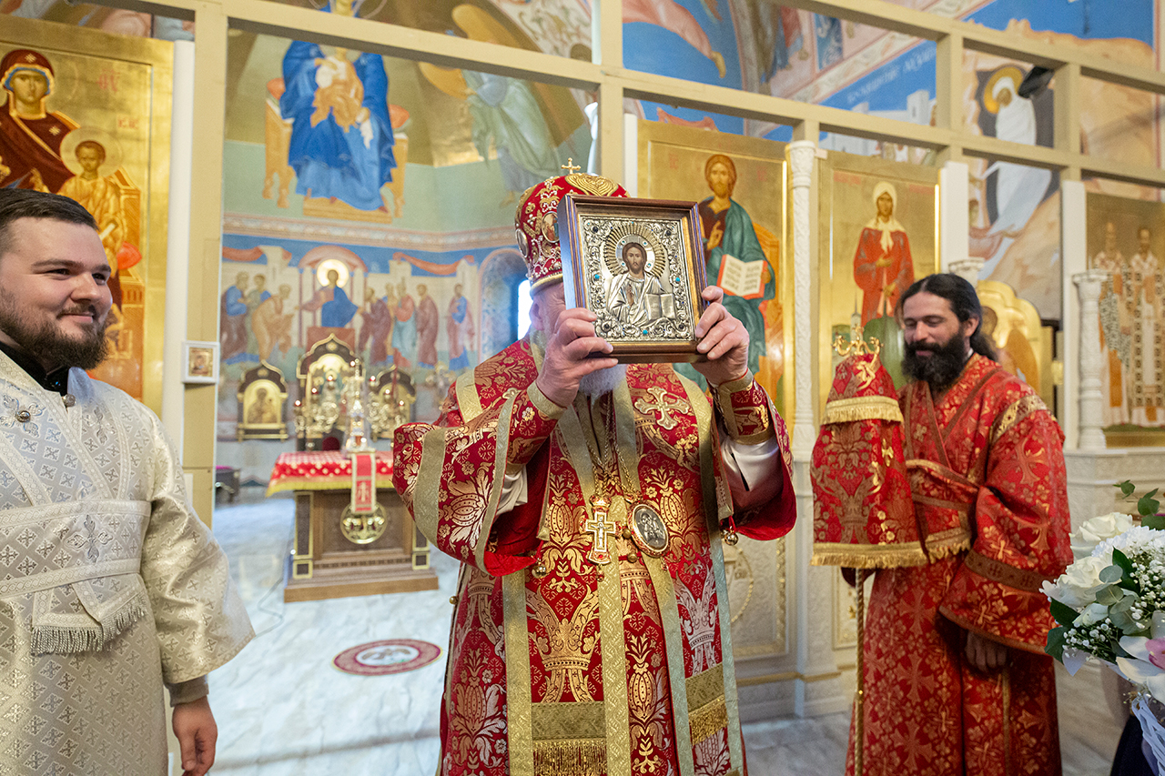 По окончании Литургии к епископу Николаю обратился благочинный отец Андрей, который поблагодарил Владыку за визит и совместную молитву и на память о богослужении преподнёс икону Спасителя.