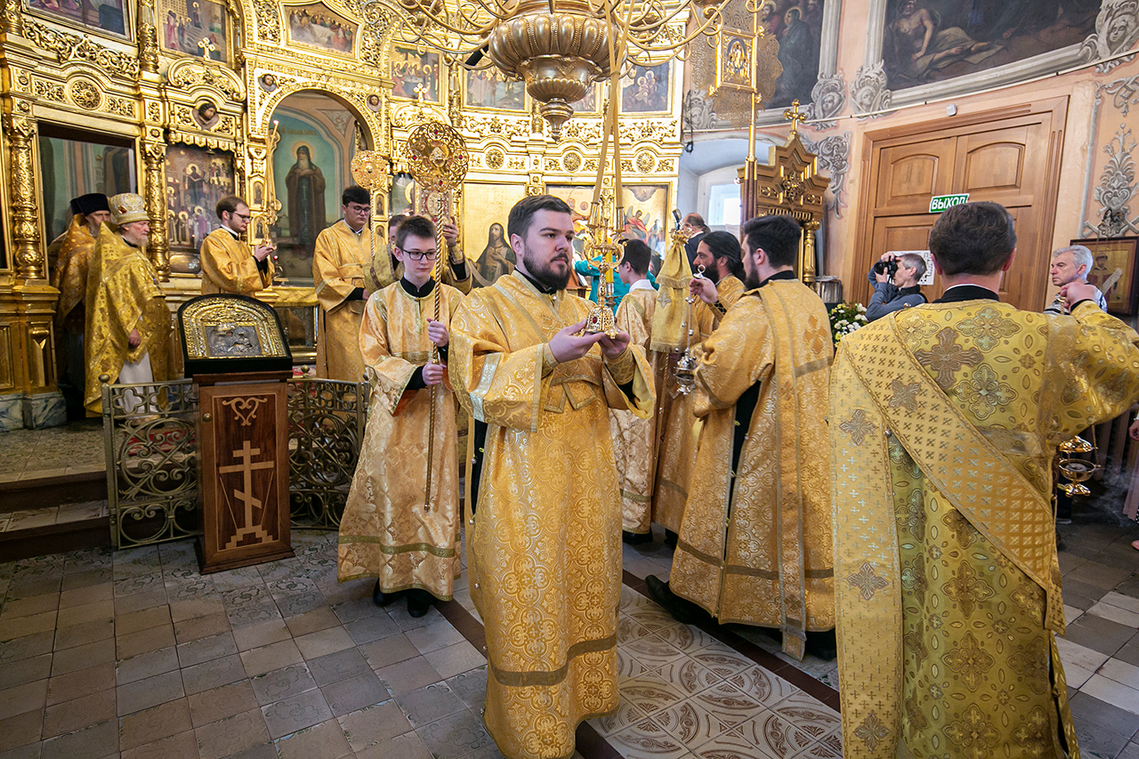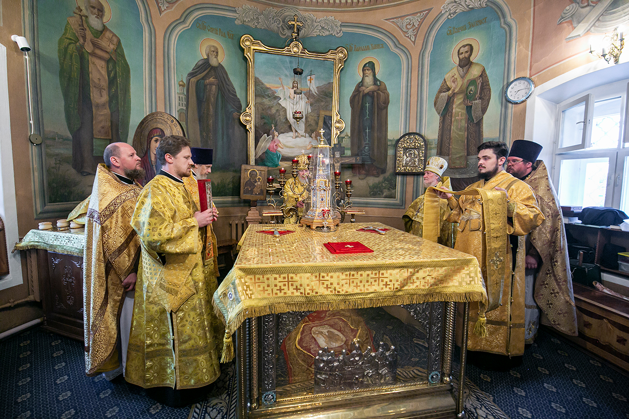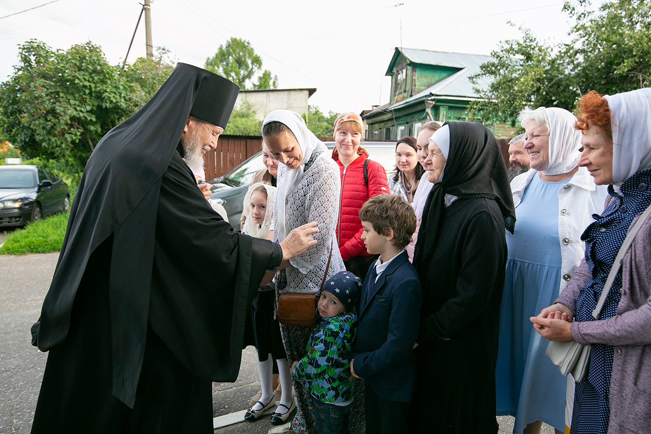 По окончании Литургии к епископу Николаю обратился настоятель Покровского храма отец Алексий, который поблагодарил Владыку за визит и совместную молитву и на память о богослужении преподнёс икону Владимирской Божией Матери.