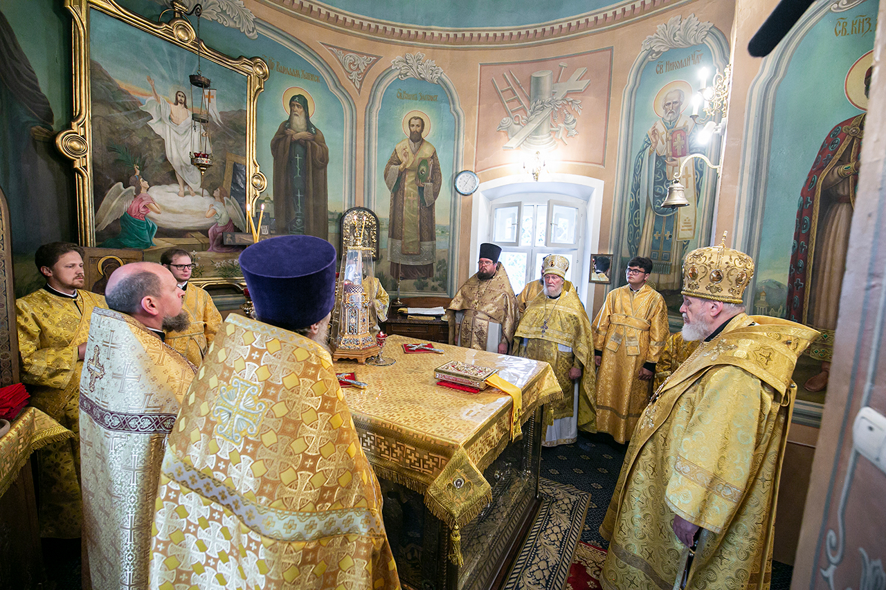 Его Преосвященству сослужили благочинный Щёлковского церковного округа протоиерей Андрей Ковальчук, настоятель Покровского храма протоиерей Алексий Никонов и духовенство благочиния.