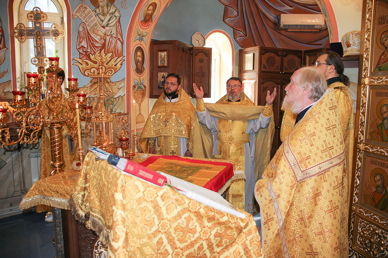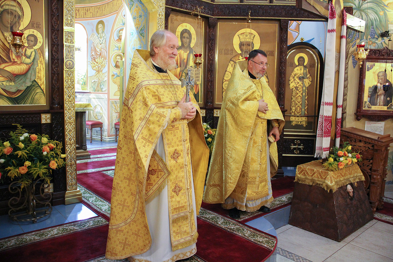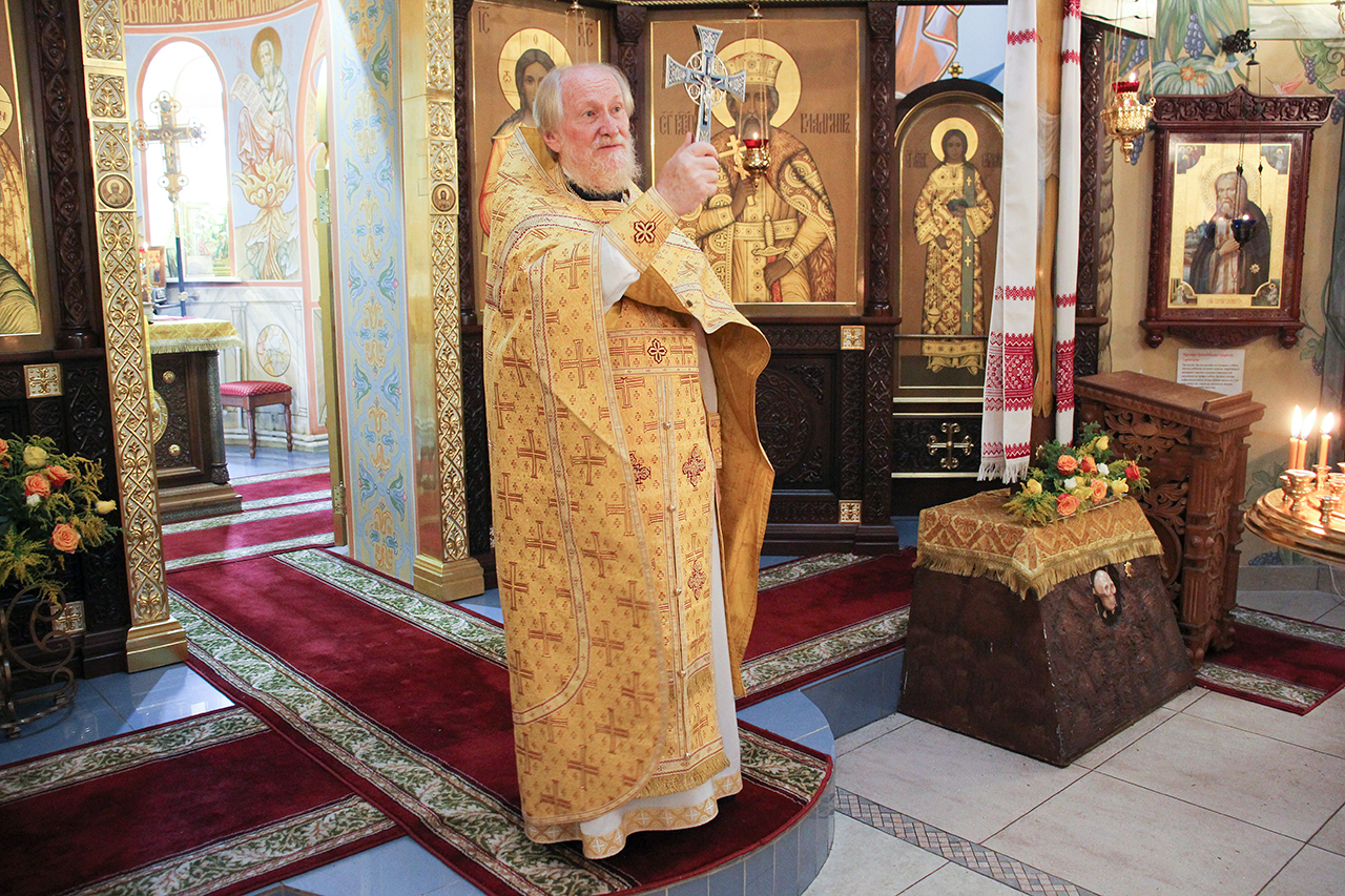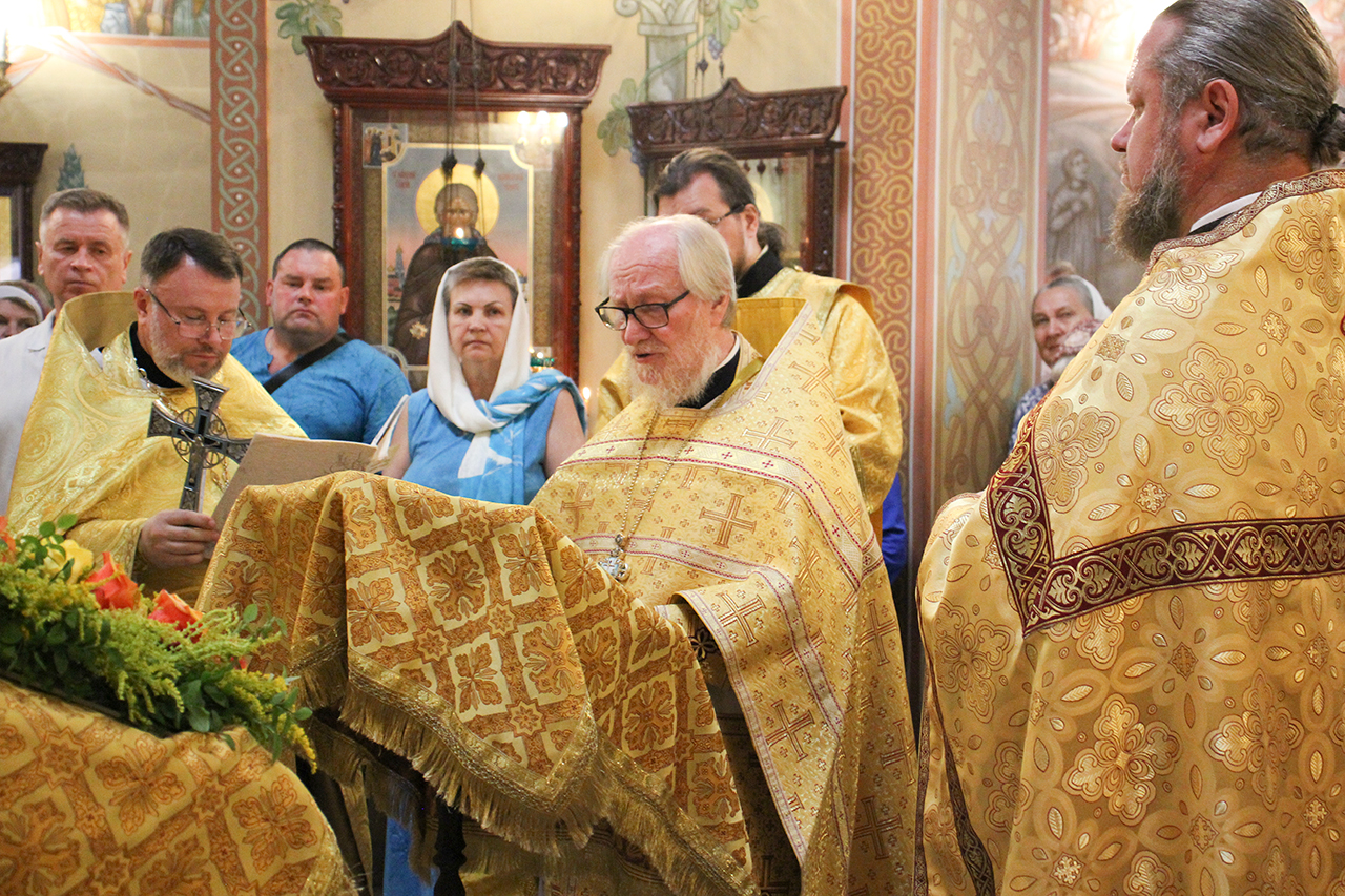 После Литургии и Праздничного Крестного хода, благочинный отец Андрей обратился к батюшкам и прихожанам со словами поздравления с престольным праздником.