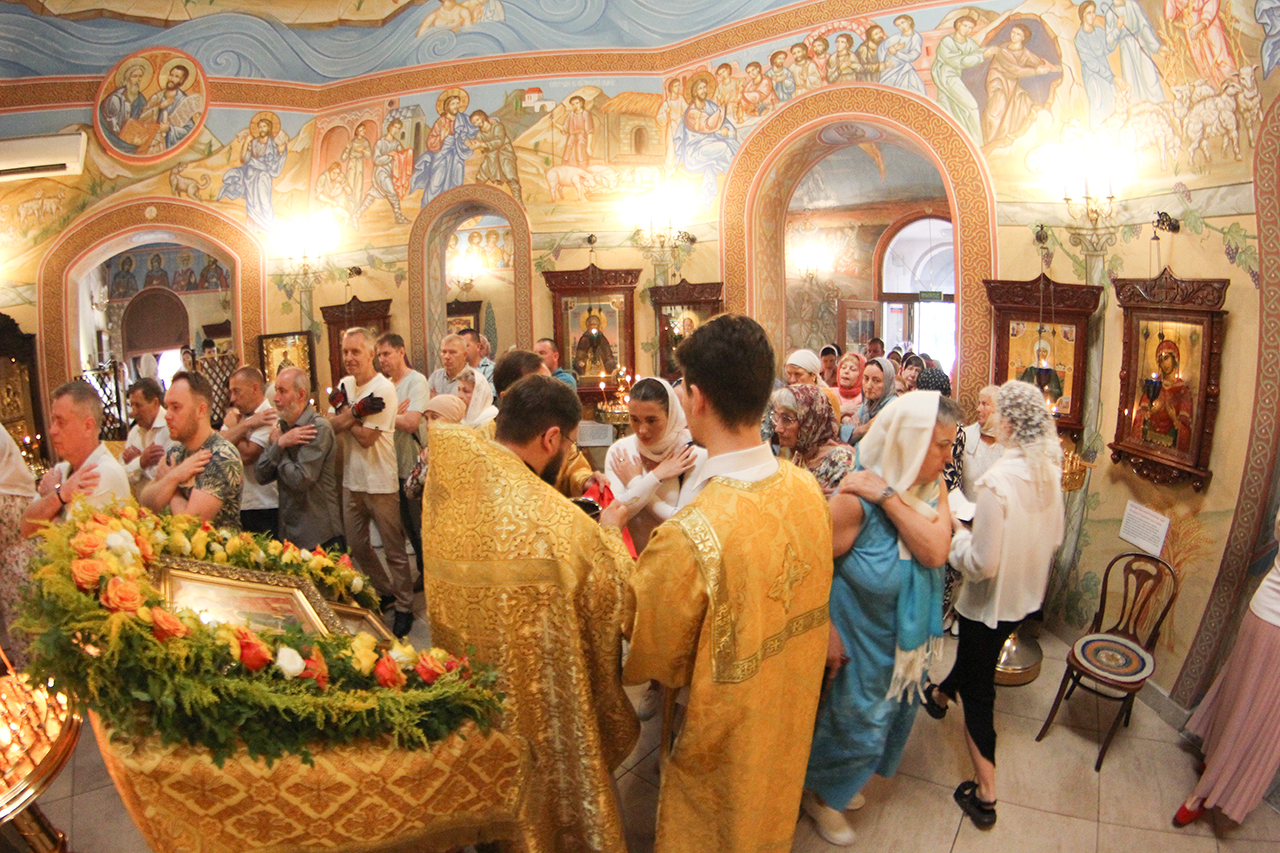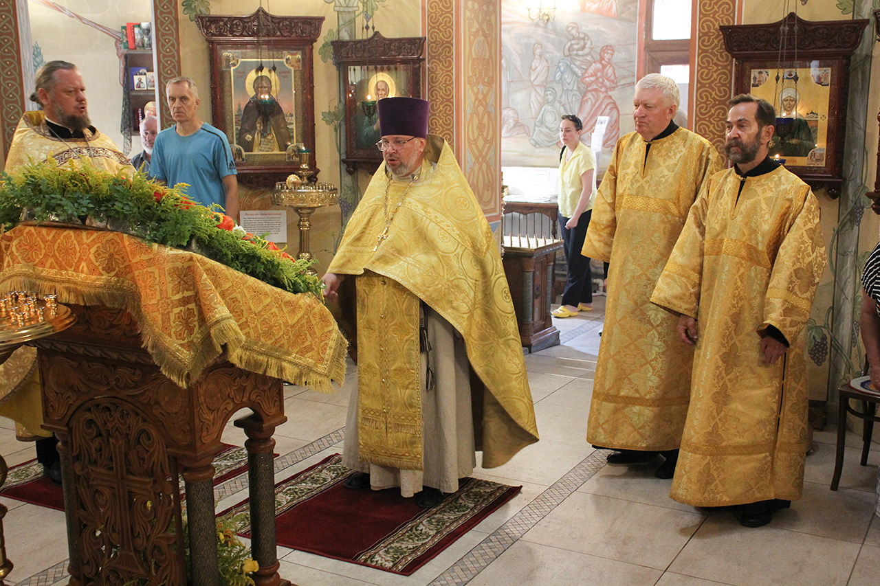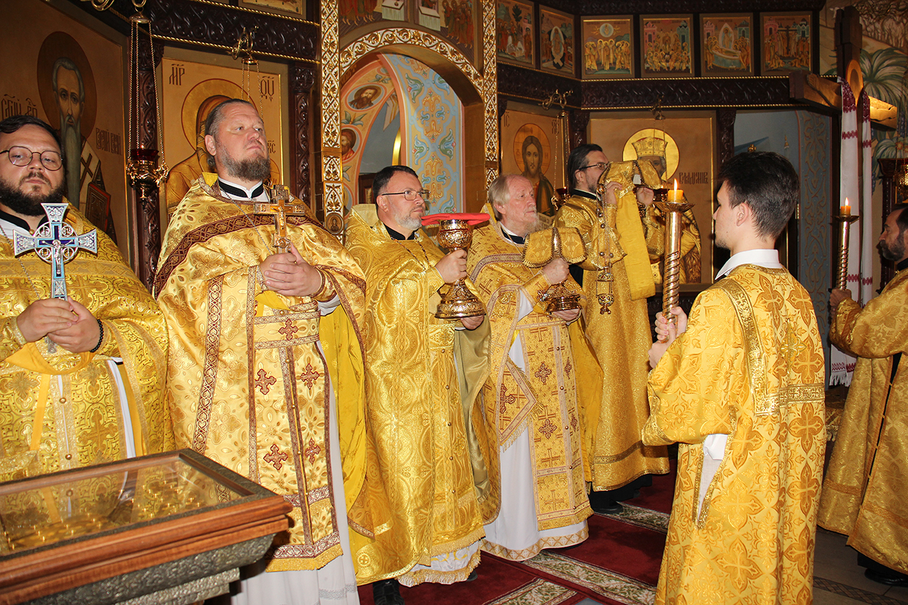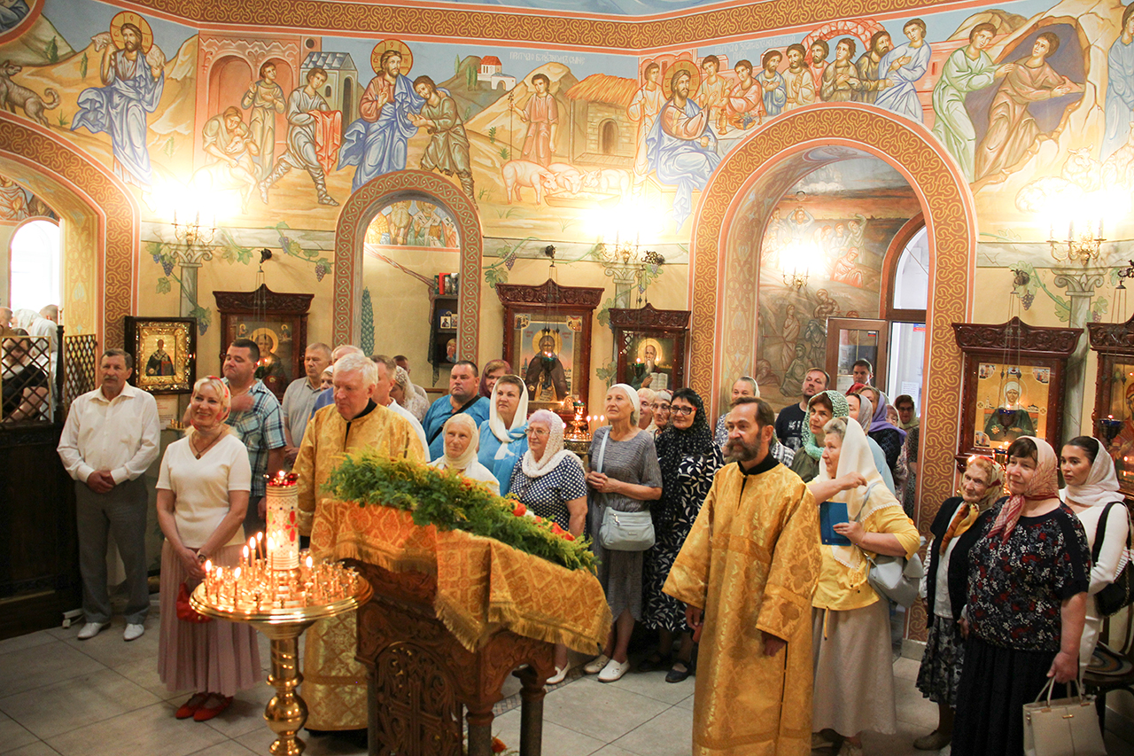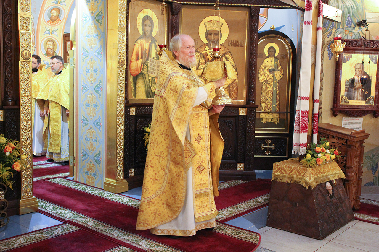 После Литургии и Праздничного Крестного хода, благочинный отец Андрей обратился к батюшкам и прихожанам со словами поздравления с престольным праздником.