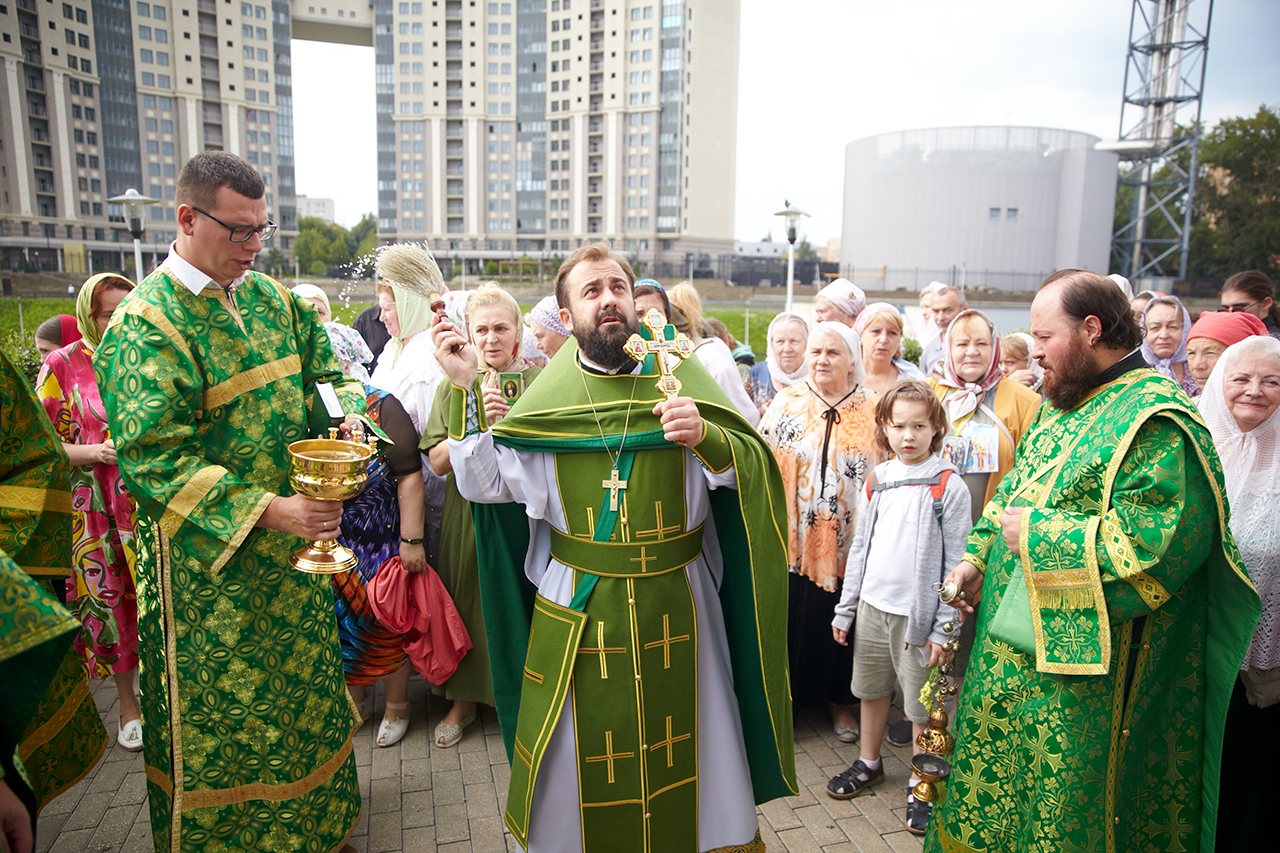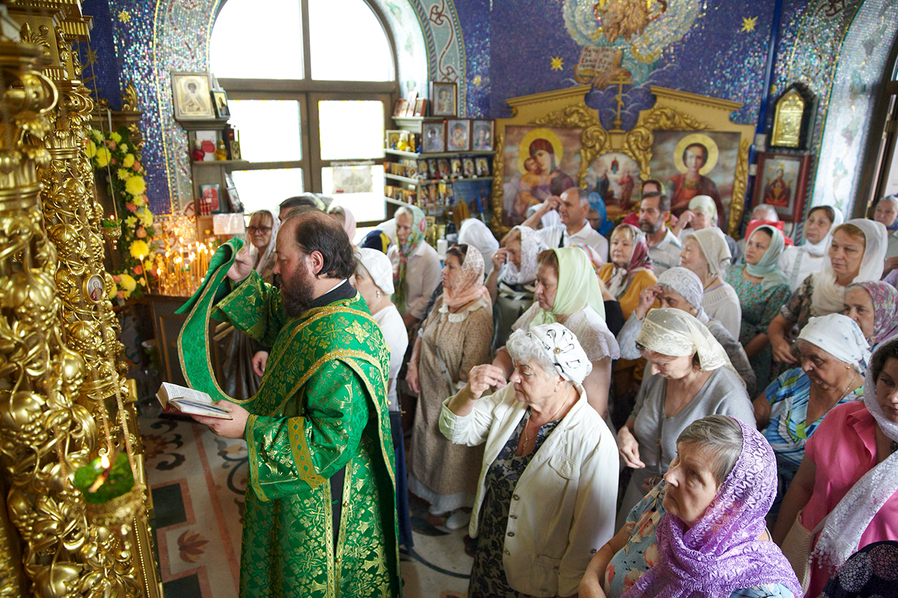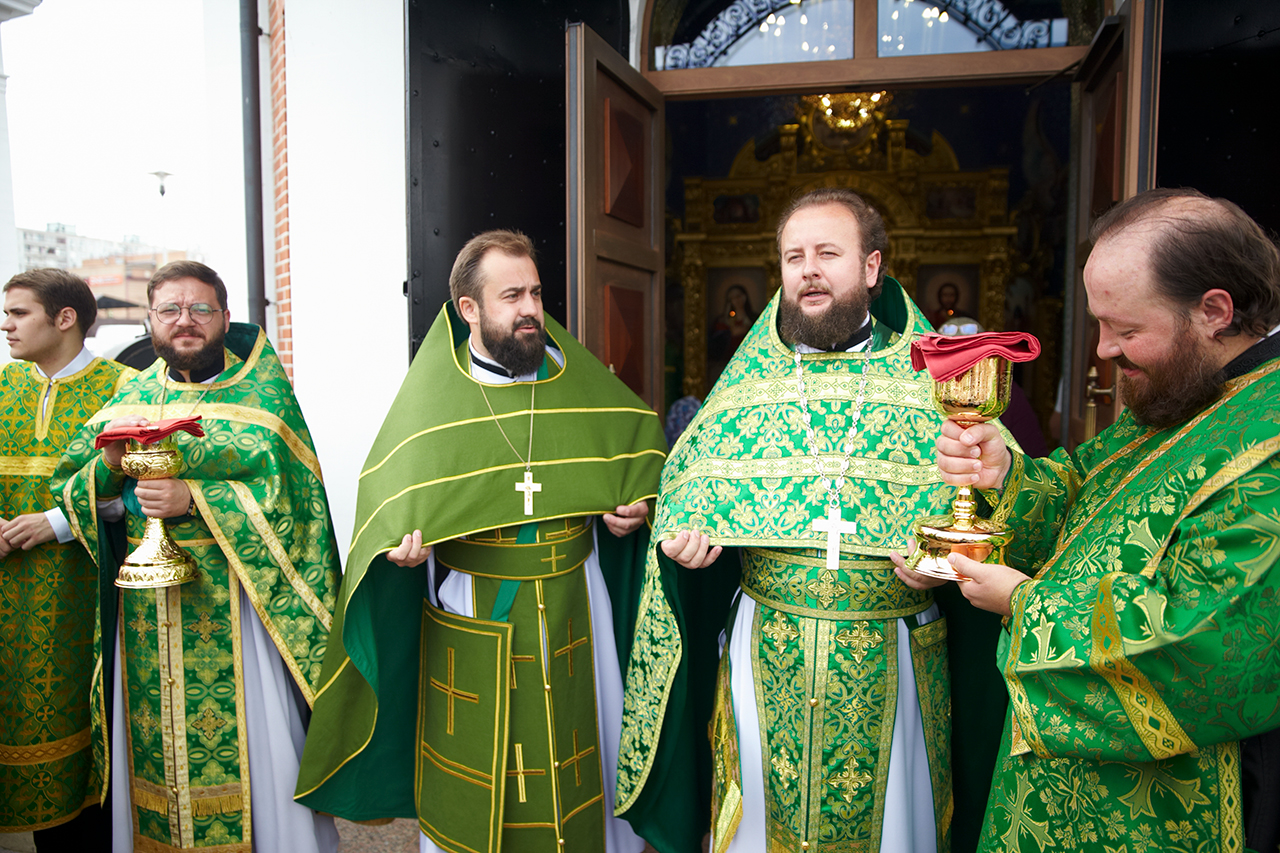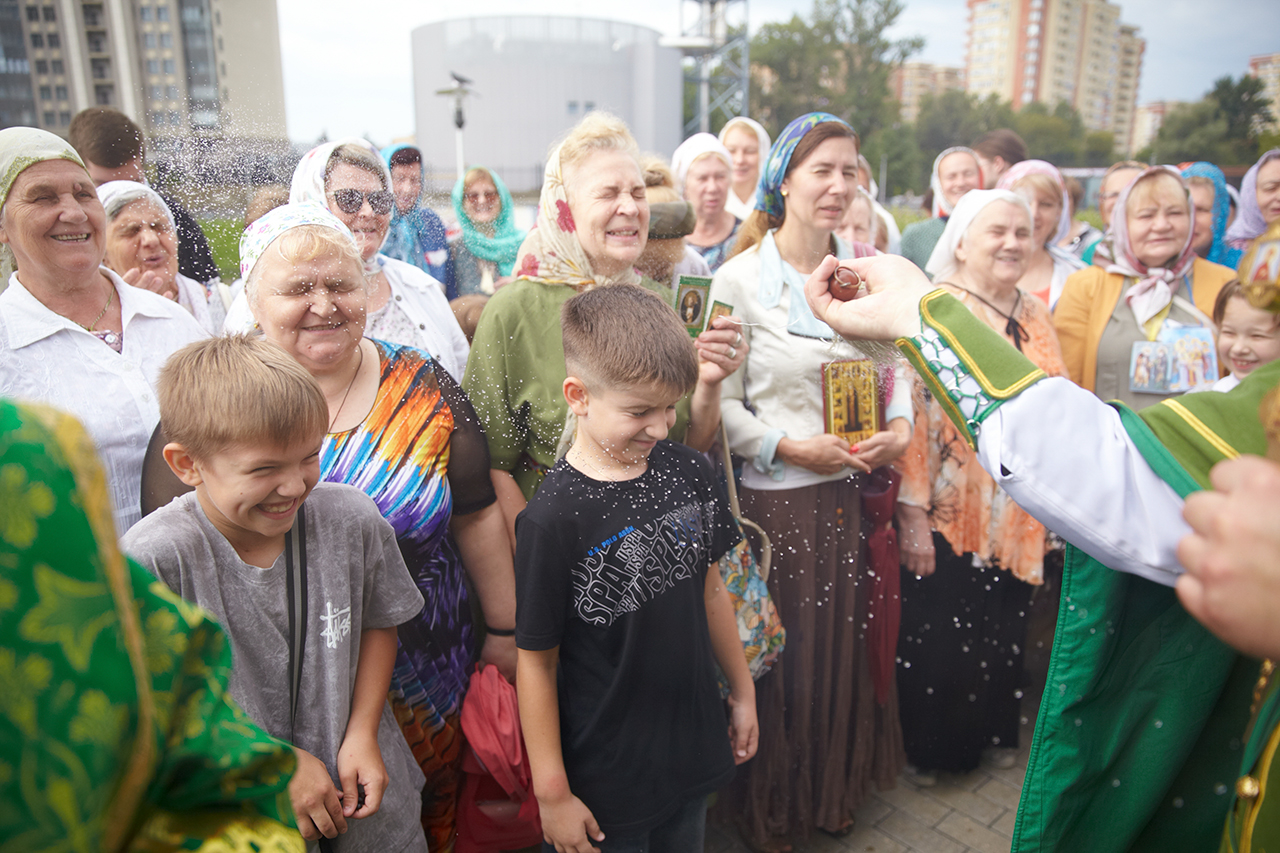 По окончании богослужения был совершён праздничный крестный ход вокруг храма и освящена уличная икона преподобного Серафима Саровского.
