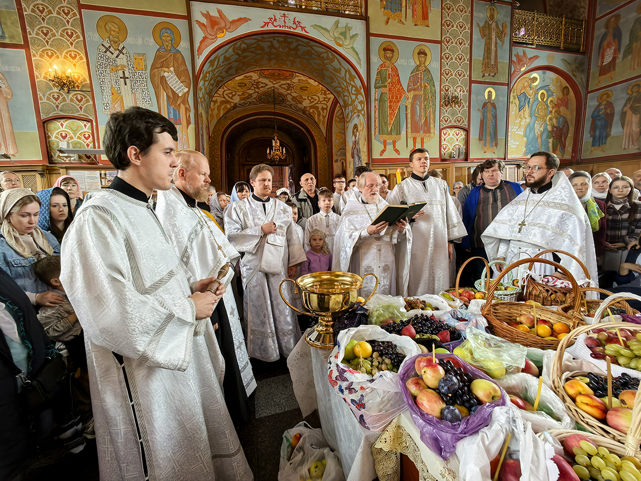 19 августа, в праздник Преображения Господа Бога и Спаса нашего Иисуса Христа, благочинный Щёлковского церковного округа протоиерей Андрей Ковальчук совершил Божественную литургию и чин освящения плодов в Троицком соборе города Щёлково.