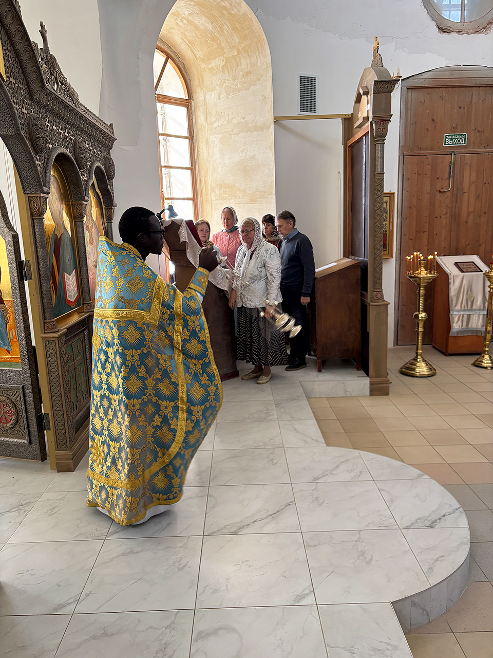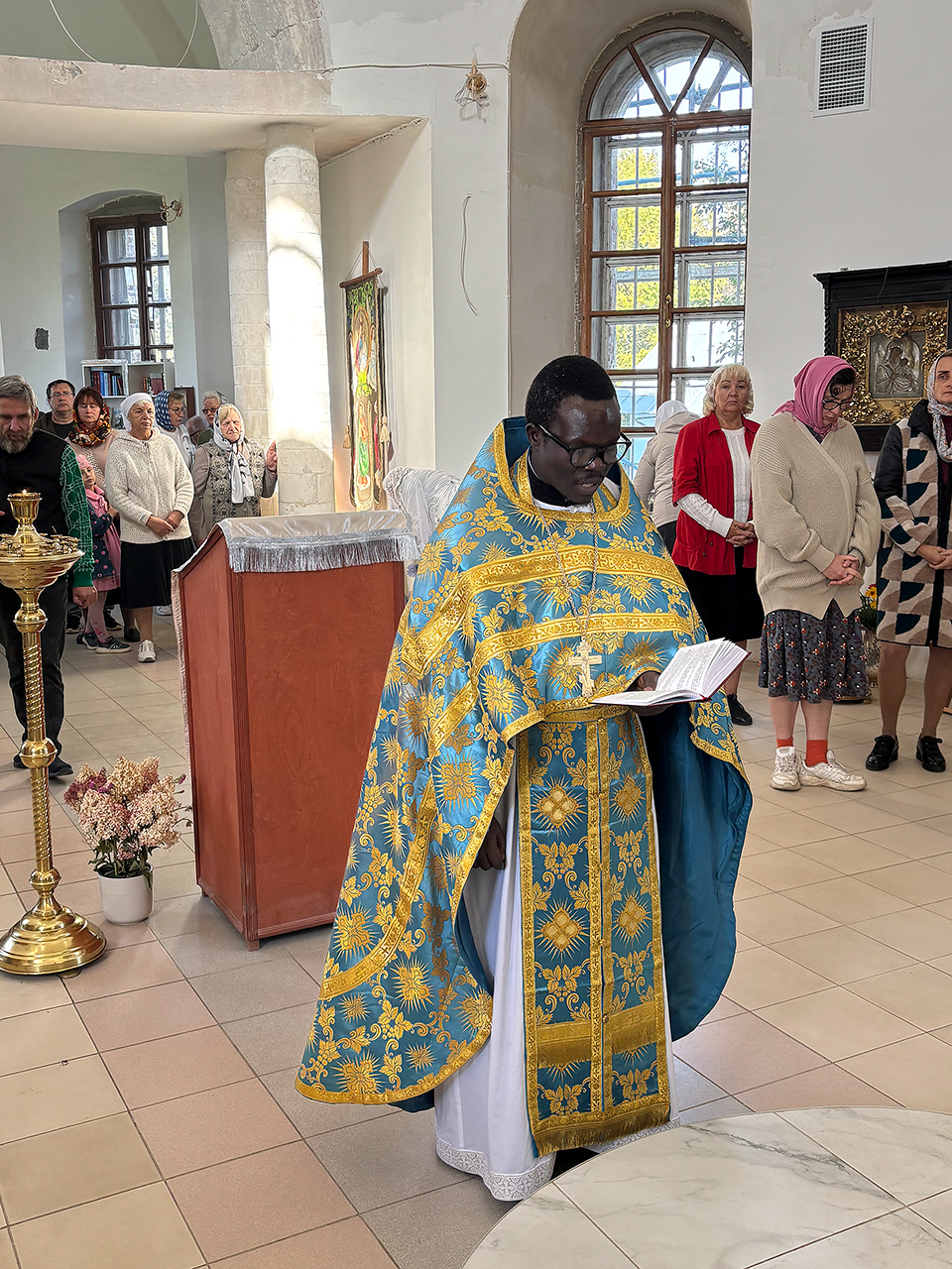 После Литургии отец Иоанн поздравил прихожан с церковным новолетием и памятью святых благоверных князей Петра и Февронии Муромских и сказал, что ему было очень радостно было послужить с братьями по вере, вместе молиться и причащаться.