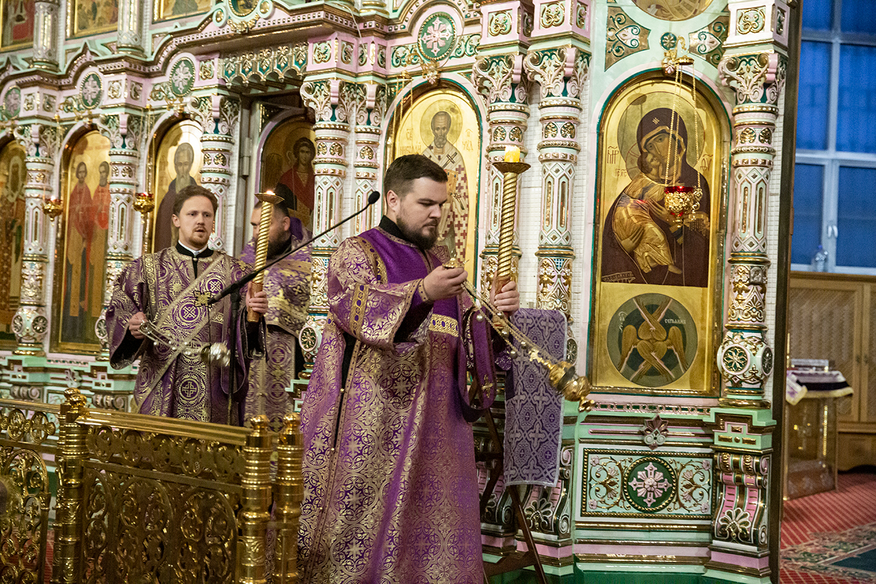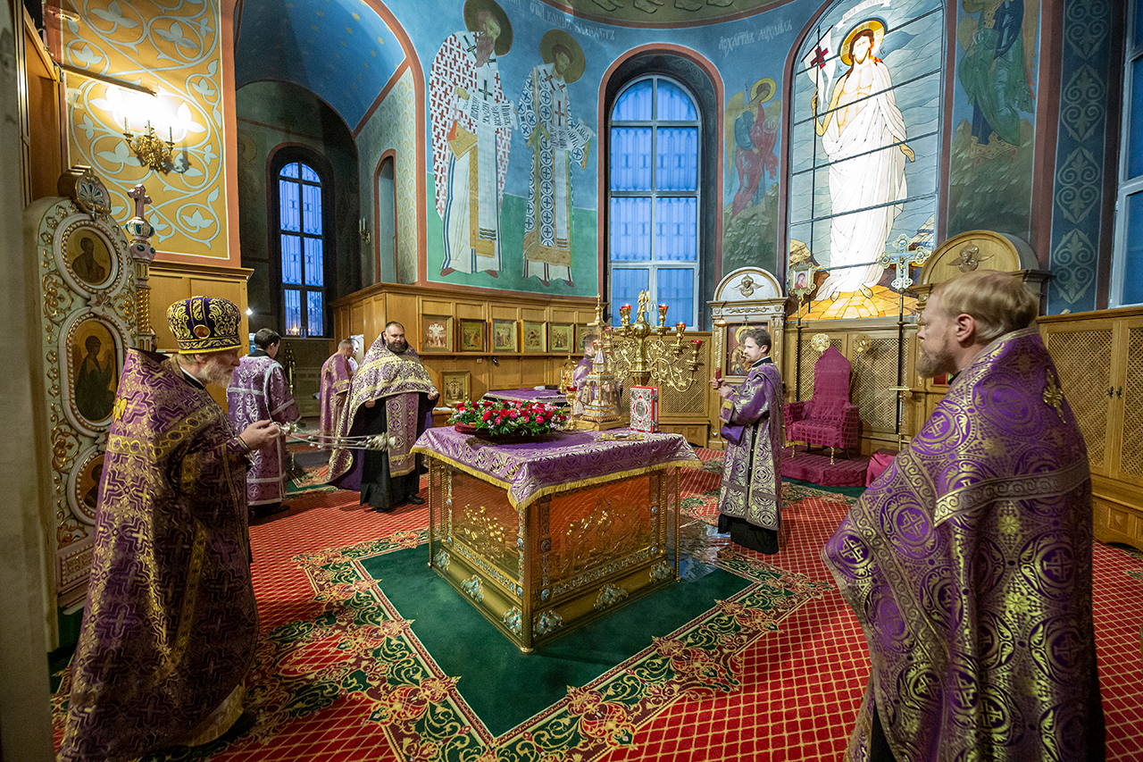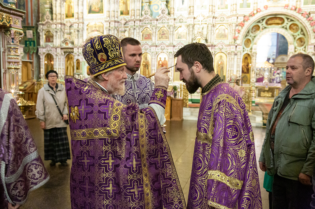 26 сентября, накануне праздника Воздвижения Честного и Животворящего Креста Господня, благочинный Щёлковского церковного округа протоиерей Андрей Ковальчук в сослужении клириков собора совершил всенощное бдение в Троицком соборе города Щёлково.