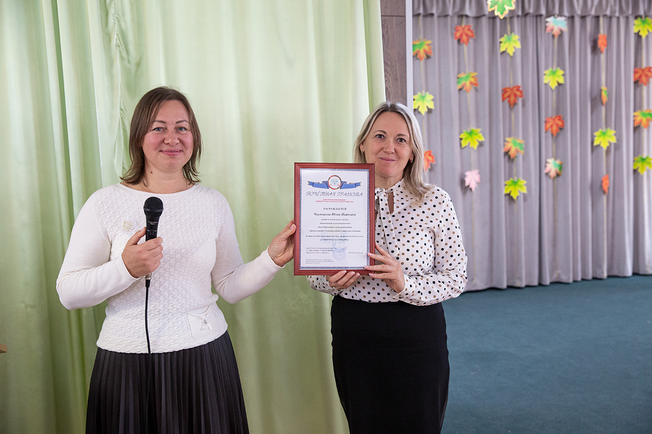 Ещё в программе праздника прошло вручение Почетных грамот Комитета по образованию Администрации городского округа Щёлково педагогам гимназии.
