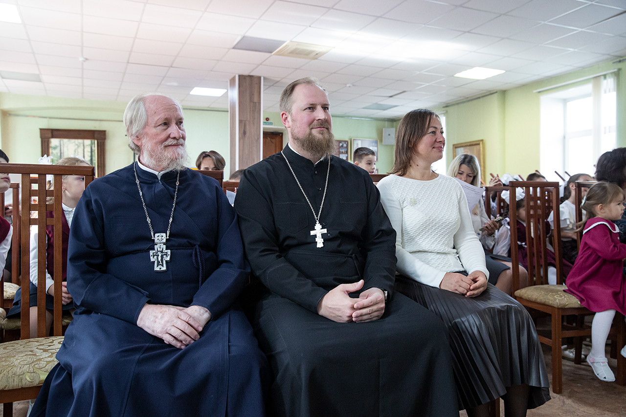 Благочинный Щёлковского церковного округа протоиерей Андрей Ковальчук, духовник гимназии священник Павел Чекалин и директор гимназии Анна Викторовна Лыгина поздравили всех причастных к делу образования и воспитания с праздником, пожелав помощи Божией!