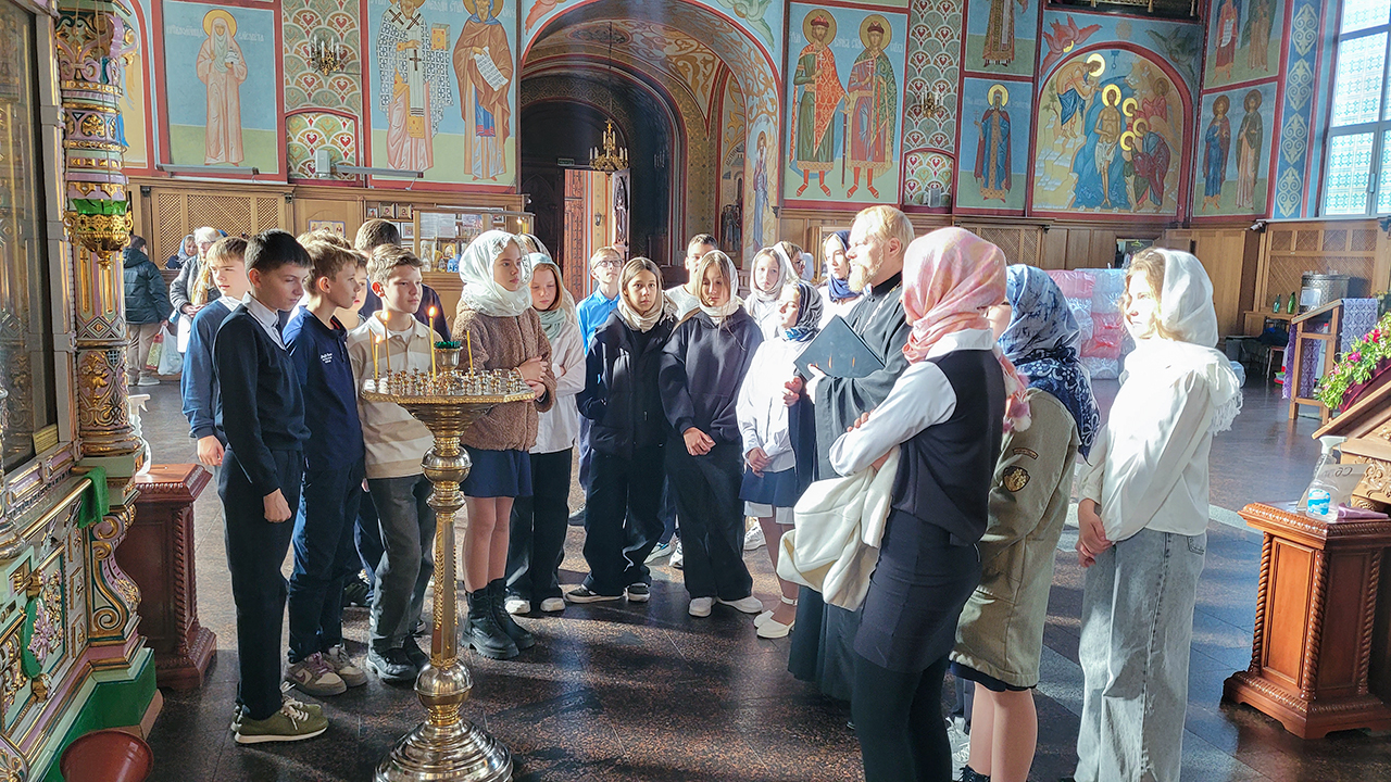 Экскурсию для гимназистов провёл клирик собора священник Димитрий Медведев. Ребята узнали об истории создания и восстановления храма, его архитектуре и местночтимых святынях. Гостям организовали чаепитие, после которого все поднялись на колокольню и попробовали себя в роли звонарей.