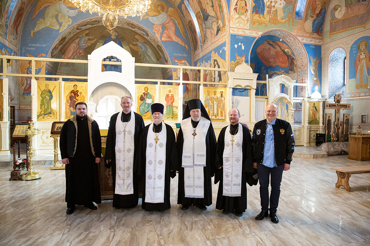 Его Преосвященству сослужили благочинный Щёлковского церковного округа и настоятель храма блаженной Ксении Петербургской протоиерей Андрей Ковальчук, клирики Ксениевского прихода священники Сергий Ковальчук и Димитрий Задорожный и клирик Троицкого собора города Щёлково диакон Кирилл Ковальчук.
