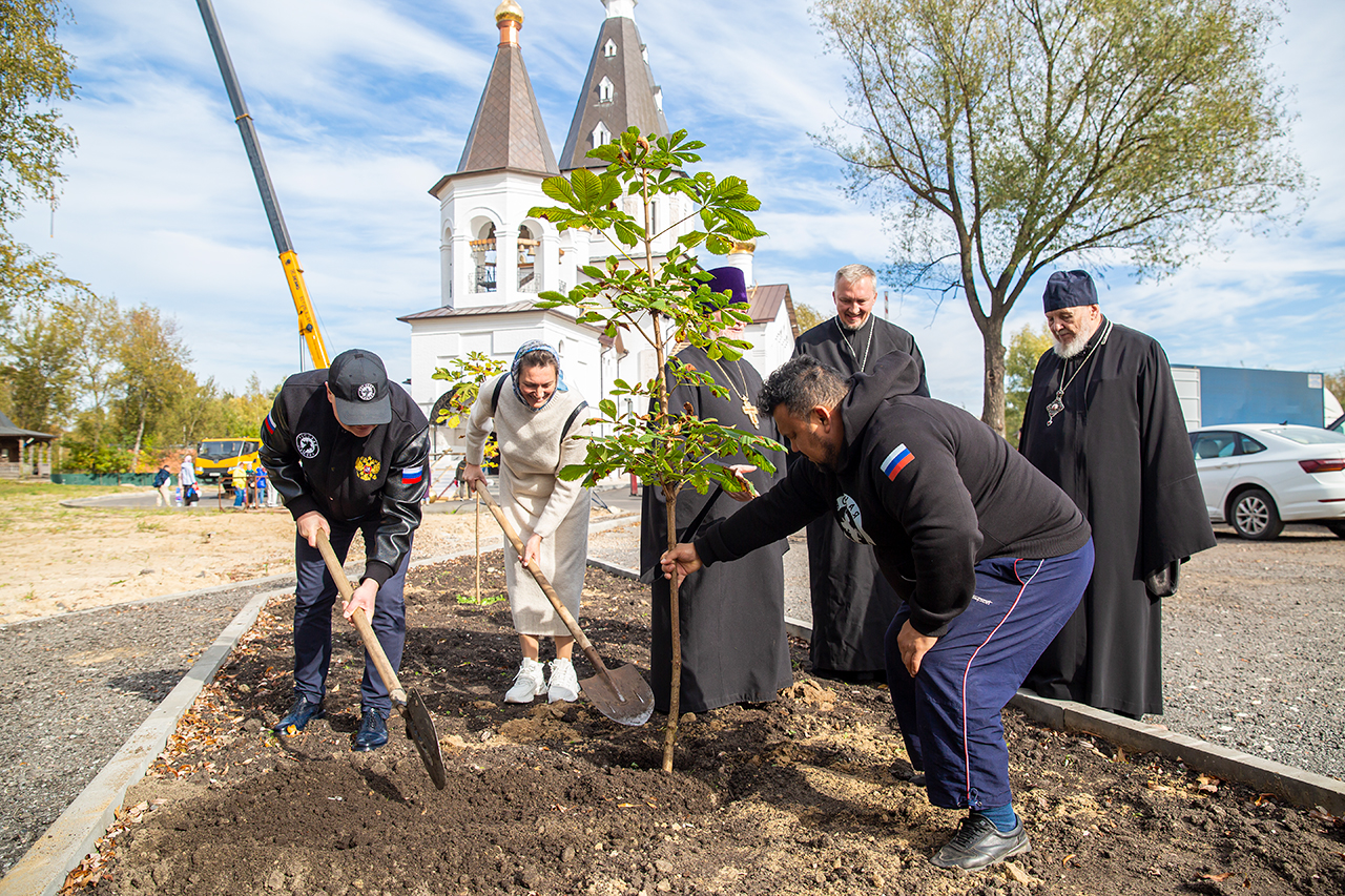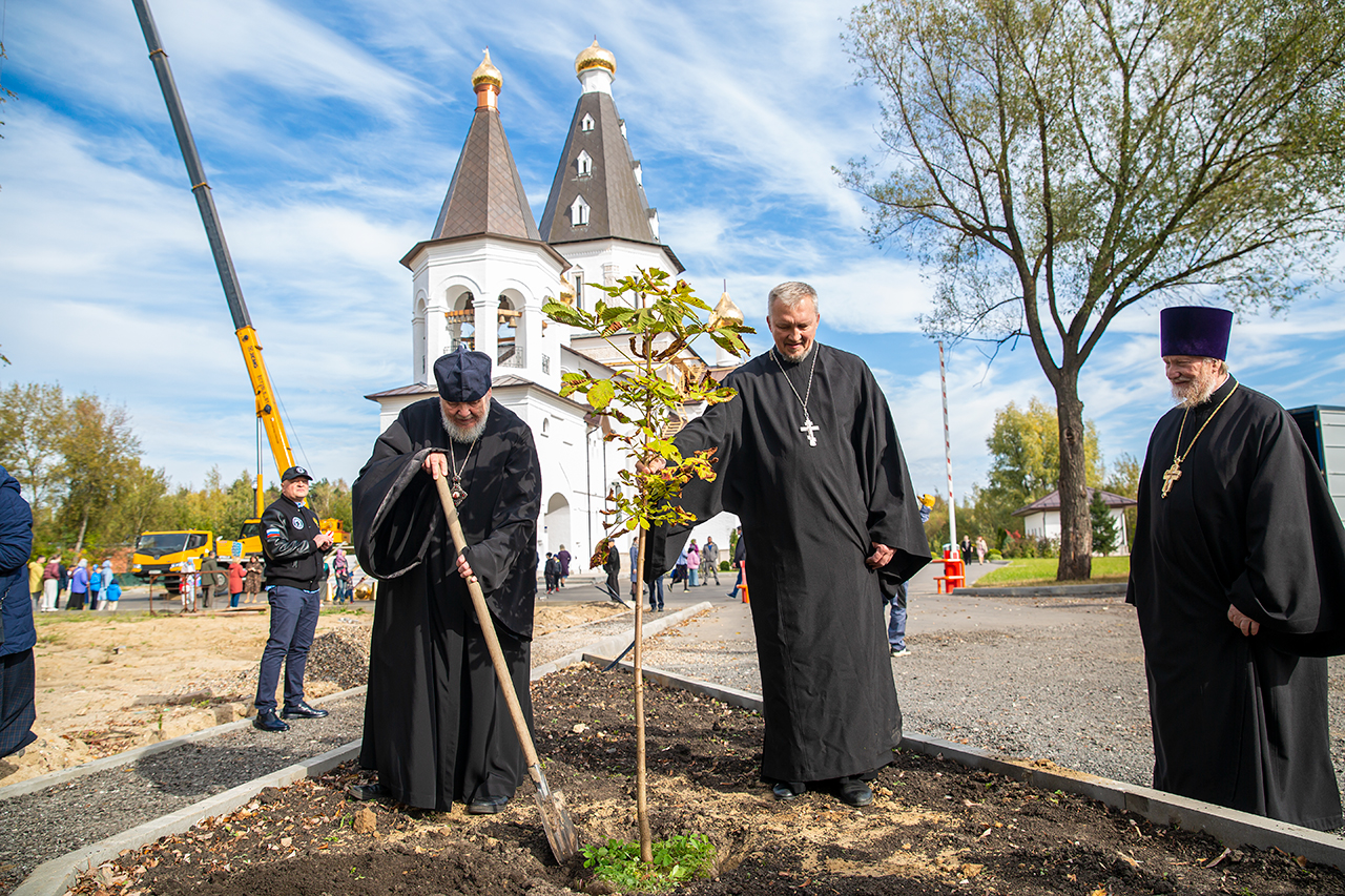 Также в этот день Владыка принял участие в посадке деревьев на территории Ксениевского прихода.