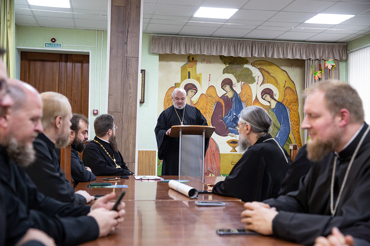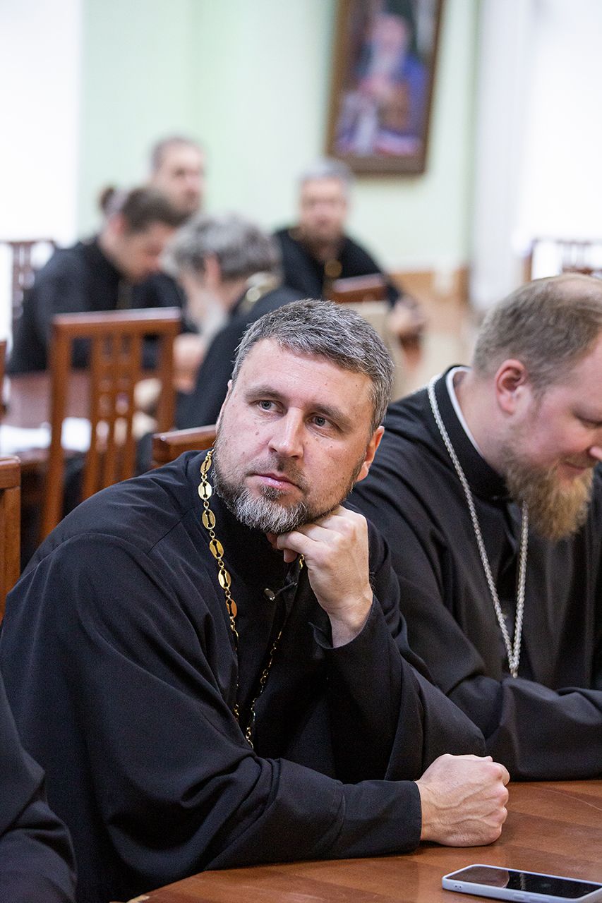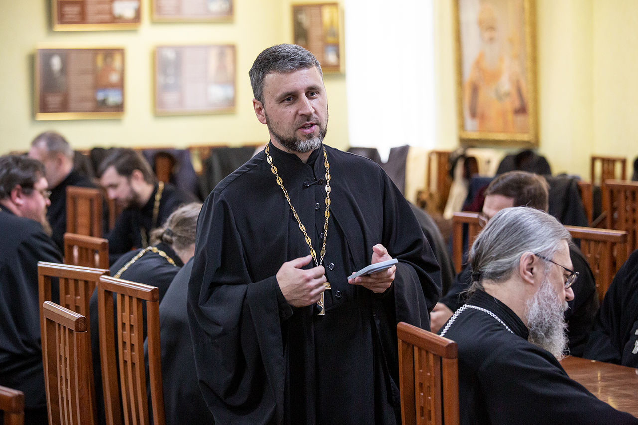 Во второй части совещания состоялся пастырский семинар, который провёл клирик Державного храма города Фрязино протоиерей Александр Бутрин на тему: «К 100-летию города Щёлково: факты из истории Троицкого собора».
