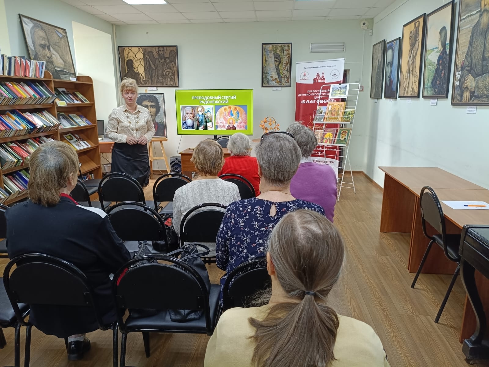 Сотрудница центра Ульяна Николаевна Голубцова посвятила своё выступление жизни и подвигам преподобного Сергия Радонежского — возродителя монашества на Руси.
