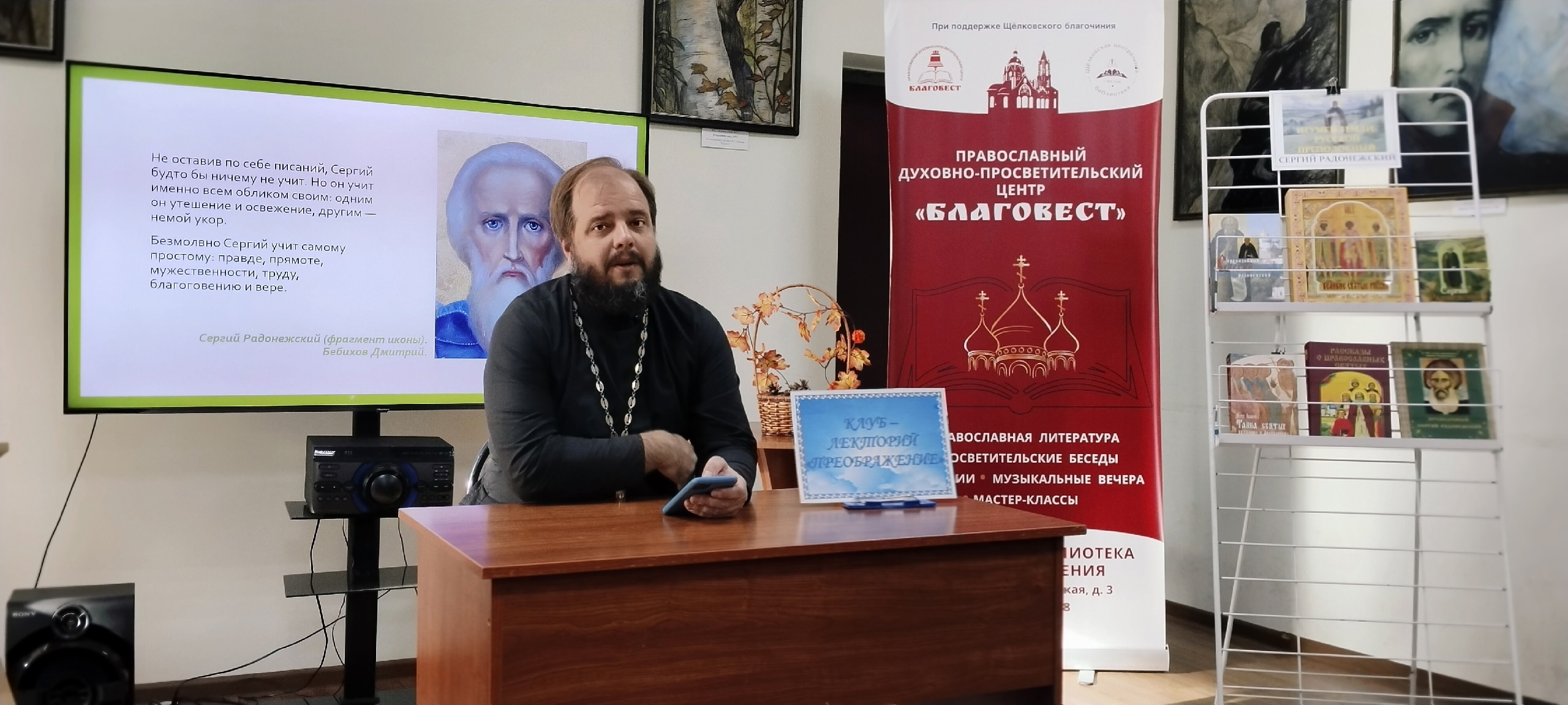 18 октября в Православном духовно-просветительском центре «Благовест» при Библиотеке семейного чтения города Щёлково состоялось очередное занятие православного клуба «Преображение», которое провел клирик Троицкого собора города Щёлково священник Евгений Трушин.