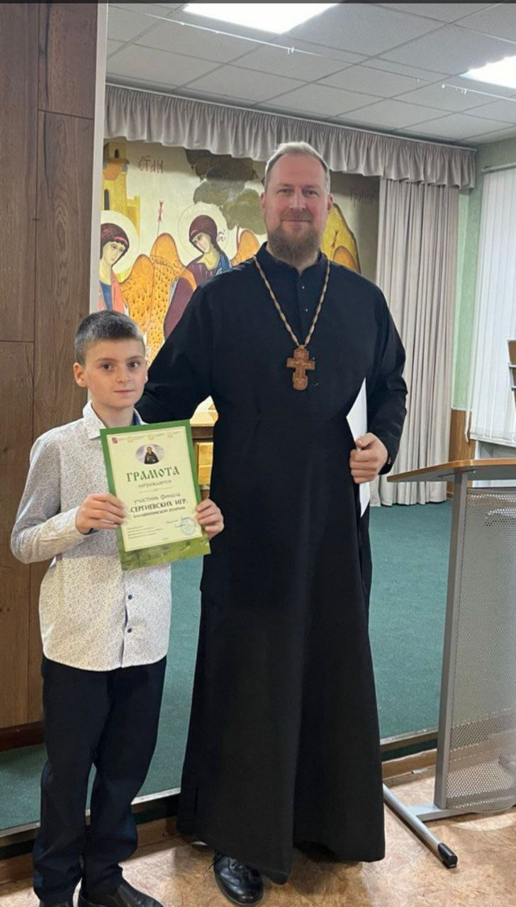 - учащиеся воскресной школы Державного храма города Фрязино – Воробьев Даниил и Милто Елизавета.