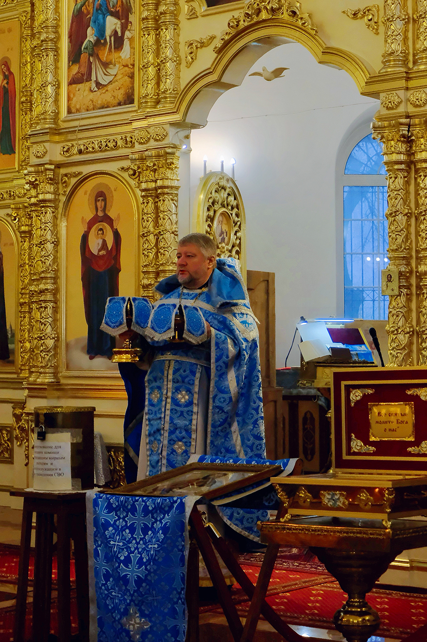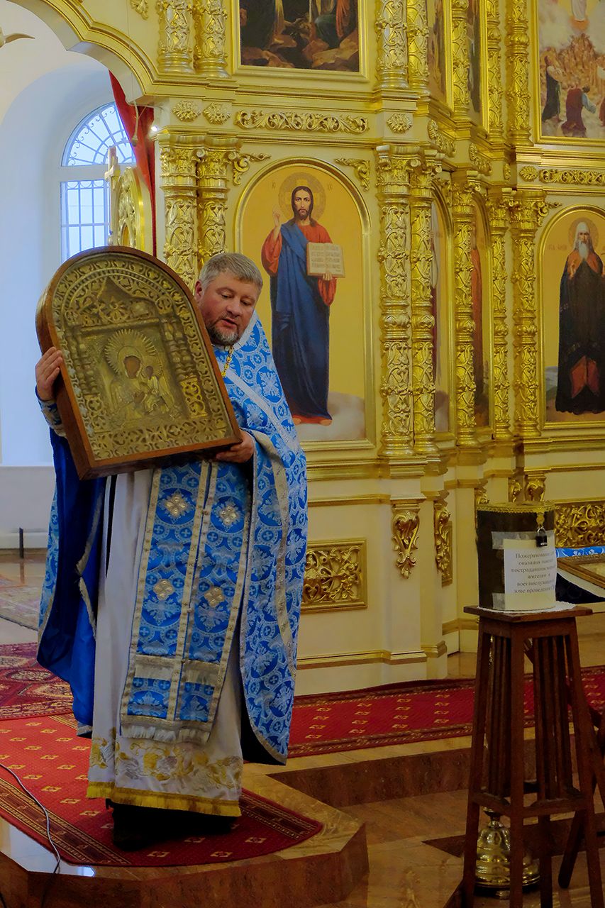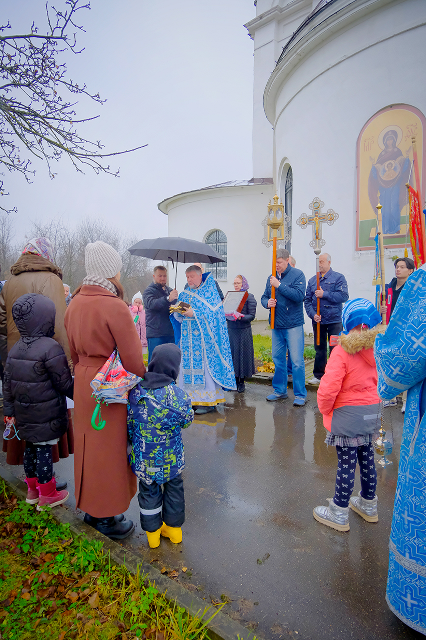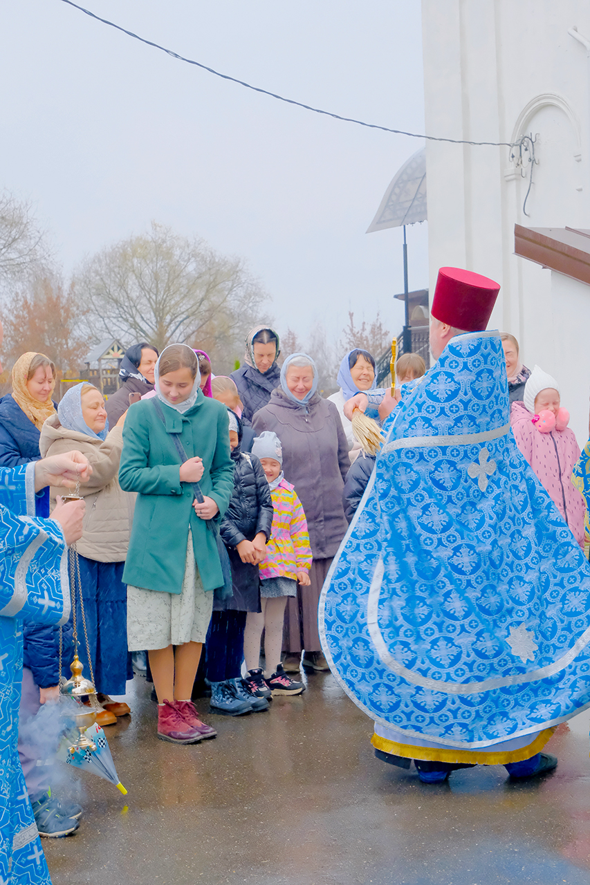 В своем поздравительном обращении к молящимся отец Олег упомянул о значении Казанской иконы Божией Матери как духовного символа освобождения Москвы в 1612 году, а также исторической памяти, духовной традиции и силе единства народа перед лицом испытаний. После поздравительных слов отец Олег благословил всех присутствующих старинной иконой Божией Матери «Тихвинская» которую накануне праздника в дар храму передала одна благочестивая семья.